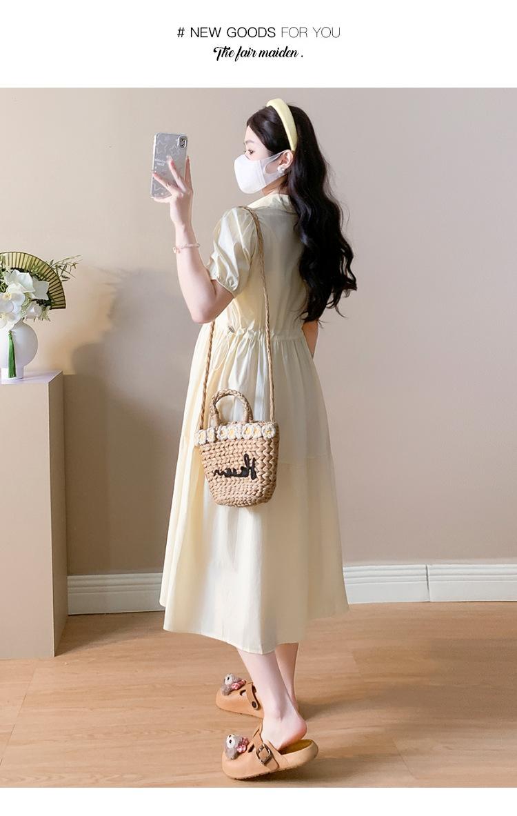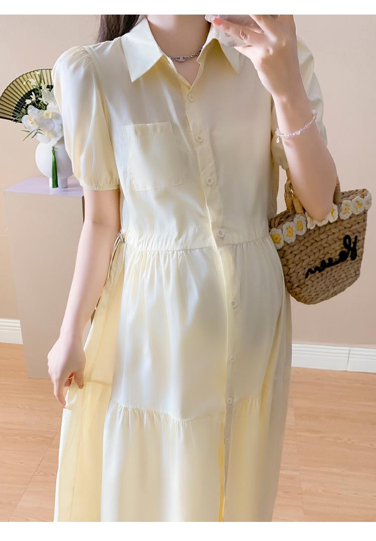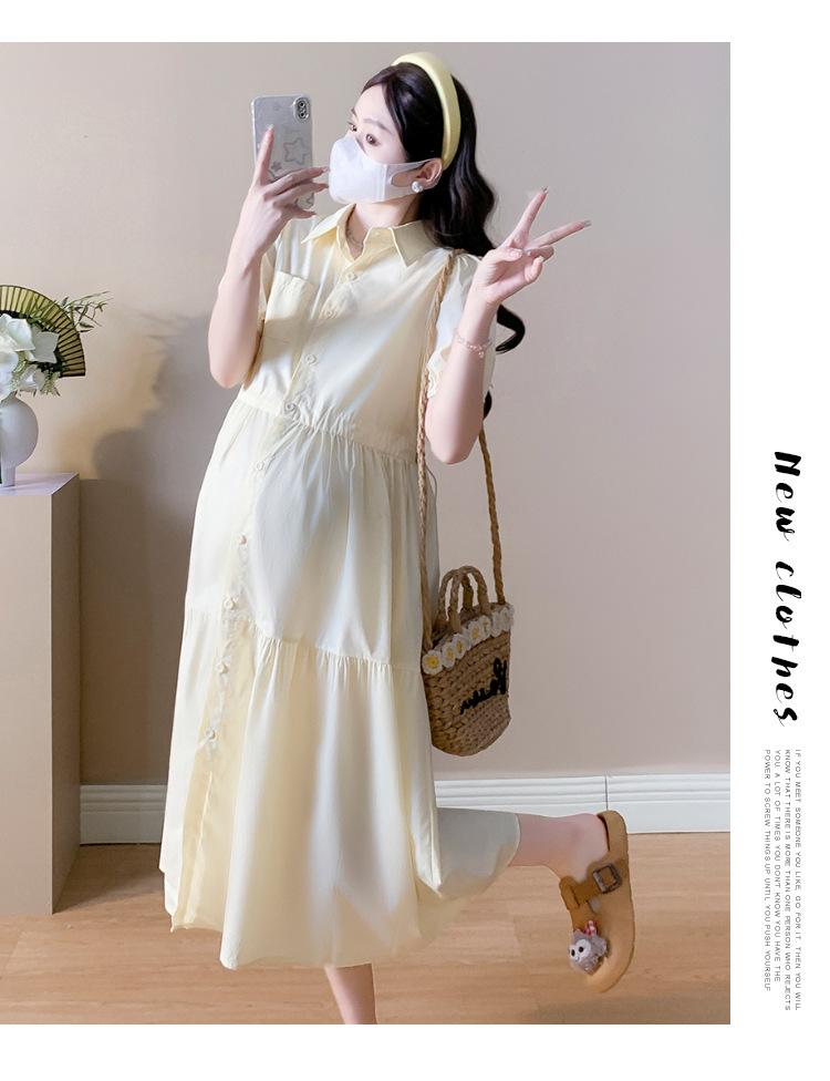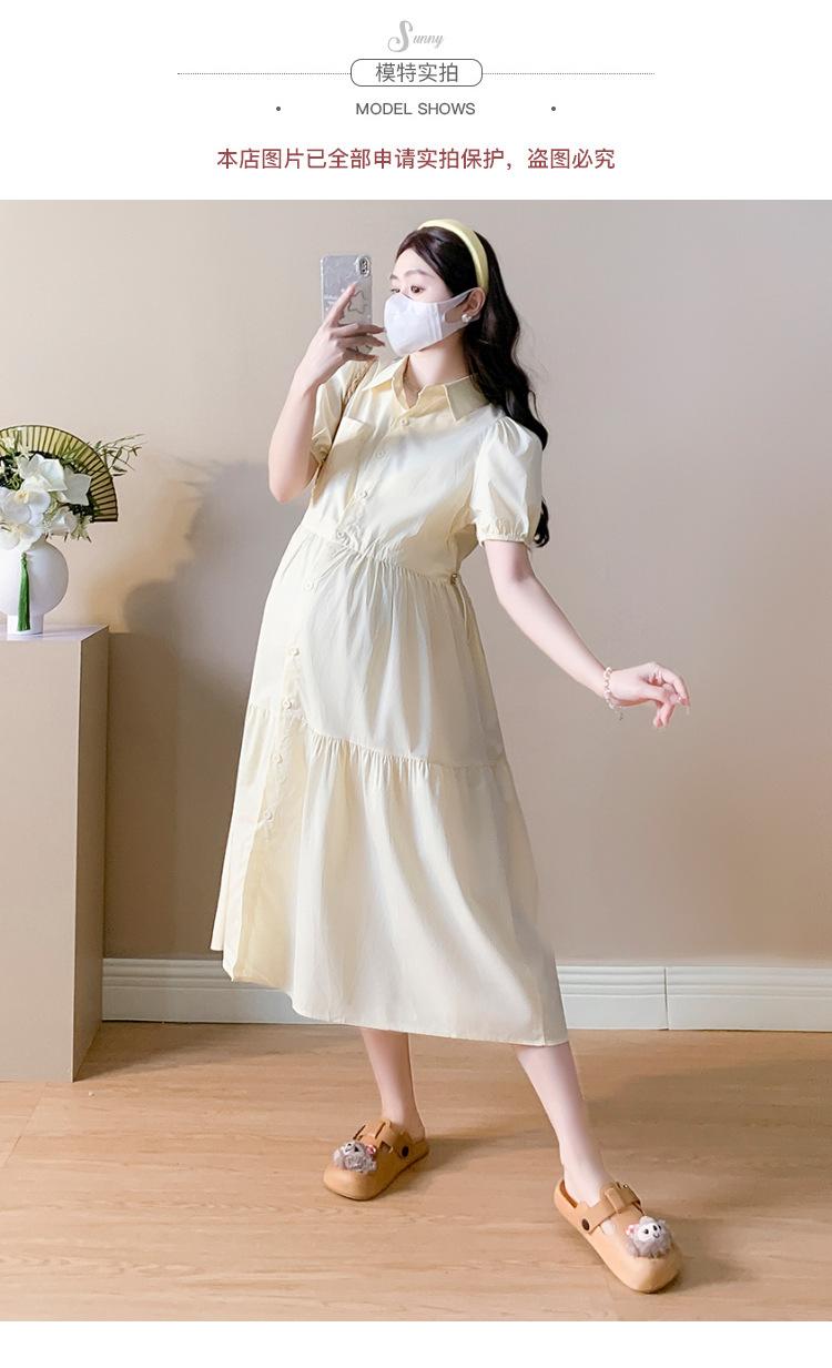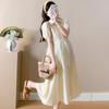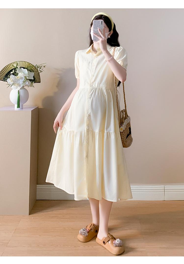 Ropa de Maternidad 2025 Verano Nuevo Hora del Té Estilo Francés Estilo Suave Reductor de Edad Hermoso Vestido de Maternidad de Manga Corta