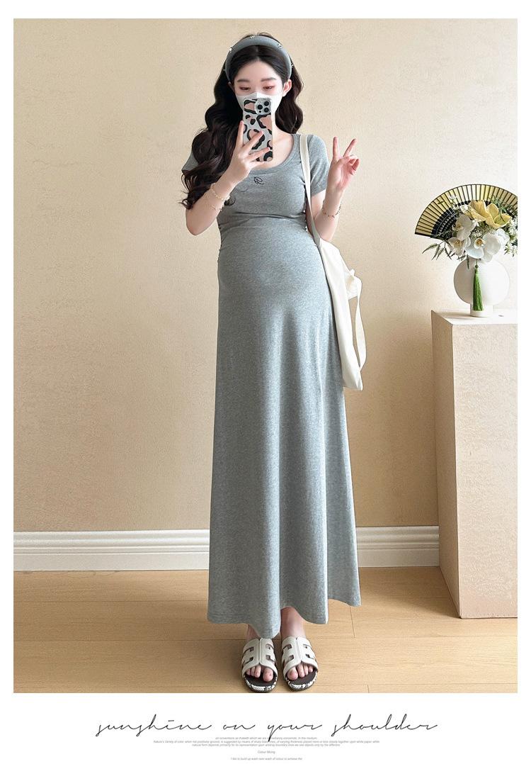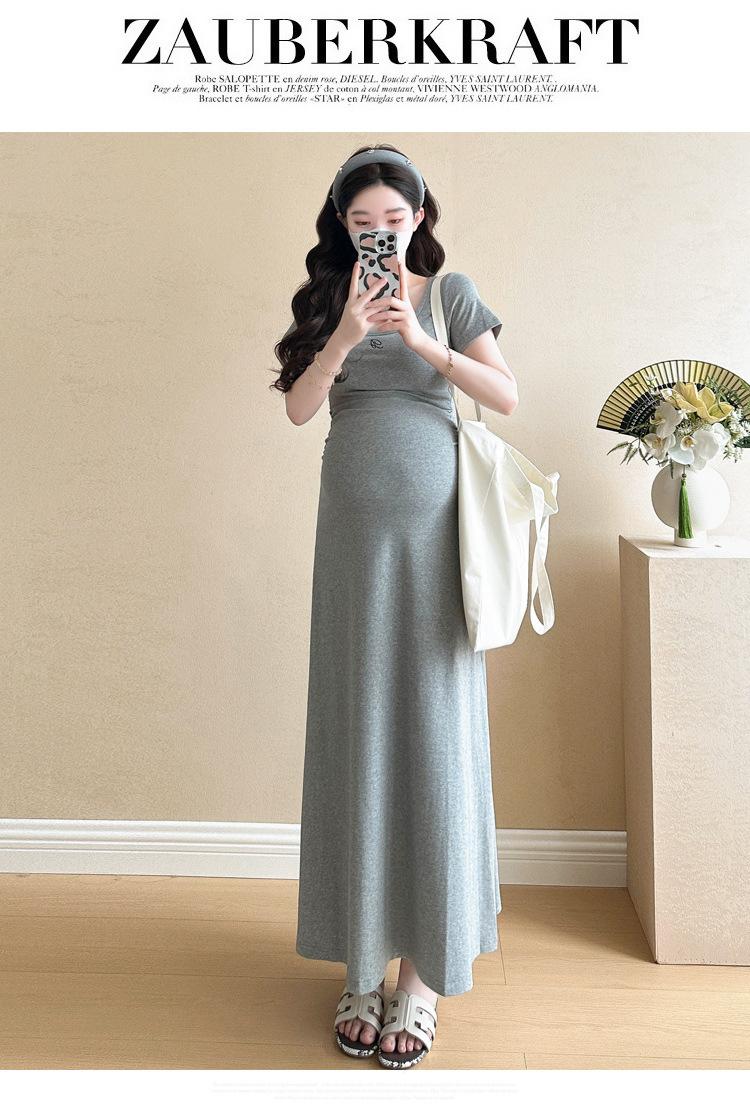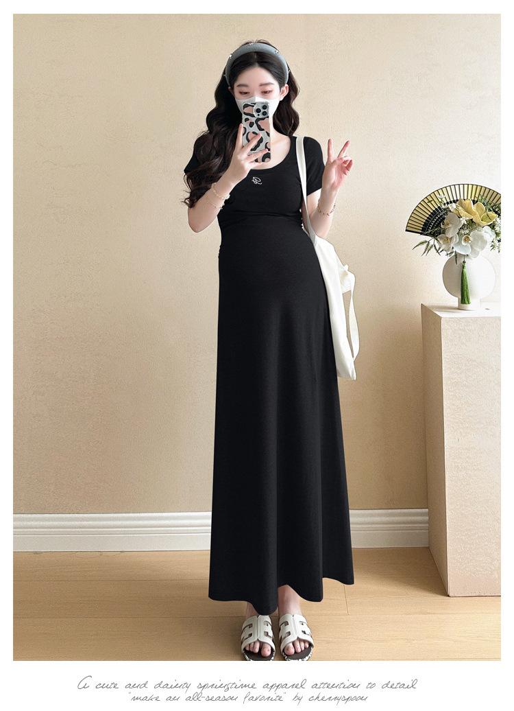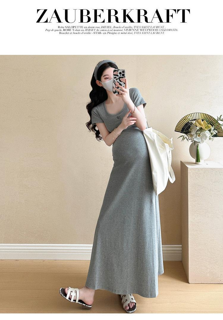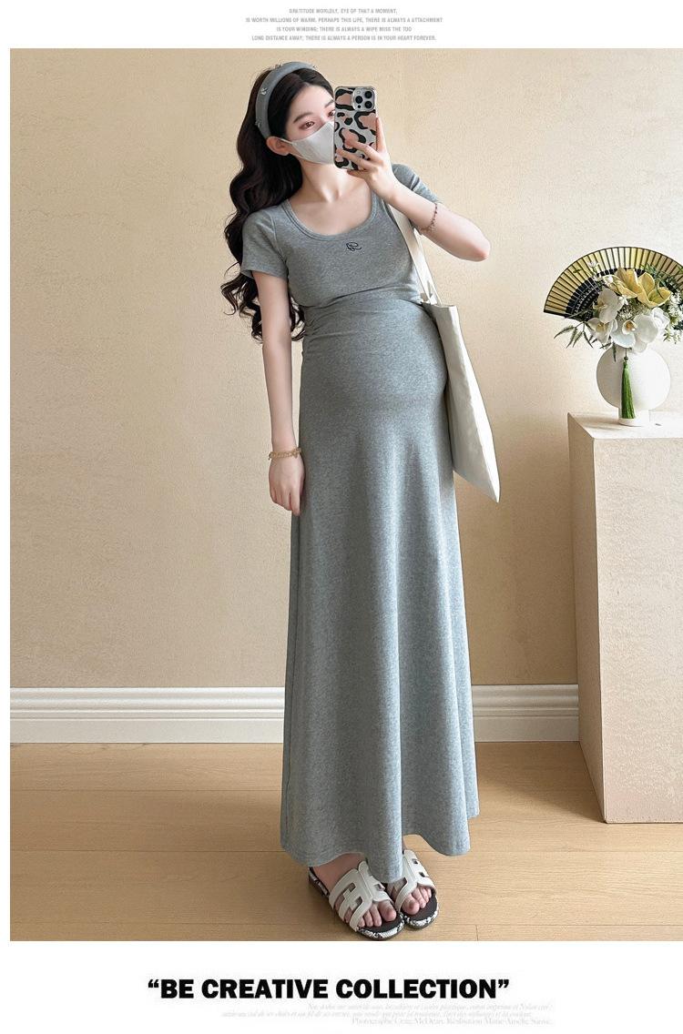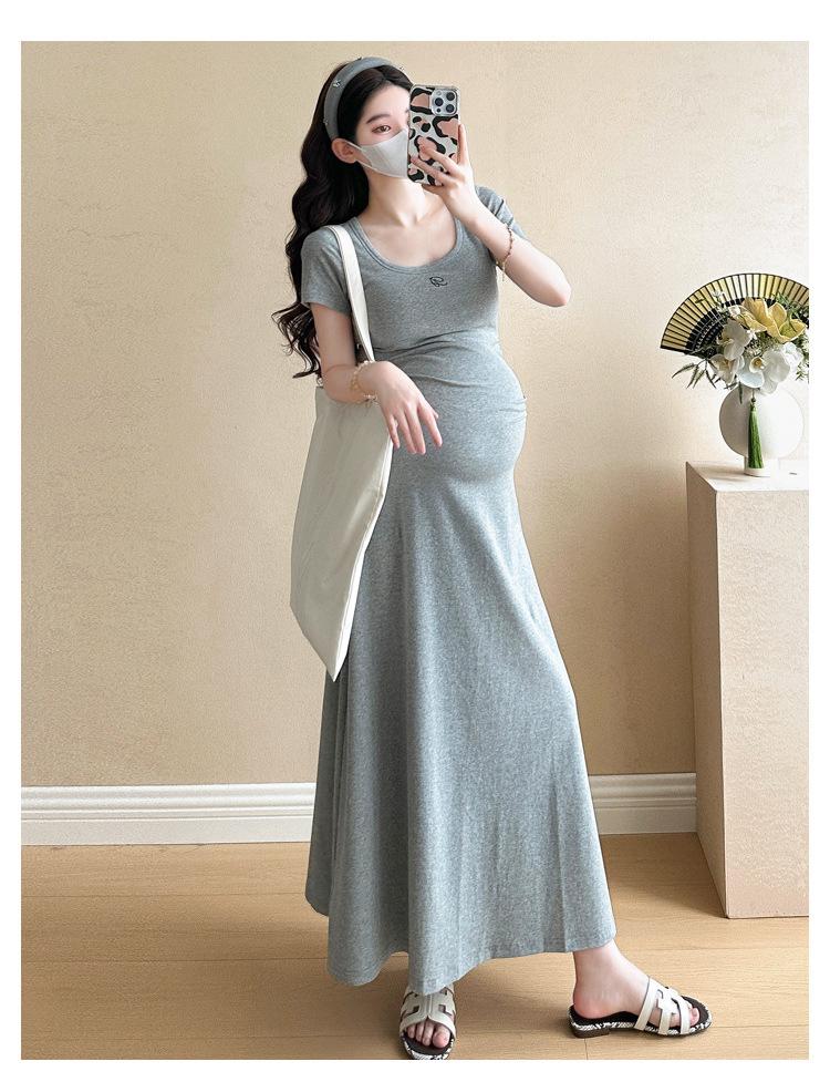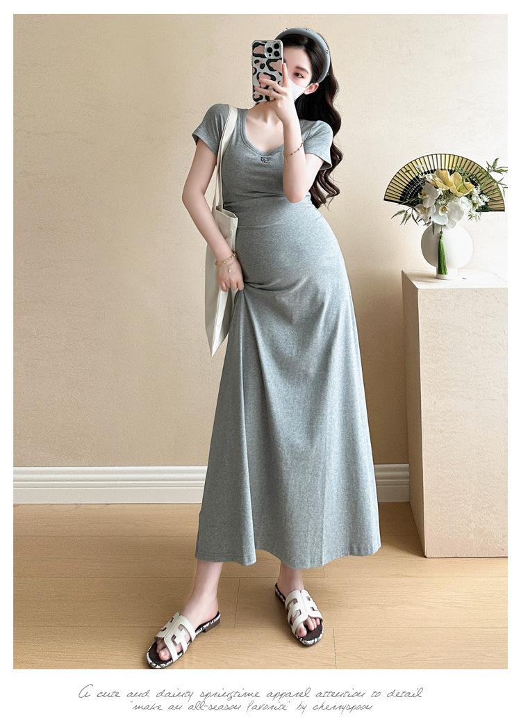 Ropa de Maternidad 2025 Verano Nuevo Estilo Coreano Moda Manga Corta Ajustado Color Puro Vestido de Maternidad