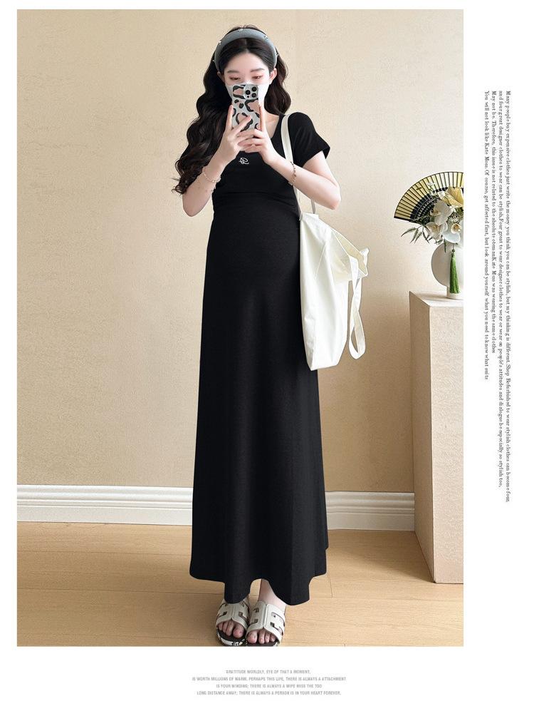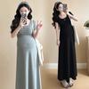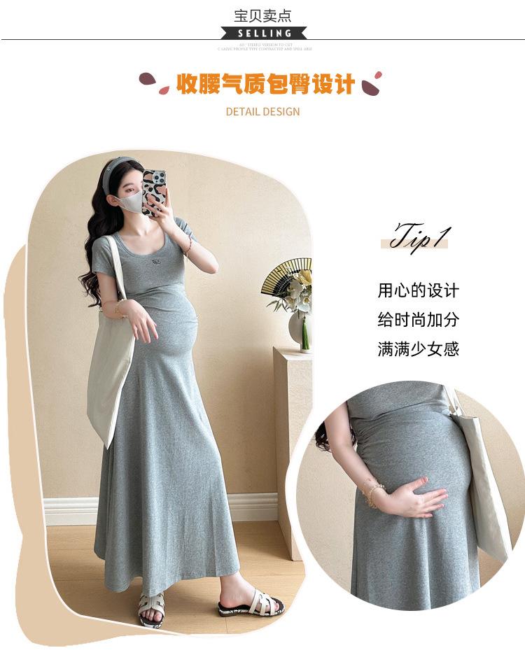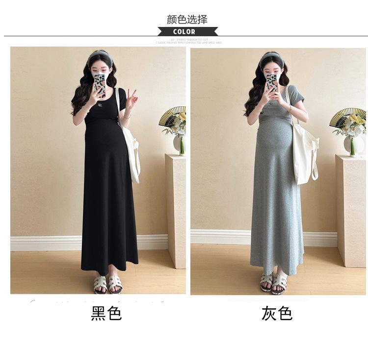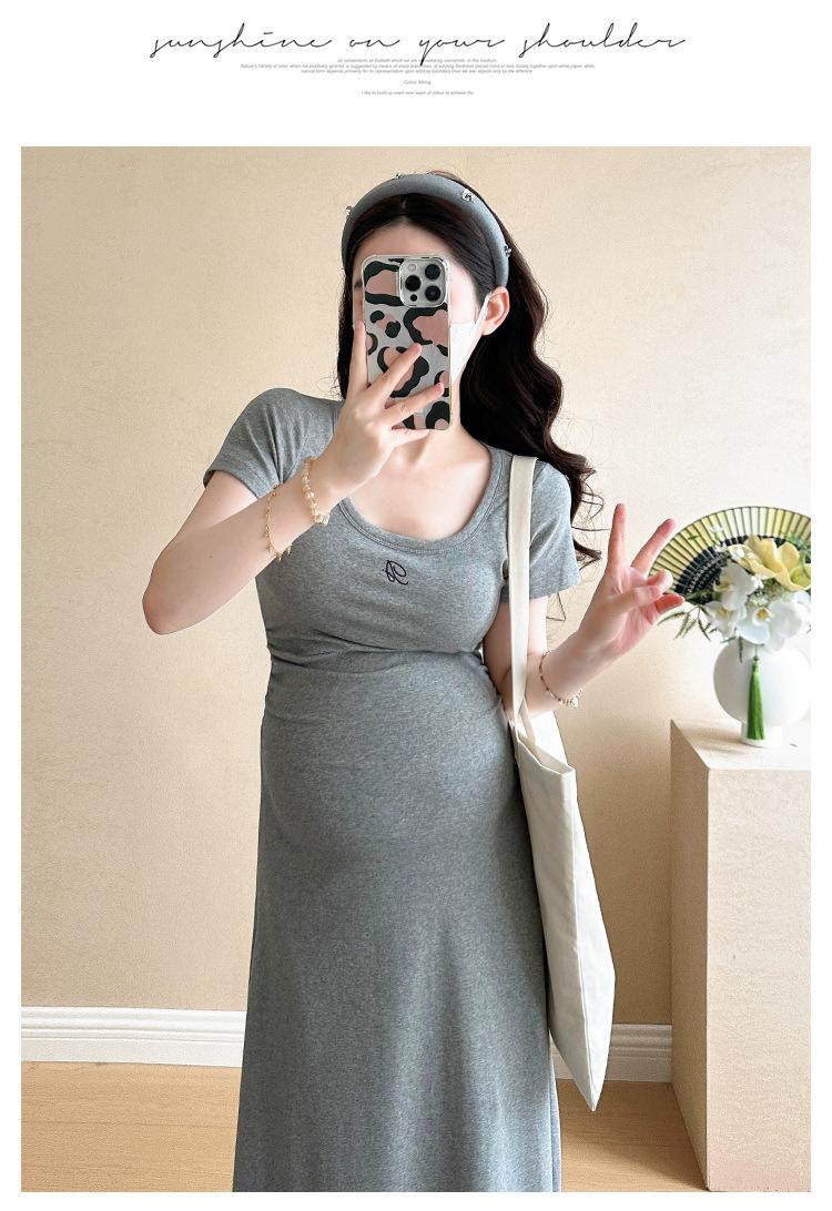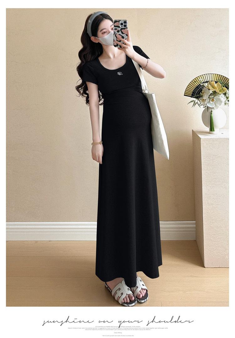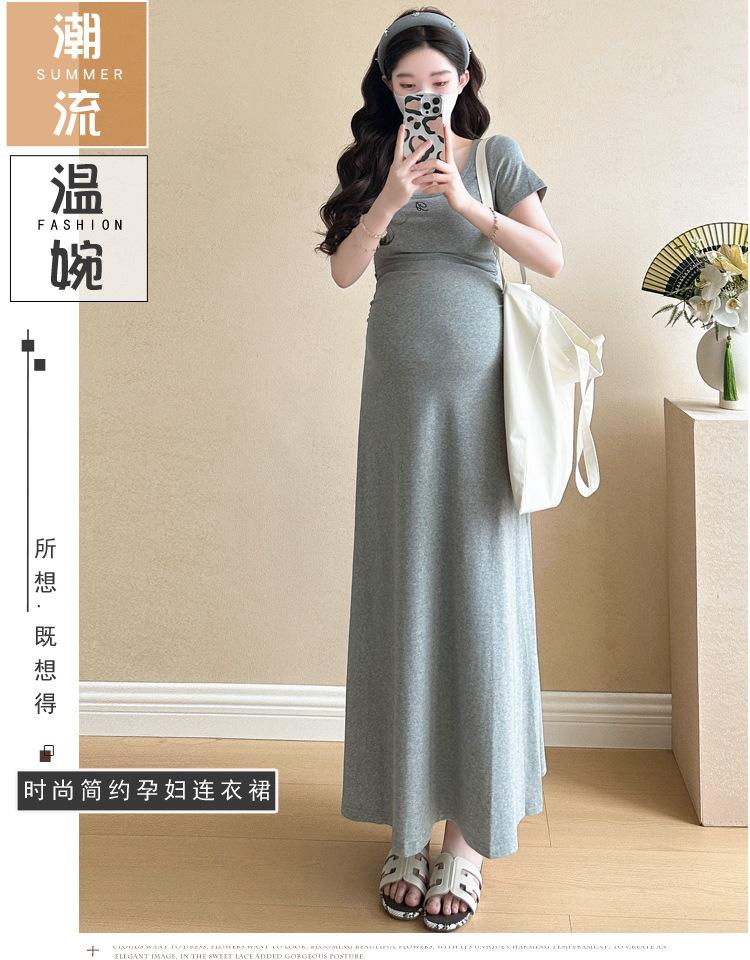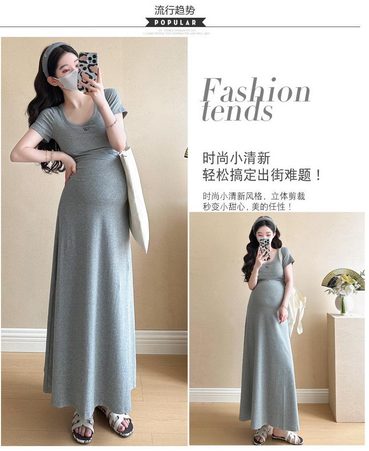 Ropa de Maternidad 2025 Verano Nuevo Estilo Coreano Moda Manga Corta Ajustado Color Puro Vestido de Maternidad