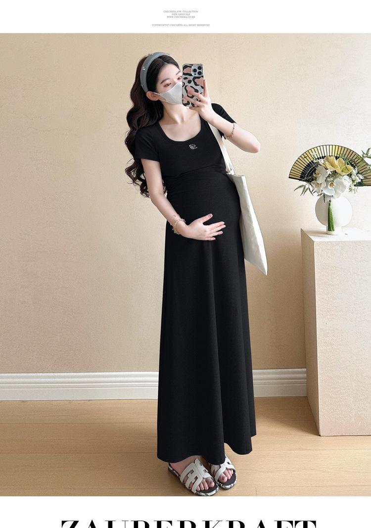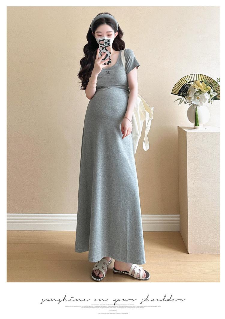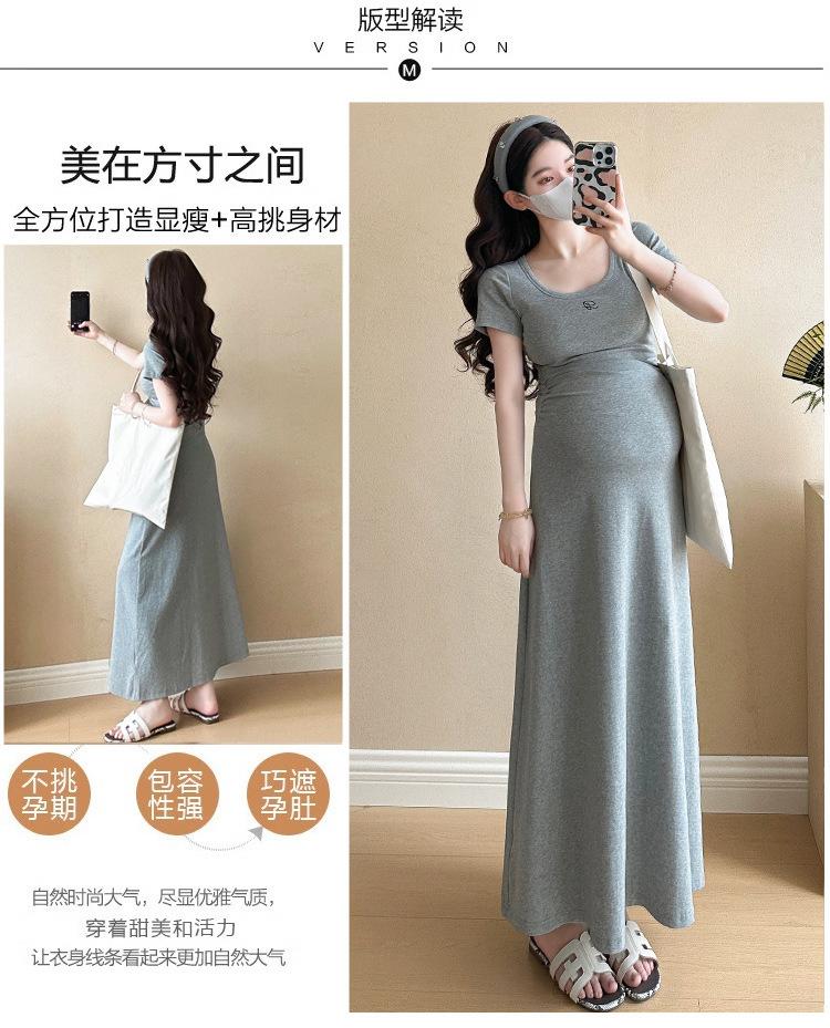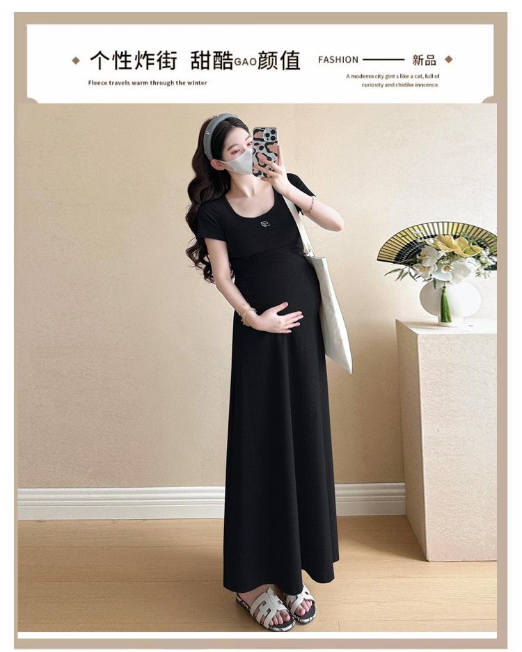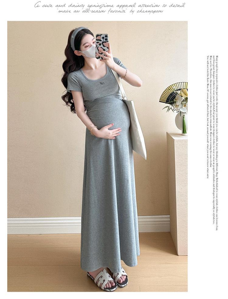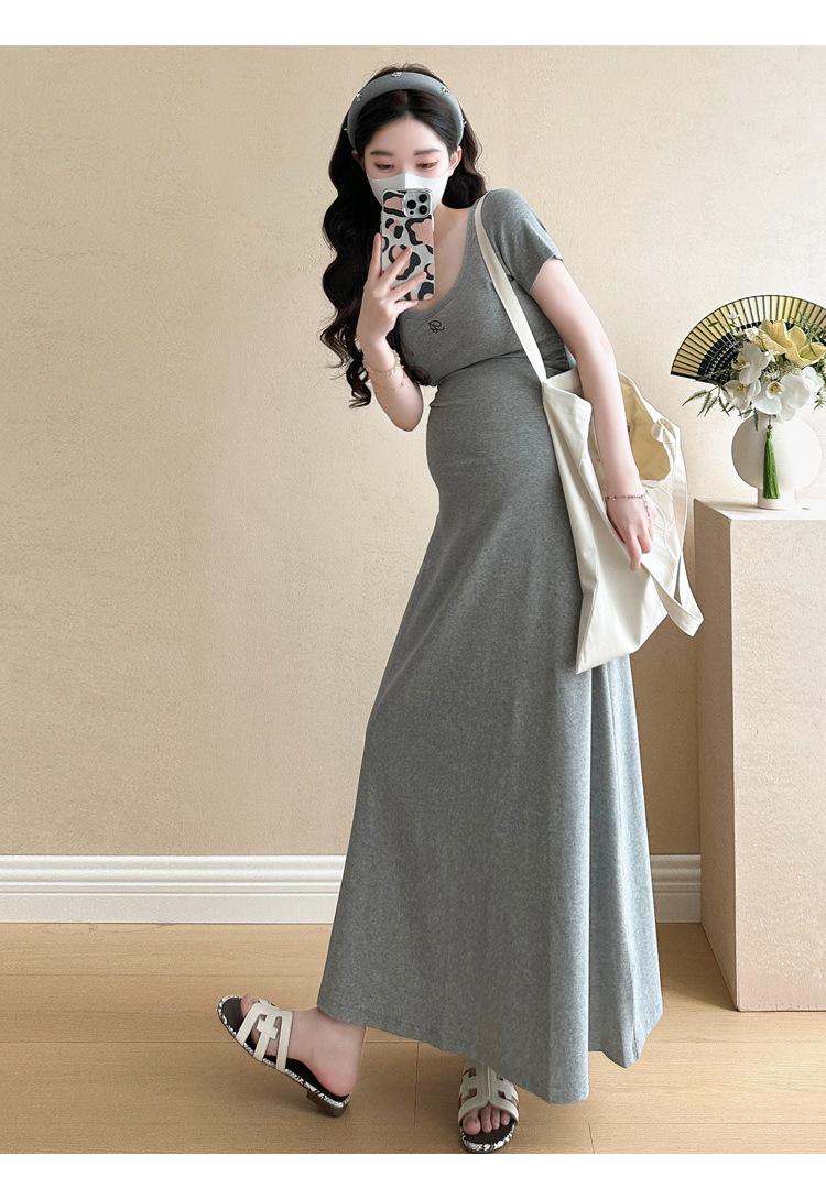 Ropa de Maternidad 2025 Verano Nuevo Estilo Coreano Moda Manga Corta Ajustado Color Puro Vestido de Maternidad