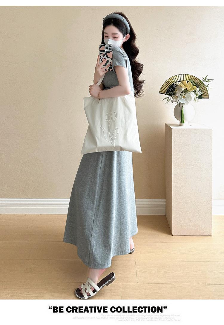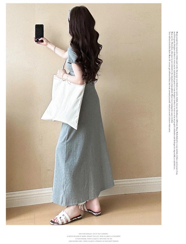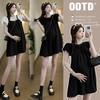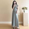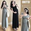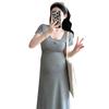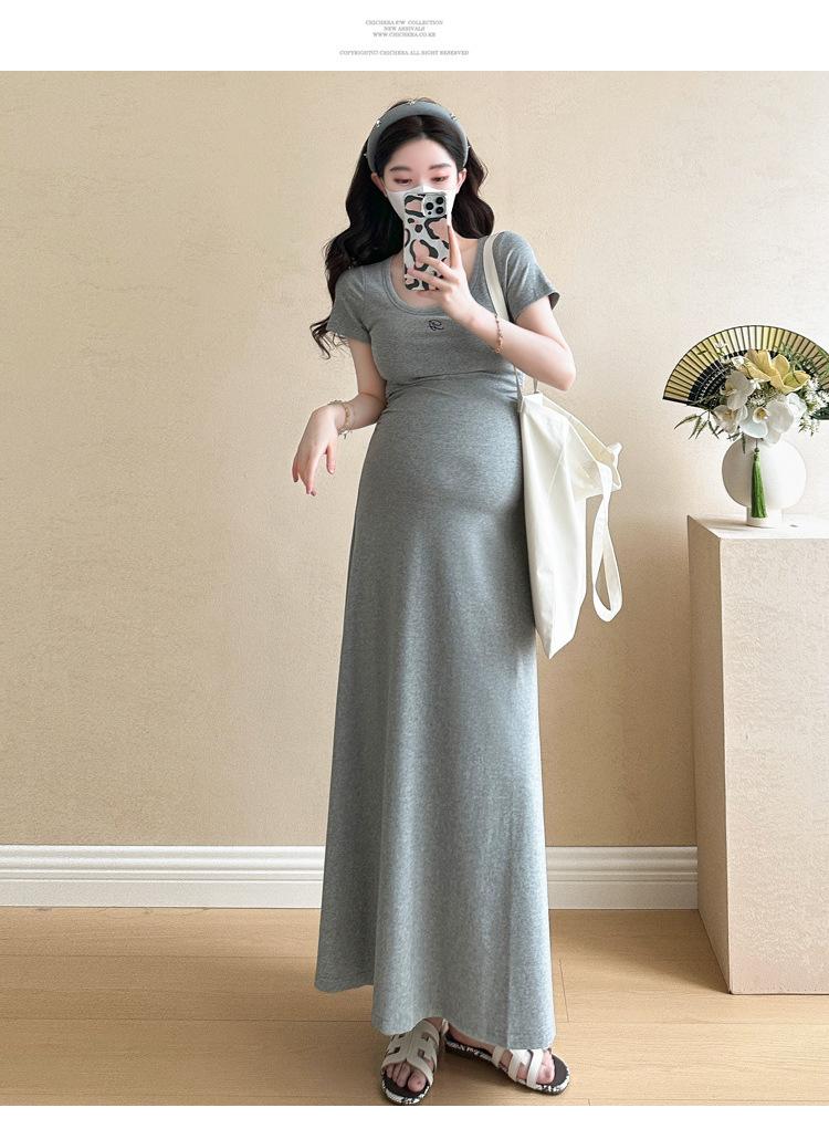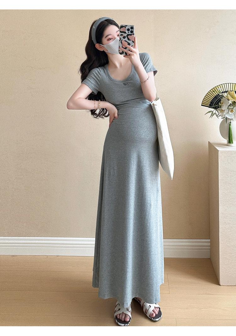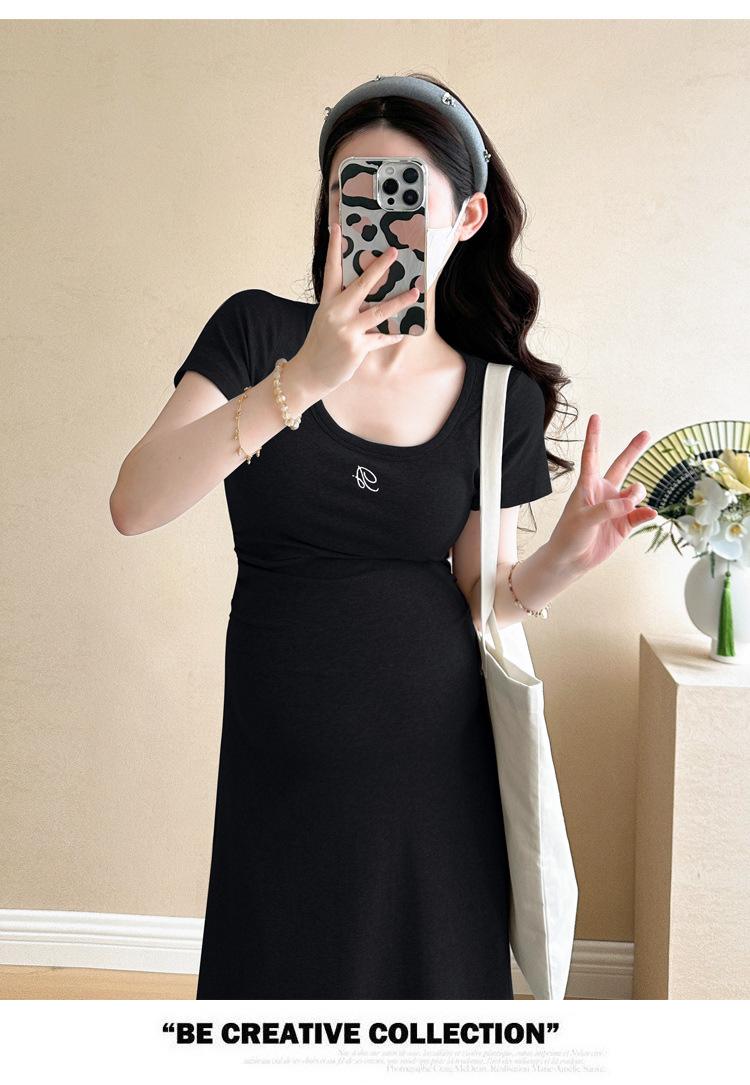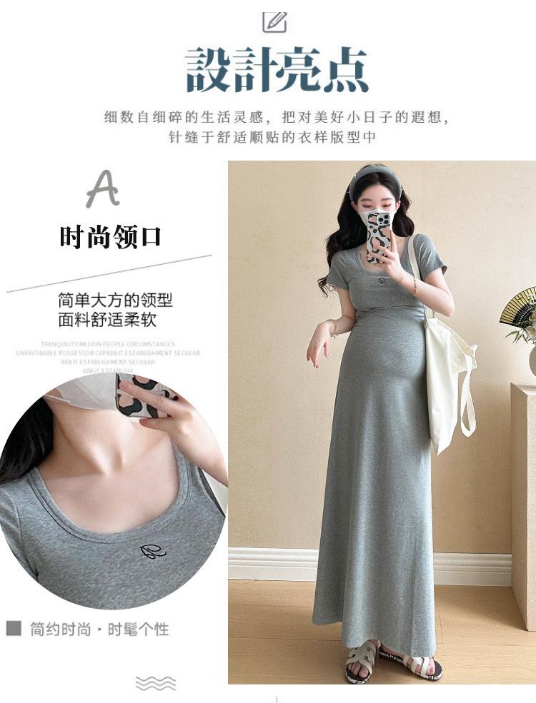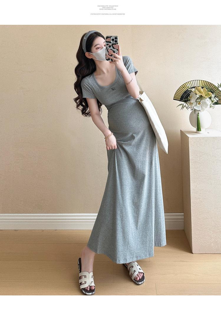 Ropa de Maternidad 2025 Verano Nuevo Estilo Coreano Moda Manga Corta Ajustado Color Puro Vestido de Maternidad