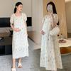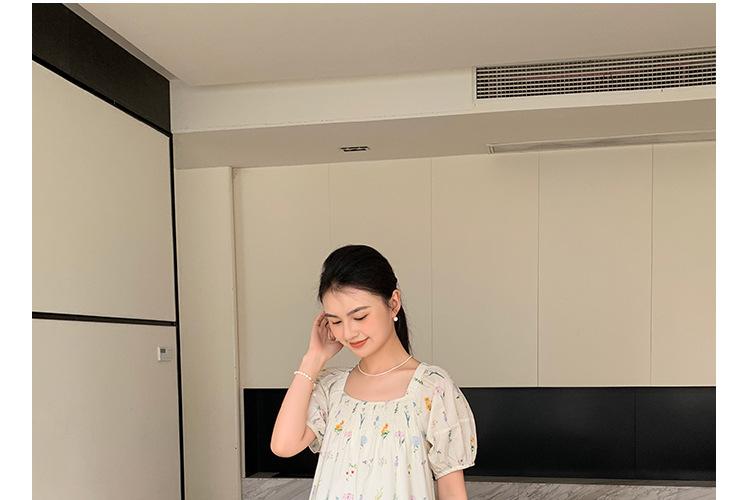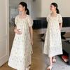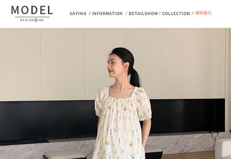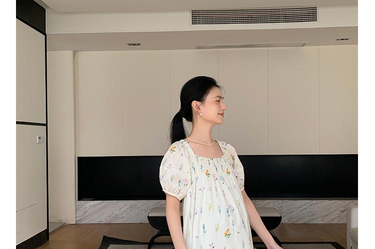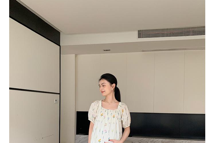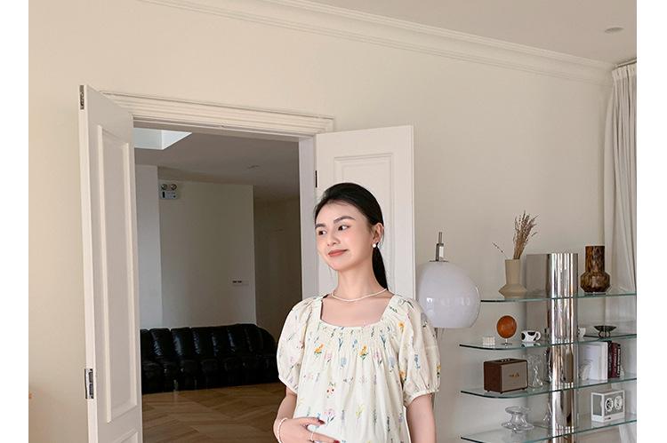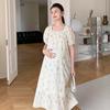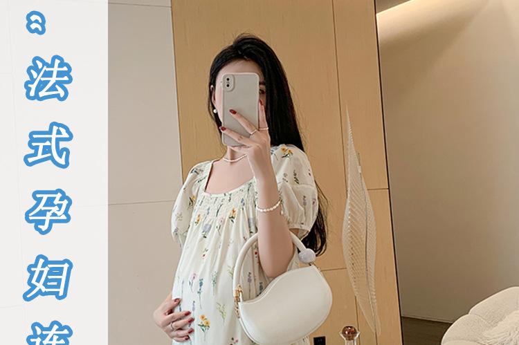 Ropa de Maternidad 2025 Verano Nuevo Dulce Francés Cuello Cuadrado Floral Reductor de Edad Look Adelgazante Suelto Talla Grande Vestido de Maternidad