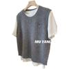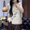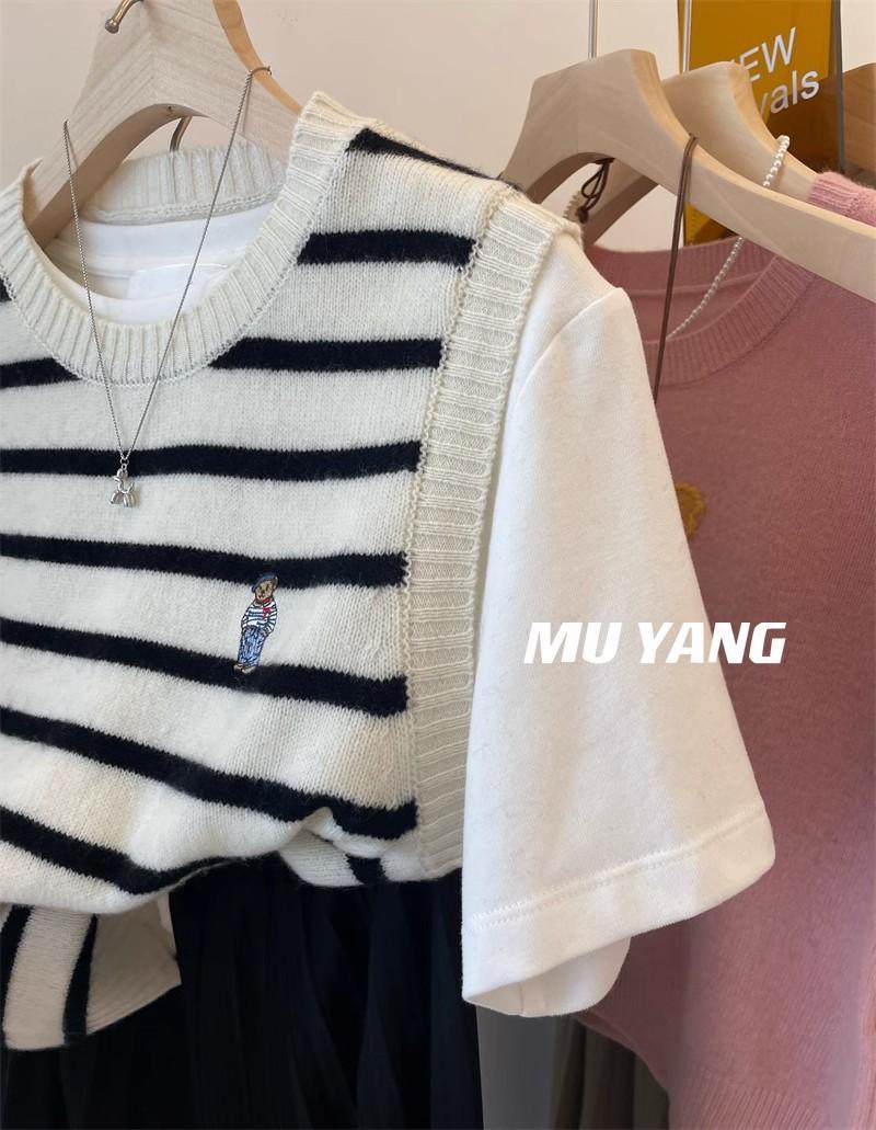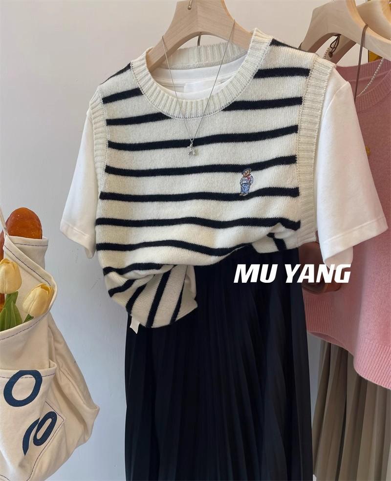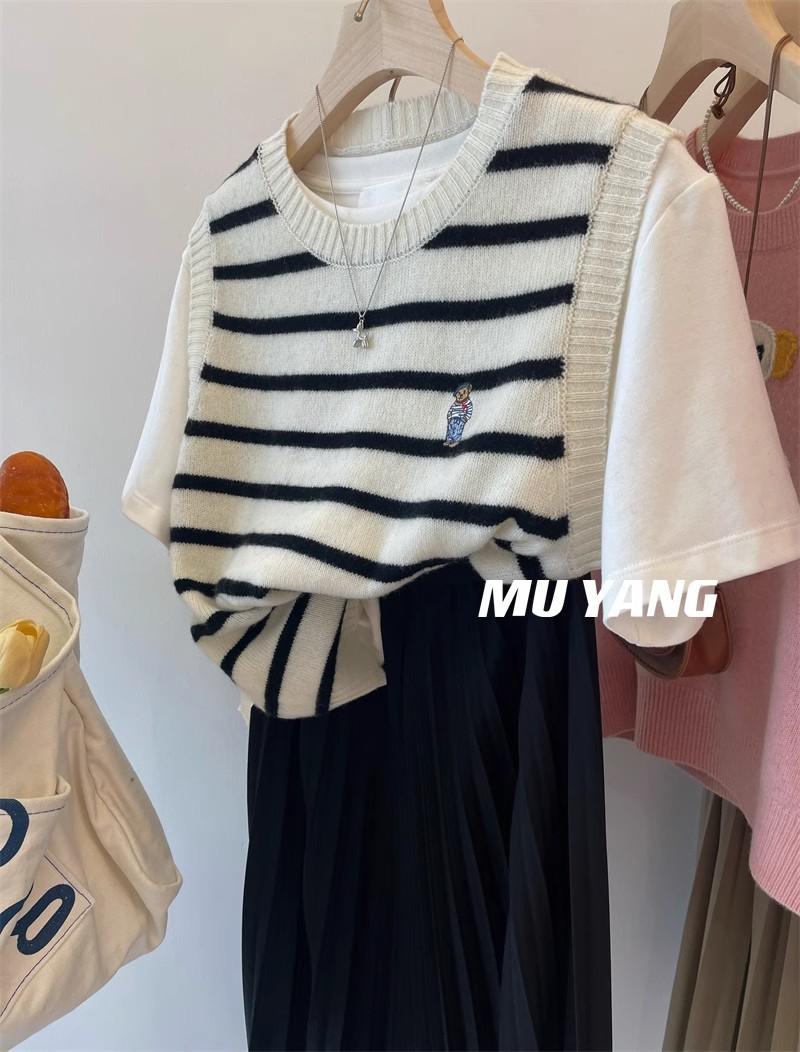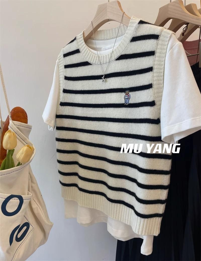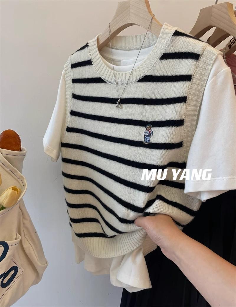 ¡Fin de semana de ocio! Chaleco de lana de cuello redondo con oso bordado para mujer, chaleco de punto apilado suave y cómodo