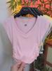 Top de verano con escote en V, mangas cortas y volantes, cintura plisada, elegante camiseta de manga corta con hombro derecho, diseño sexy y ajustado para mujer.