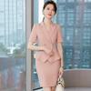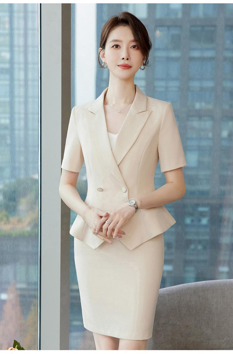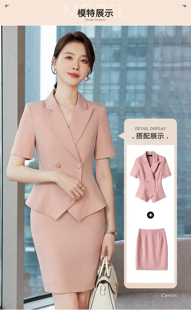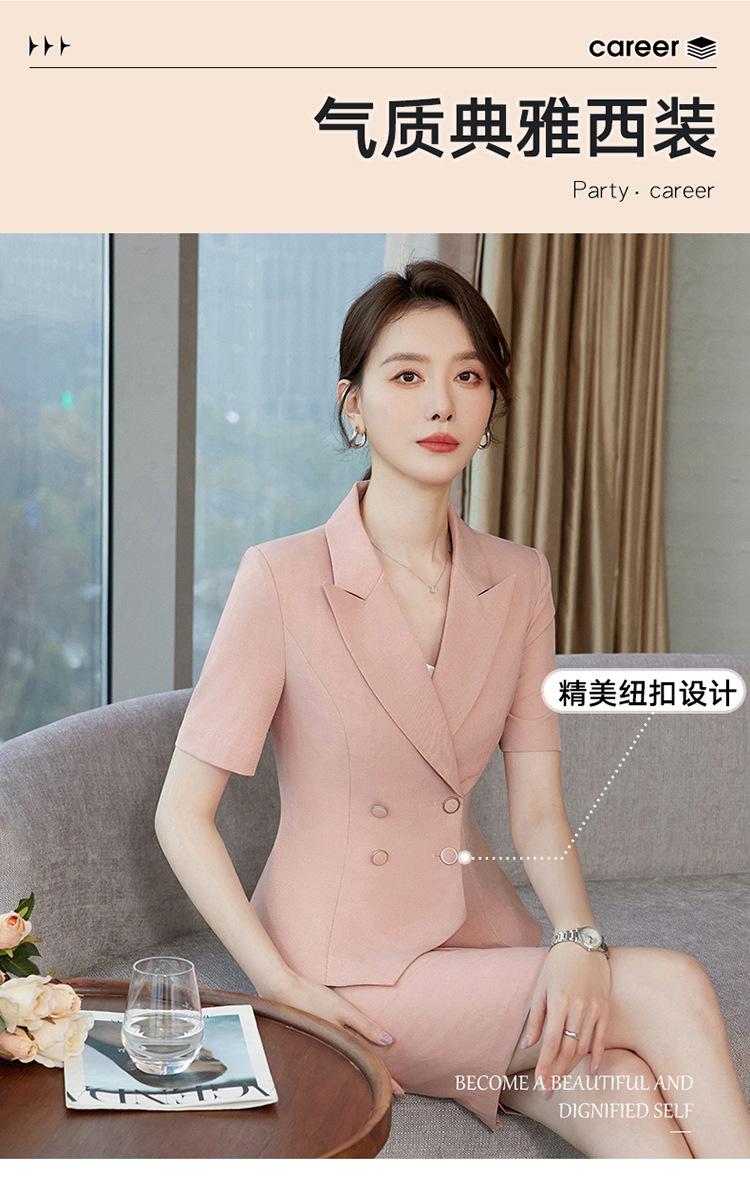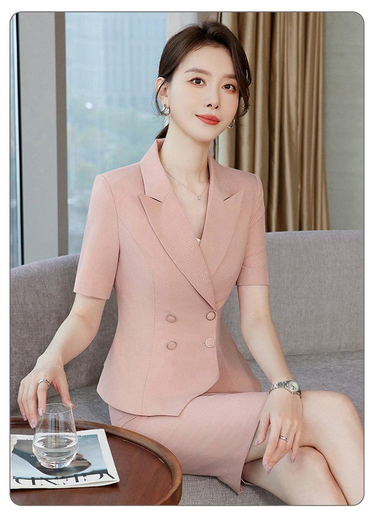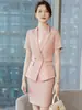 Chaqueta Rosa de Verano de Manga Corta con Cuello de Traje Pequeño para Mujer, Pantalón, Falda, Verano 25 Años Nuevo Moda Profesional Traje de Dos Piezas