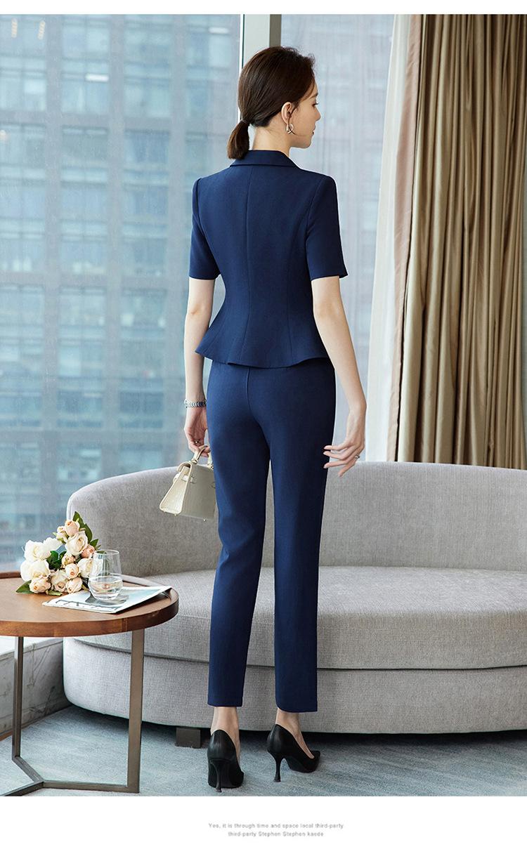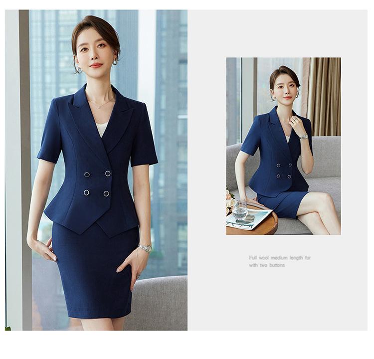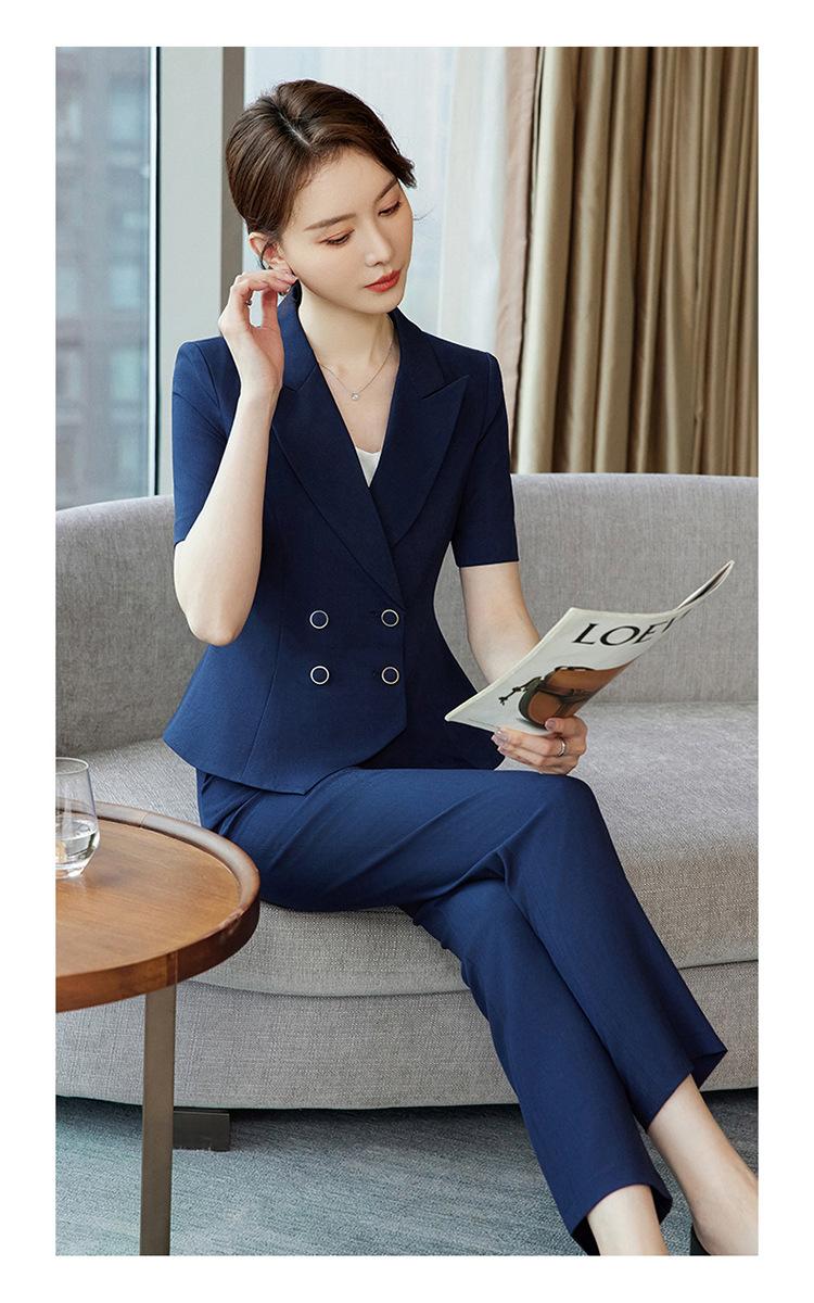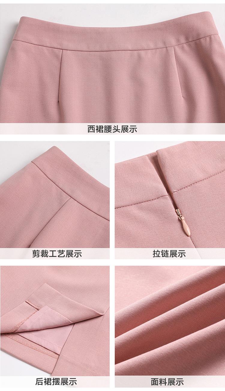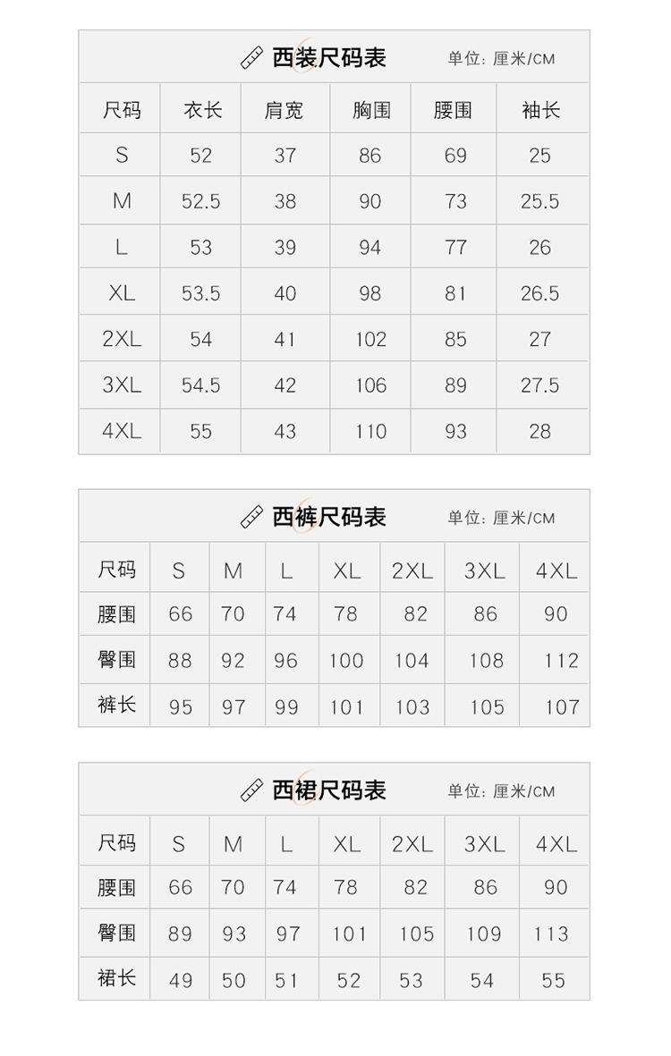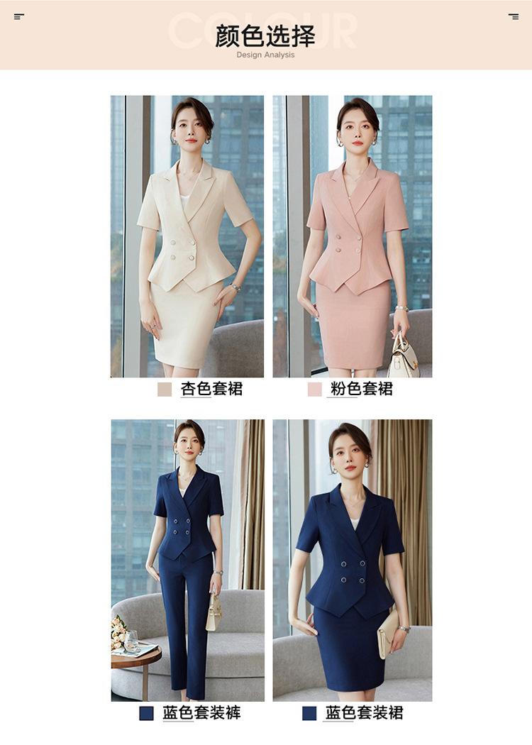 Pink suit + skirt, Blue suit + skirt, Apricot suit + skirt, Blue suit + pants