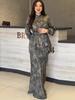 Verano 2025 Exportación Nuevo Europeo y Americano Amazon Elegante y Sexy Top Estampado de Tinta + Falda Conjunto de Dos Piezas