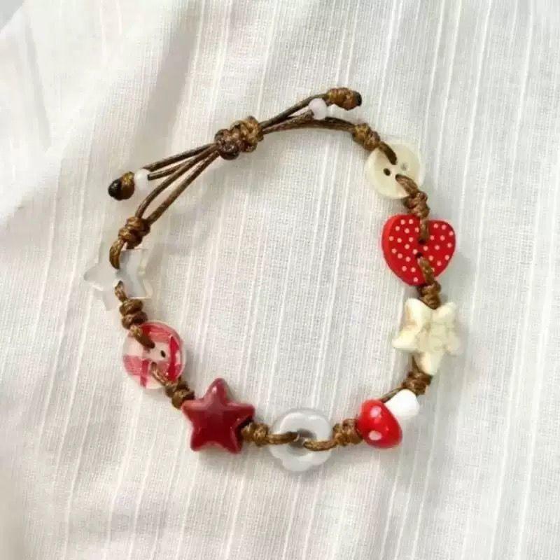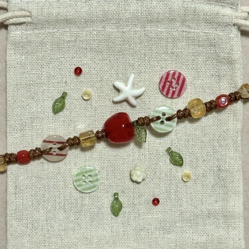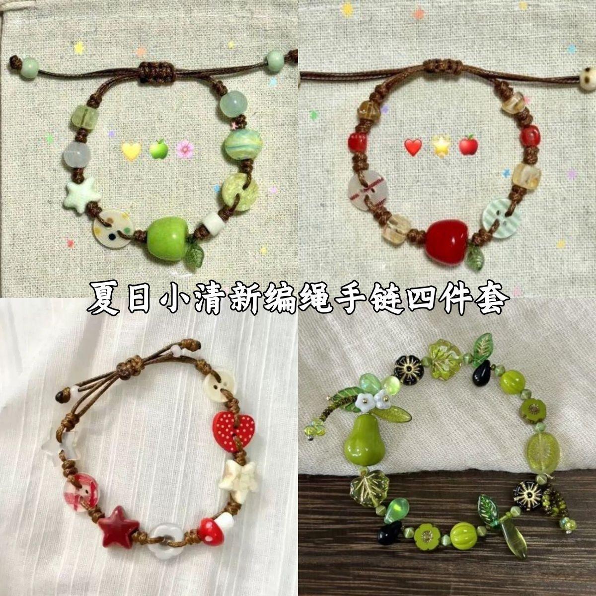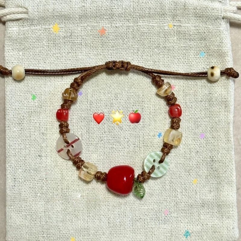 Green apple beaded bracelet, Red apple beaded bracelet, Red star braided rope bracelet, Green pear braided rope bracelet