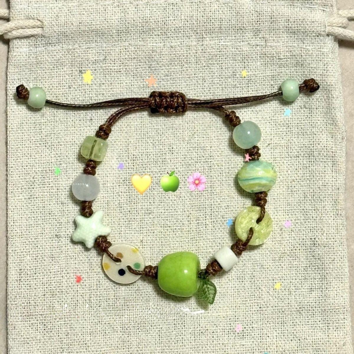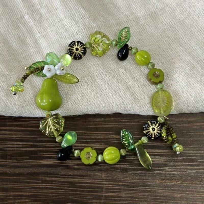 Pulsera de Cuentas Coloridas Diseño Nicho Paraíso de Manzana Verde Linda y Dulce Pequeña Fresca 2025 Nueva Joyería de Mano