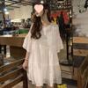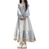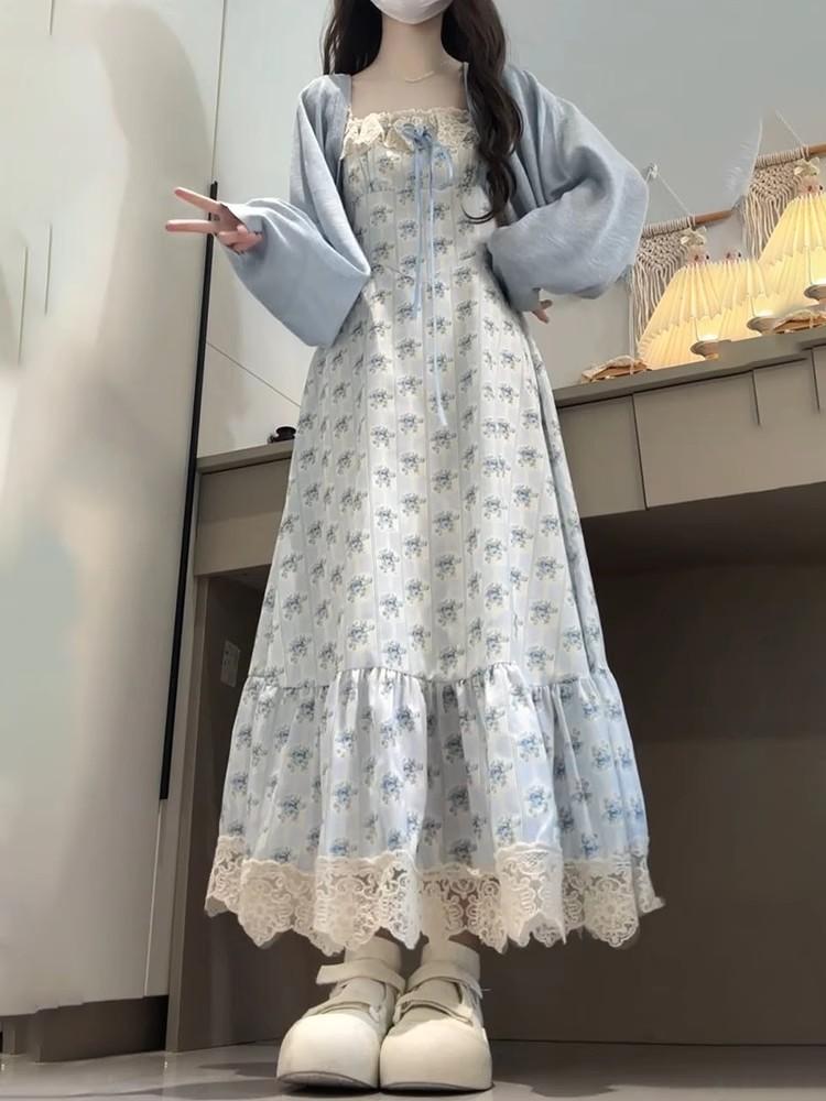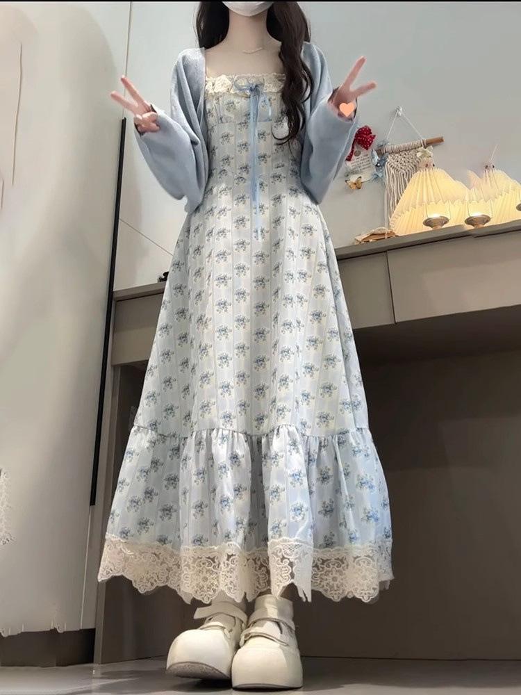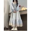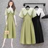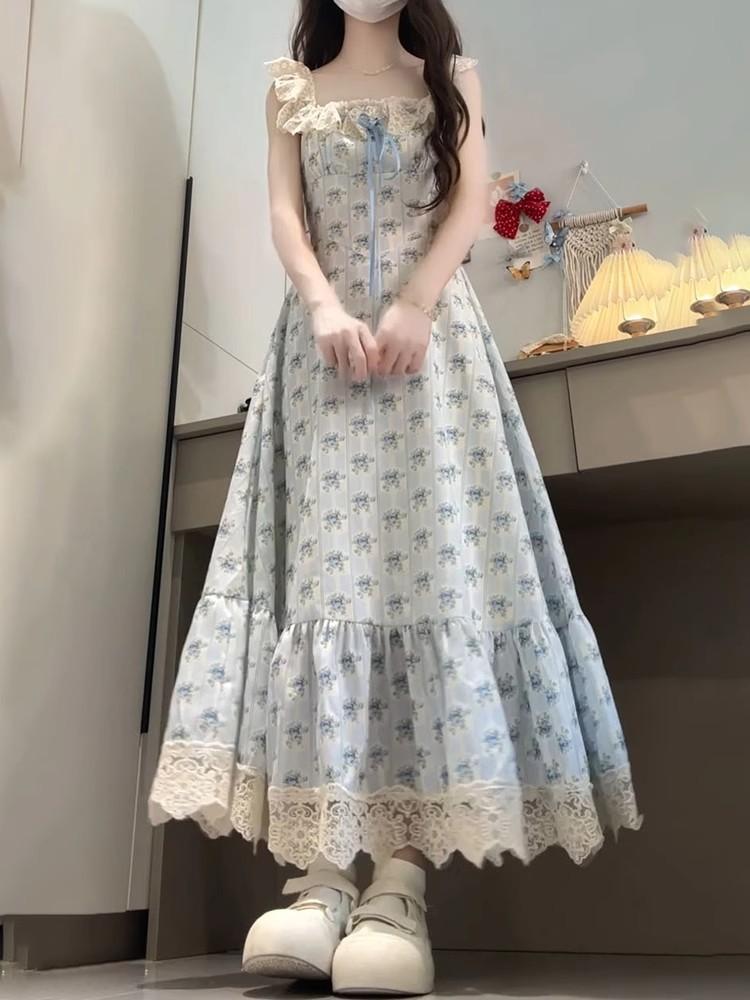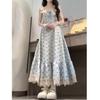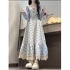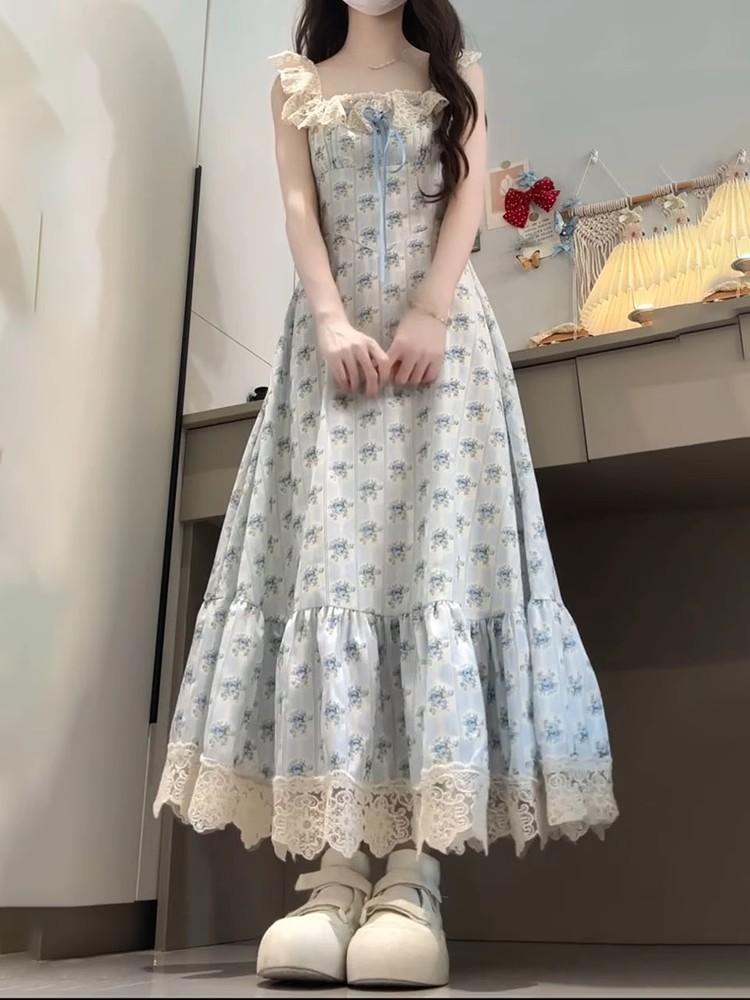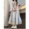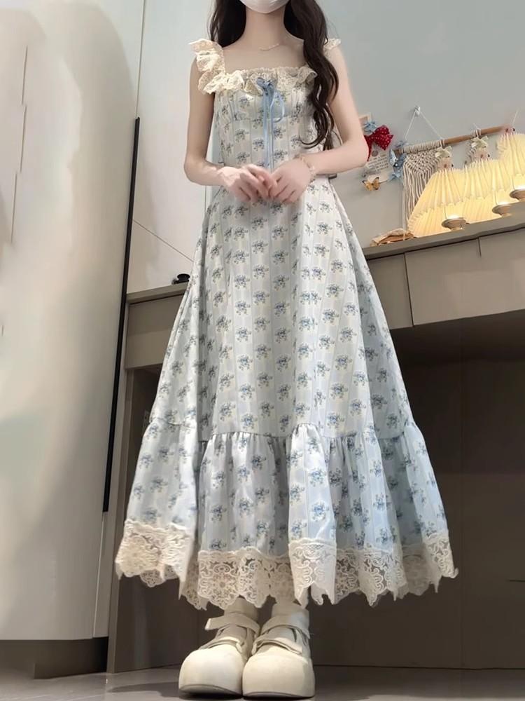 2025 Nuevo Verano Encaje Empalmado Estilo Universitario Estilo Coreano Estilo Suave Adelgazante de Cintura Cuello Muñeca Vestido Floral