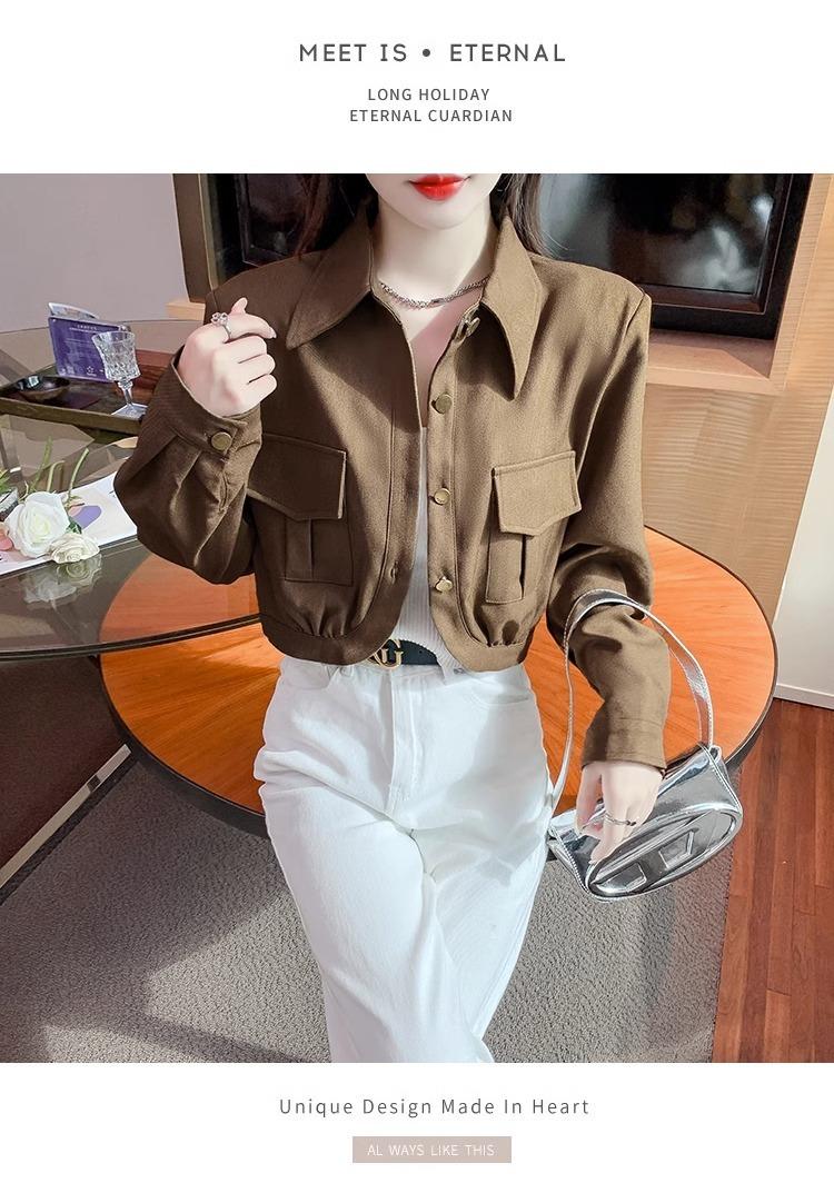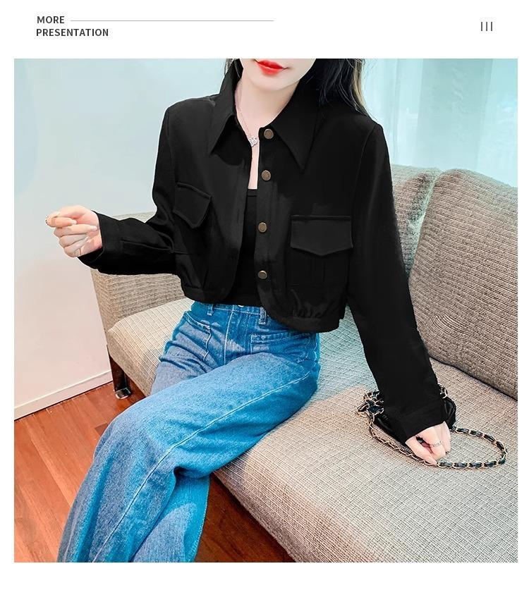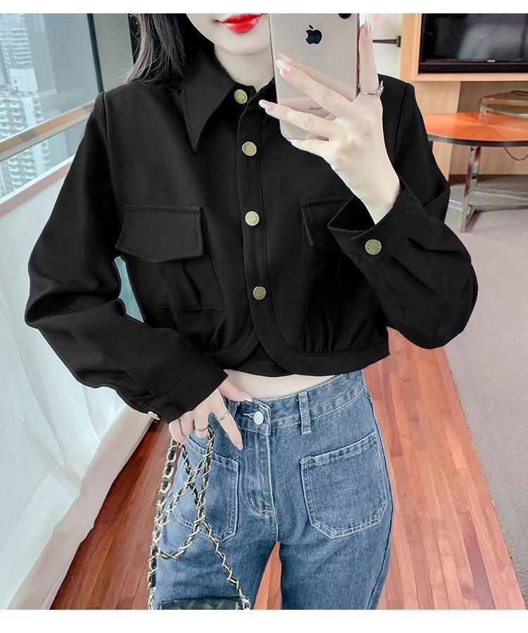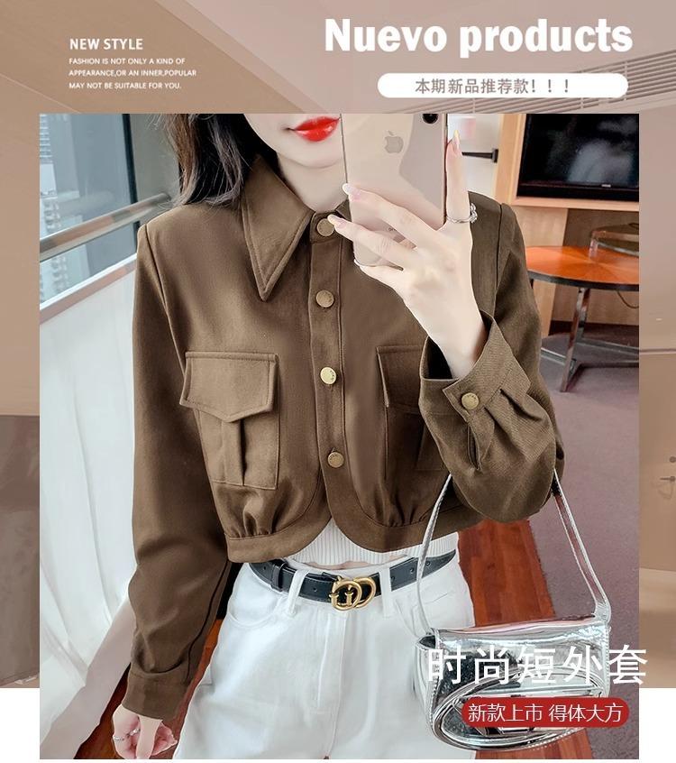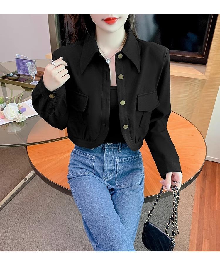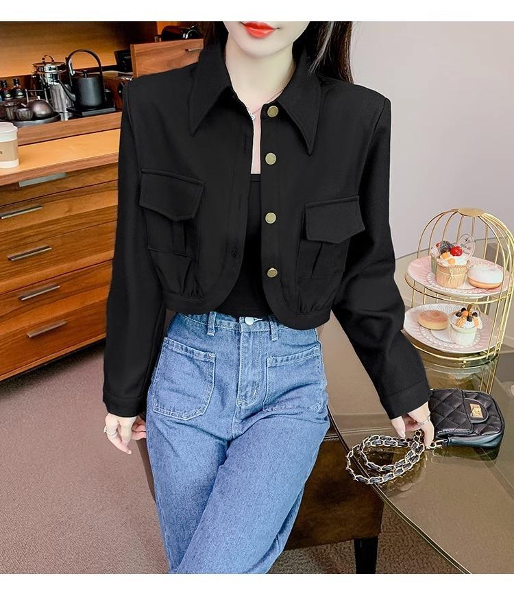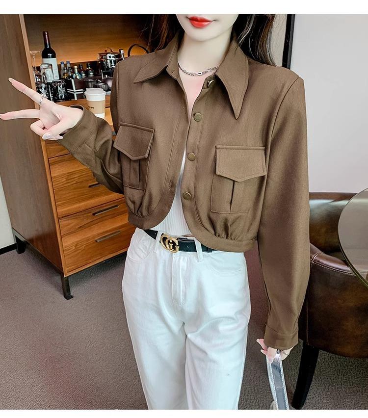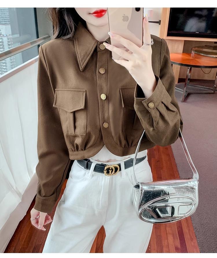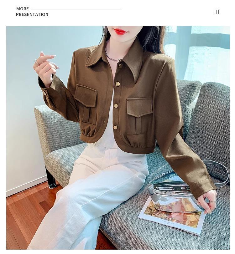 Chaqueta de Trabajo Chaqueta para Mujer en Otoño 2025 Nueva de Alta Gama Pequeña de Manga Larga Versátil Look Adelgazante Top Corto