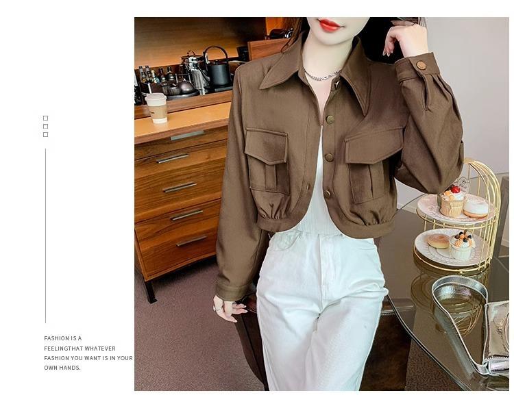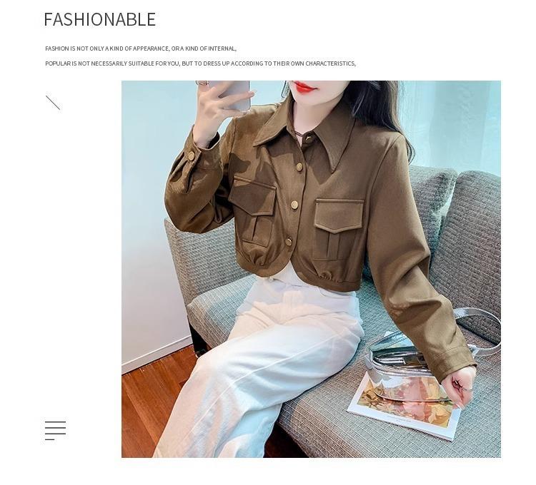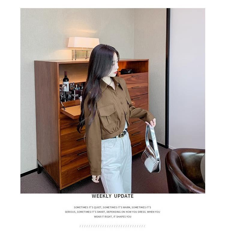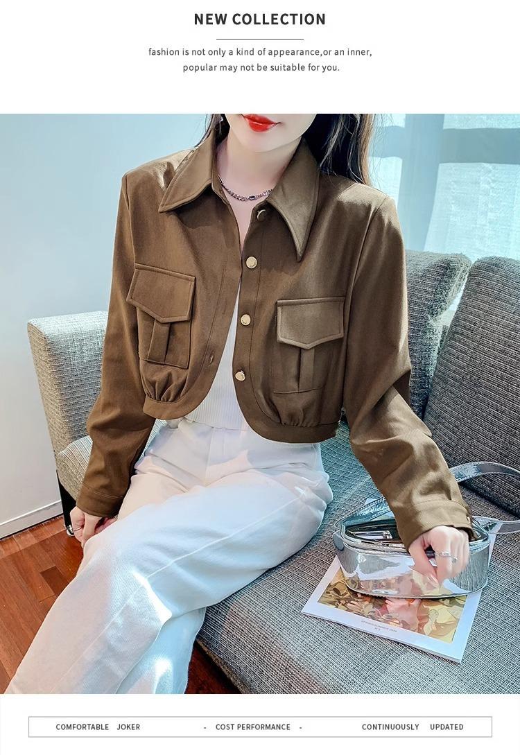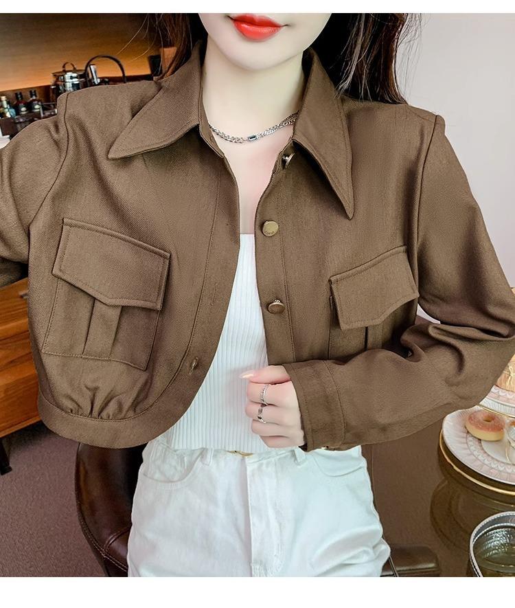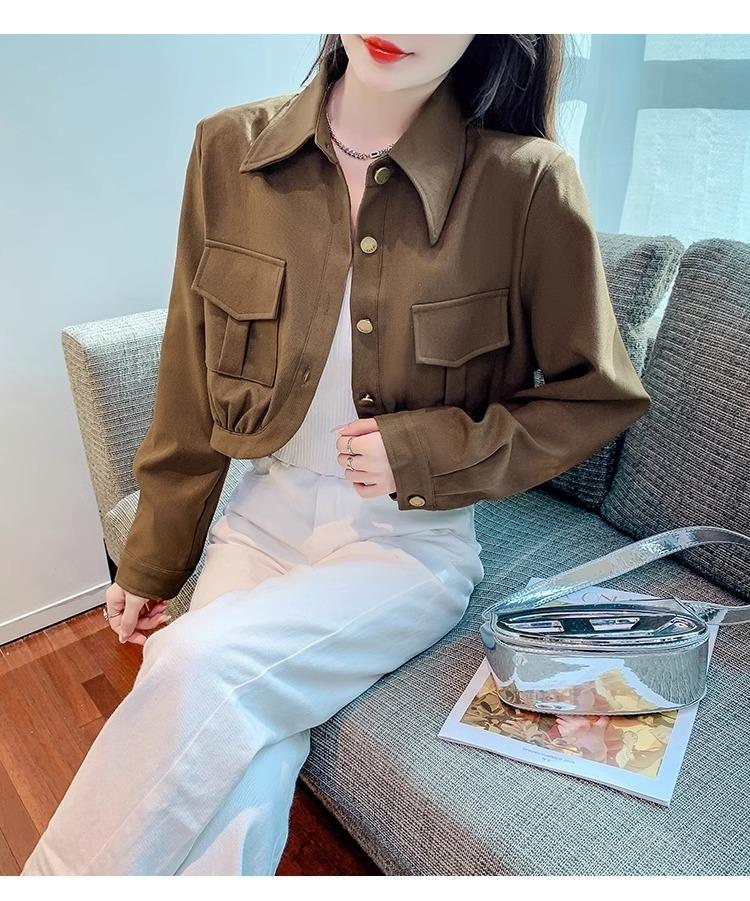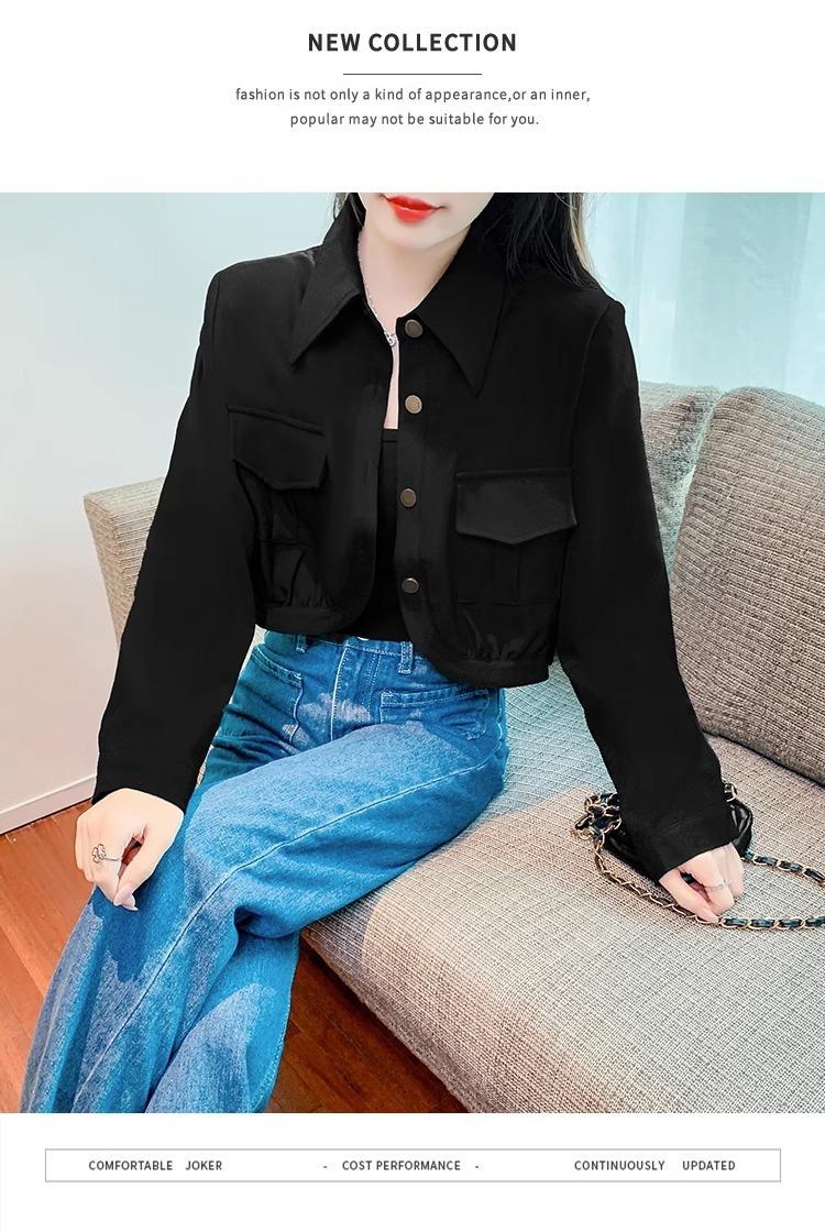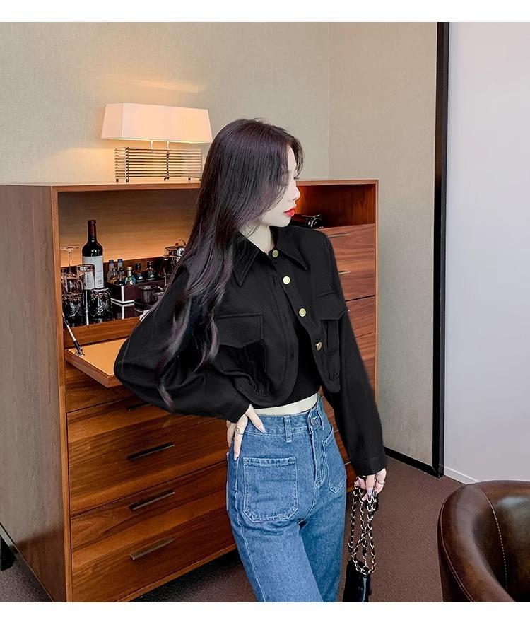 Chaqueta de Trabajo Chaqueta para Mujer en Otoño 2025 Nueva de Alta Gama Pequeña de Manga Larga Versátil Look Adelgazante Top Corto