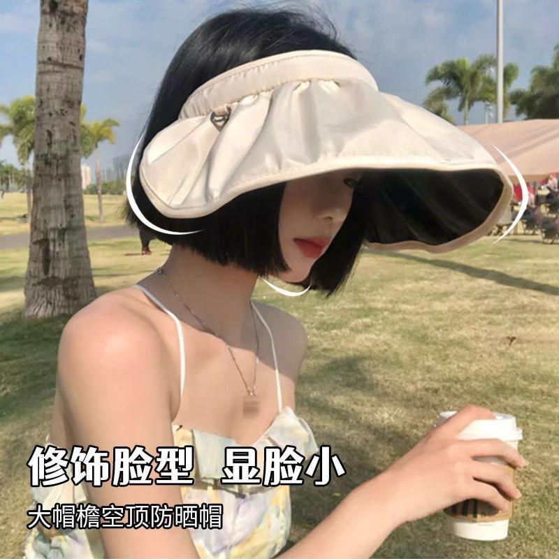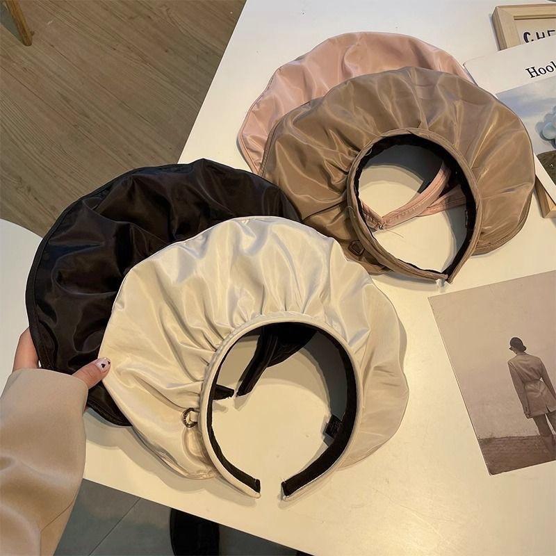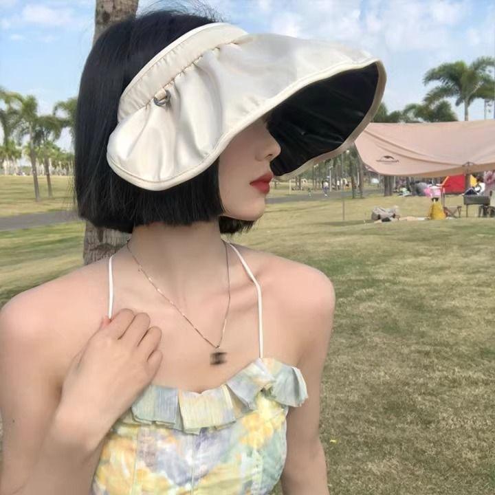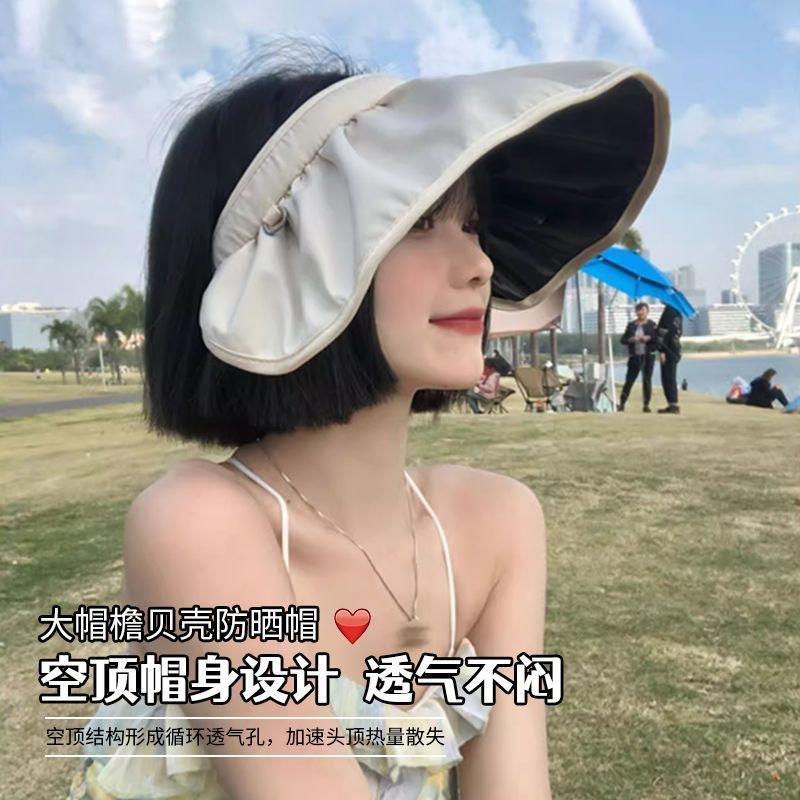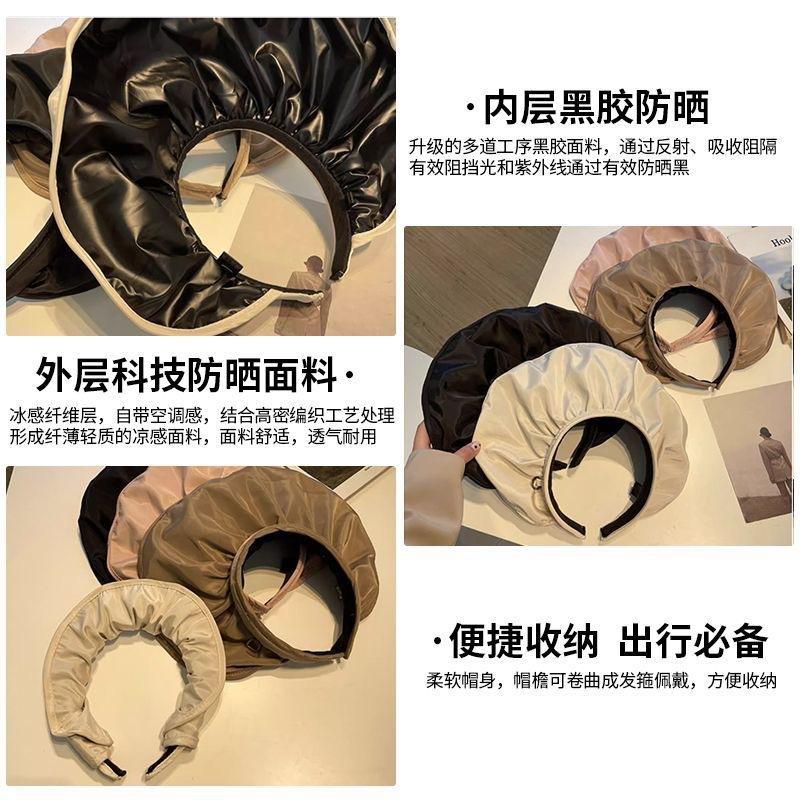 [Personalizado] Sombrero de Sol de Verano de Goma Negra para Mujer, Sombrero Visera Protector Solar, Sombrero Diadema de Concha, Ala Ancha Protección UV Sombrilla