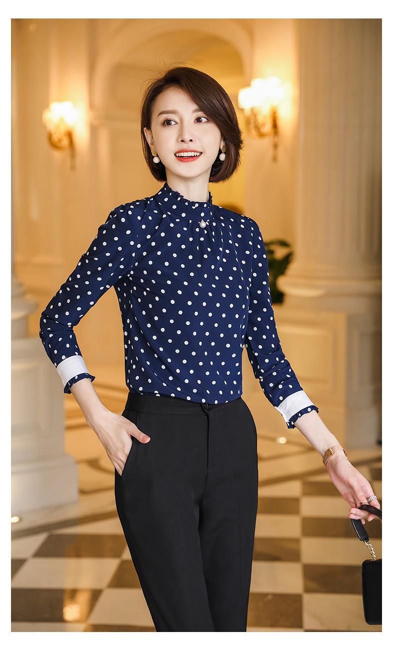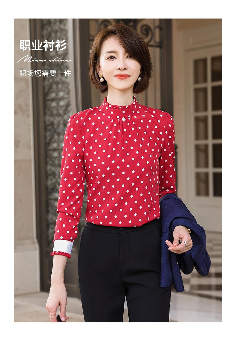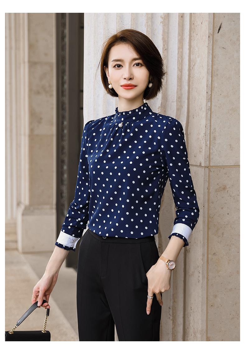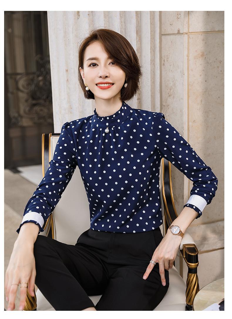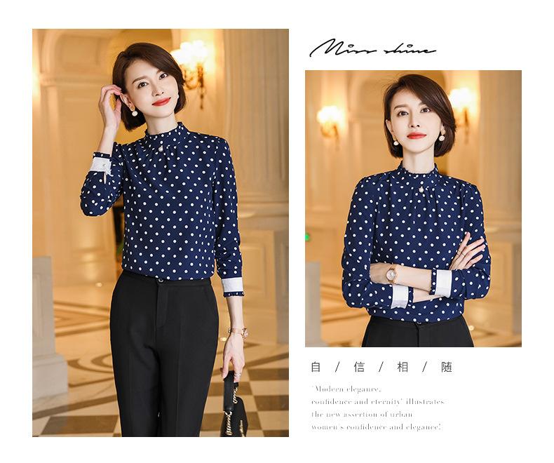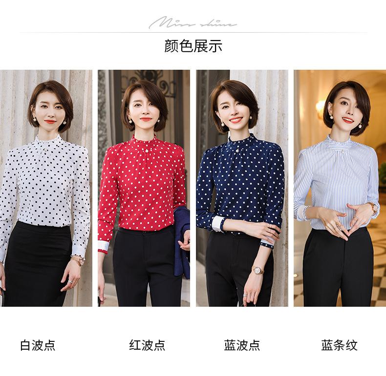 Primavera Primavera 2023 para Mujer Nueva Blusa Elegante Profesional de Manga Larga de Gasa Ropa de Trabajo Camisa de Lunares