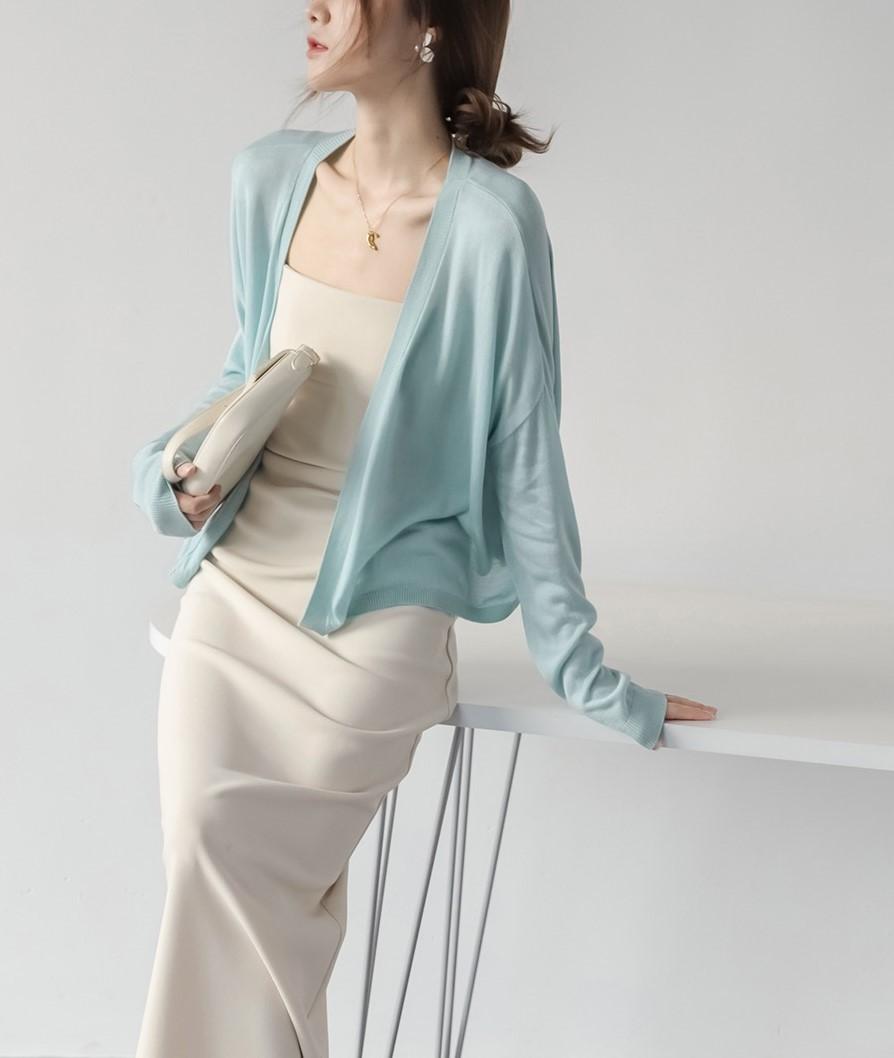 Suéter de Protección Solar de Manga Larga de Acetato Tencel de Peso Pesado, Cárdigan Pequeño Elegante para Mujer de Corte Holgado e Informal para Ir al Trabajo