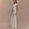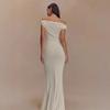 Vestido de Noche Elegante Blanco Slim Europeo y Americano Vestido con Hombros Descubiertos Vestido de Noche Delicado Adelgazante Venta al por Mayor