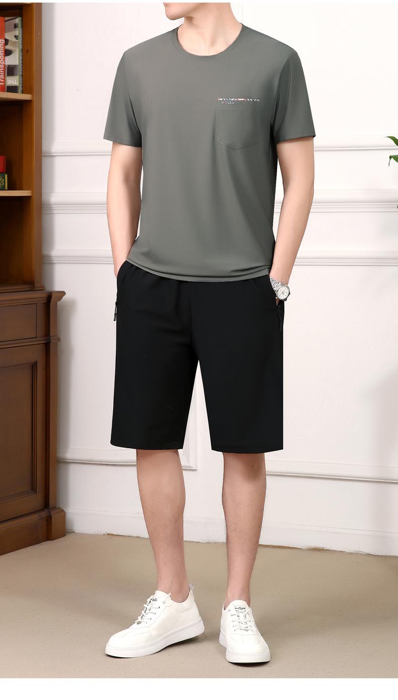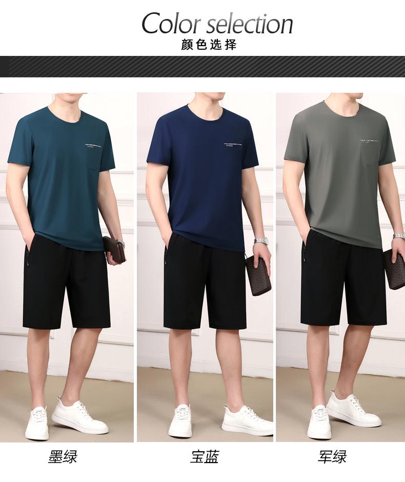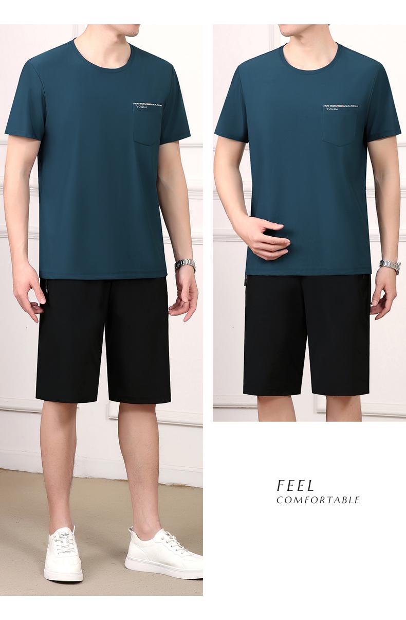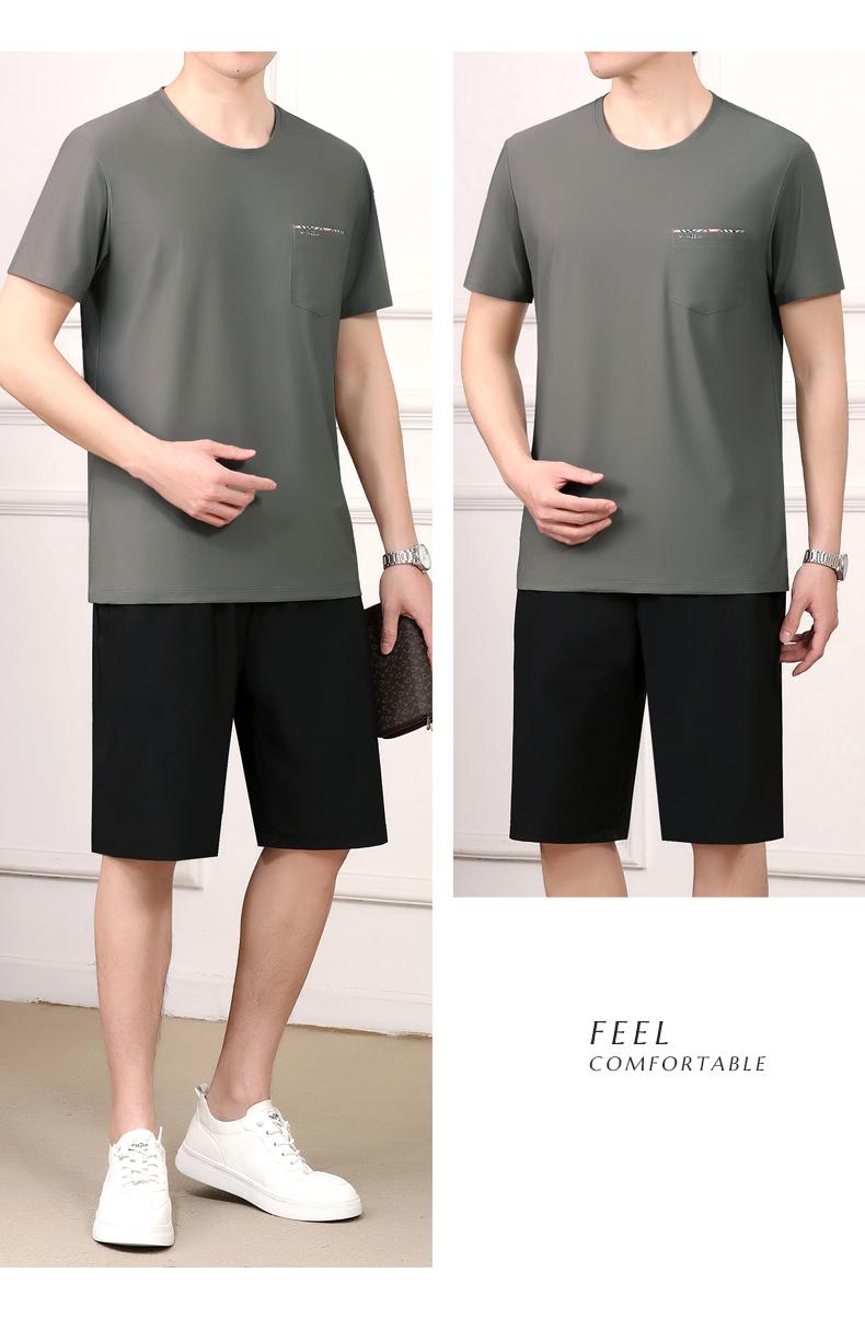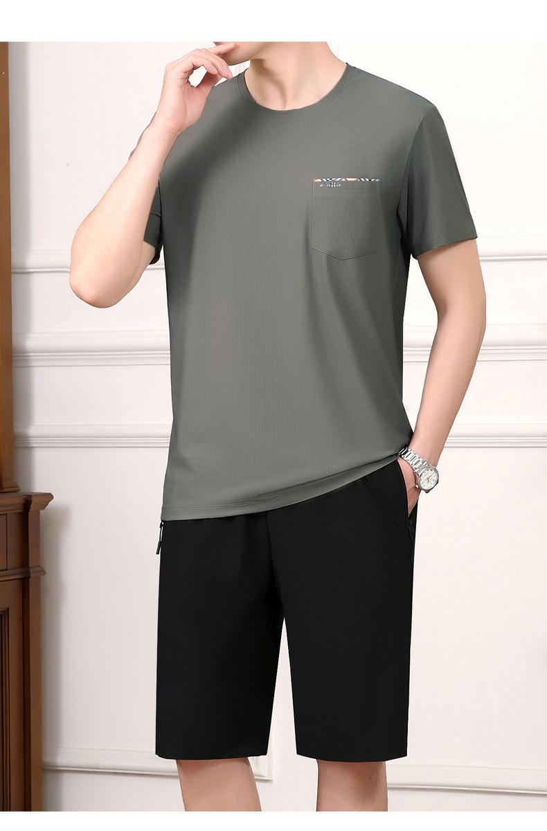 Conjunto de ropa deportiva para hombres de mediana edad, camiseta de manga corta de seda de hielo con cuello redondo para hombre, ropa casual de verano para papá, delgada