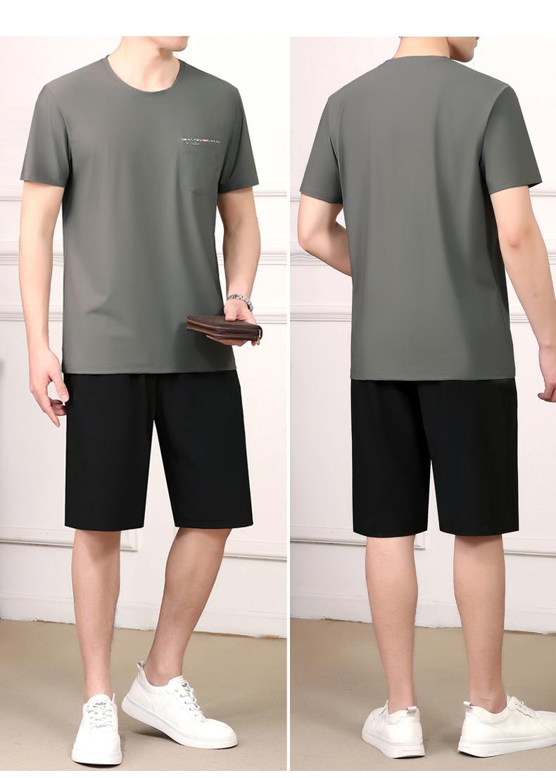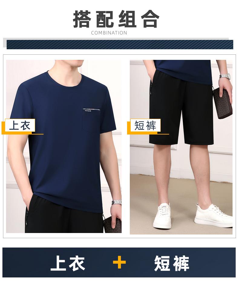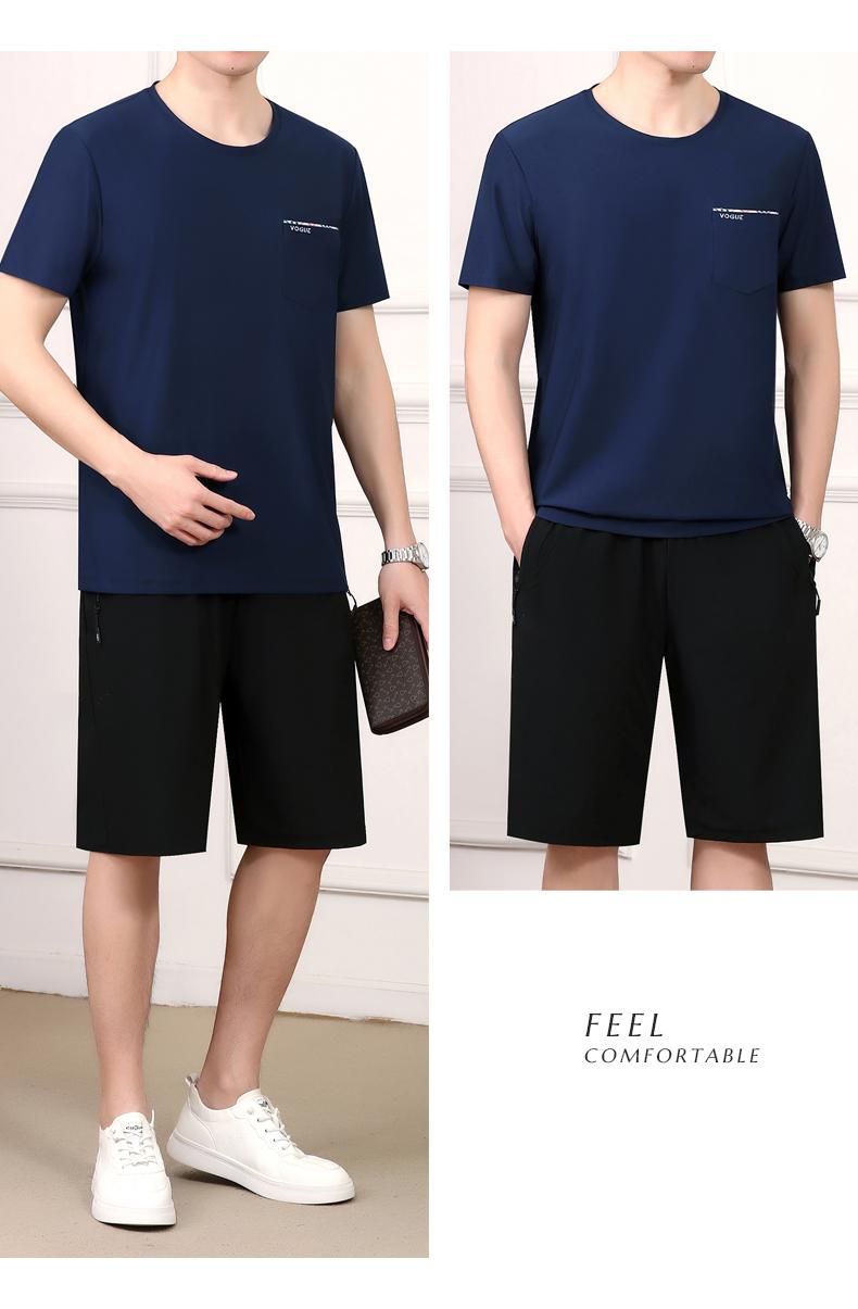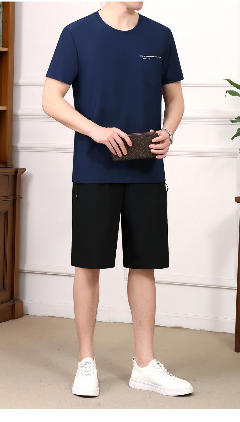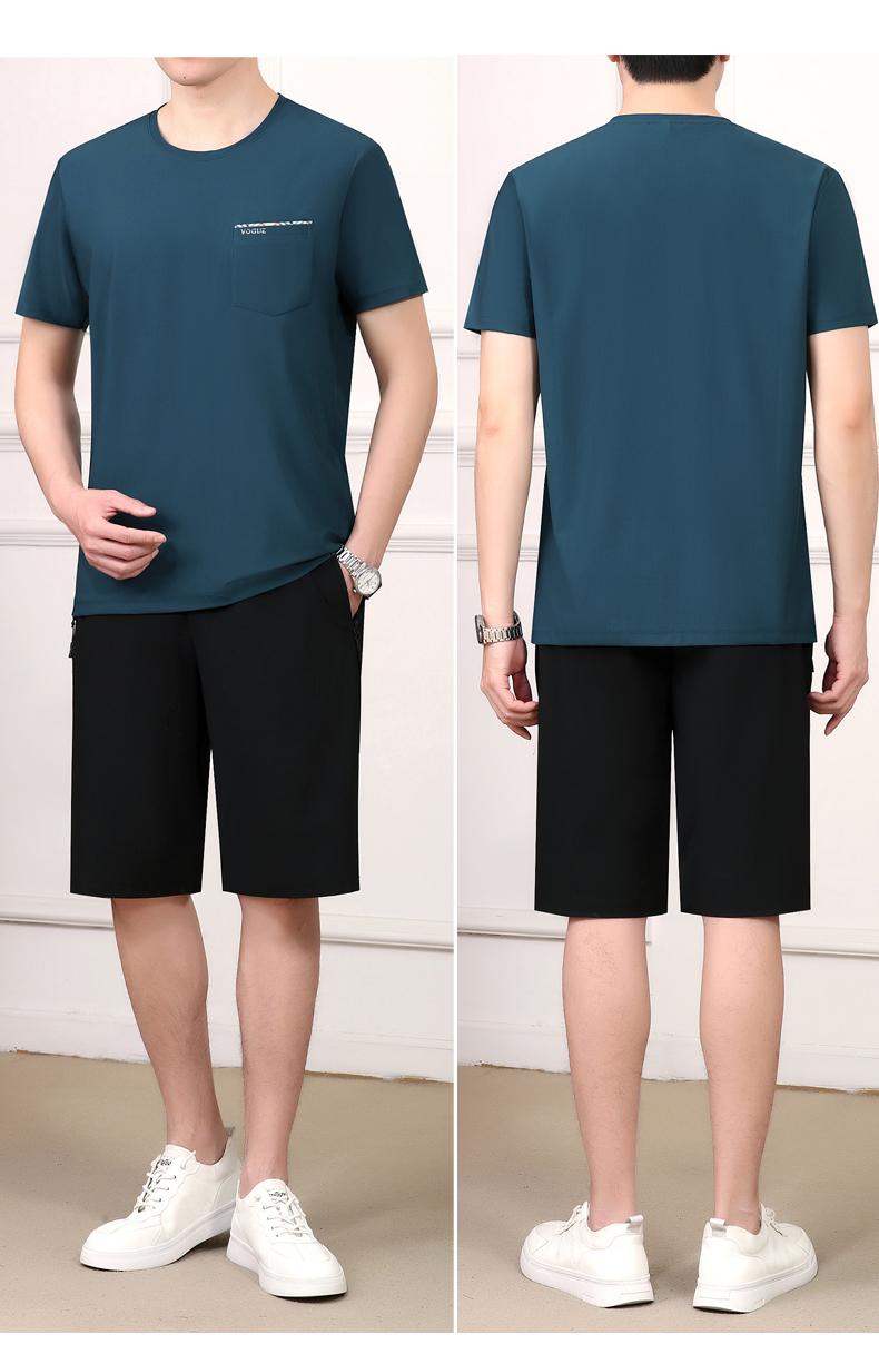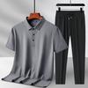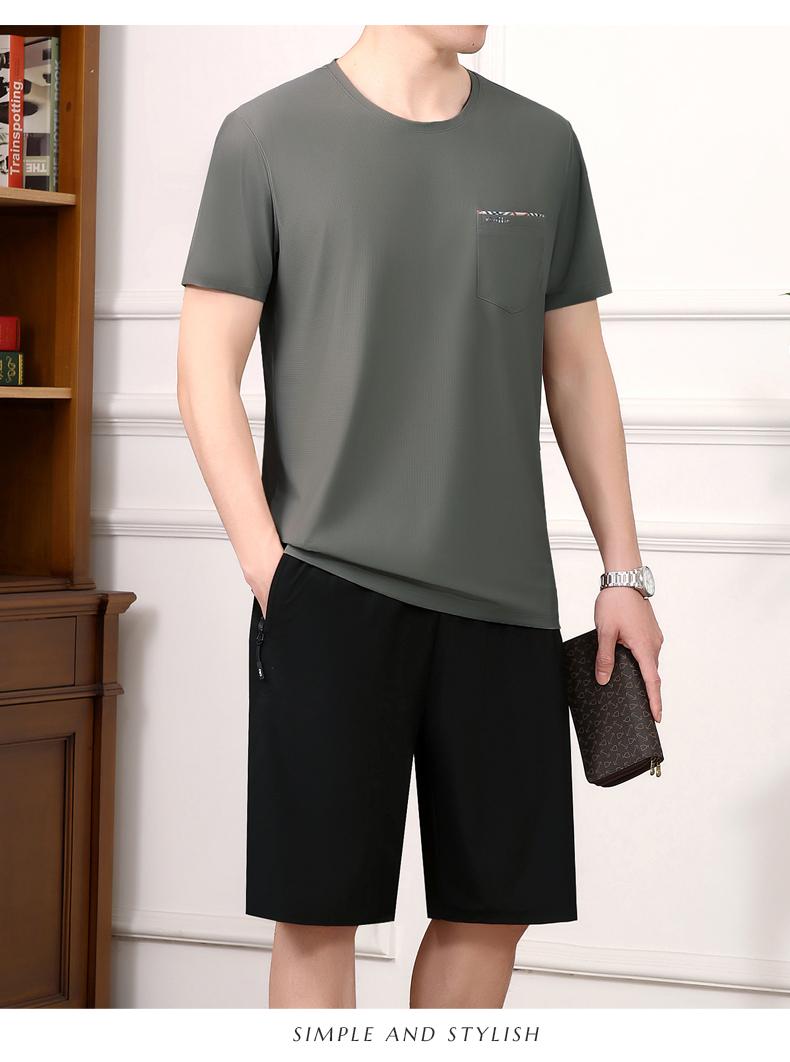 Conjunto de ropa deportiva para hombres de mediana edad, camiseta de manga corta de seda de hielo con cuello redondo para hombre, ropa casual de verano para papá, delgada