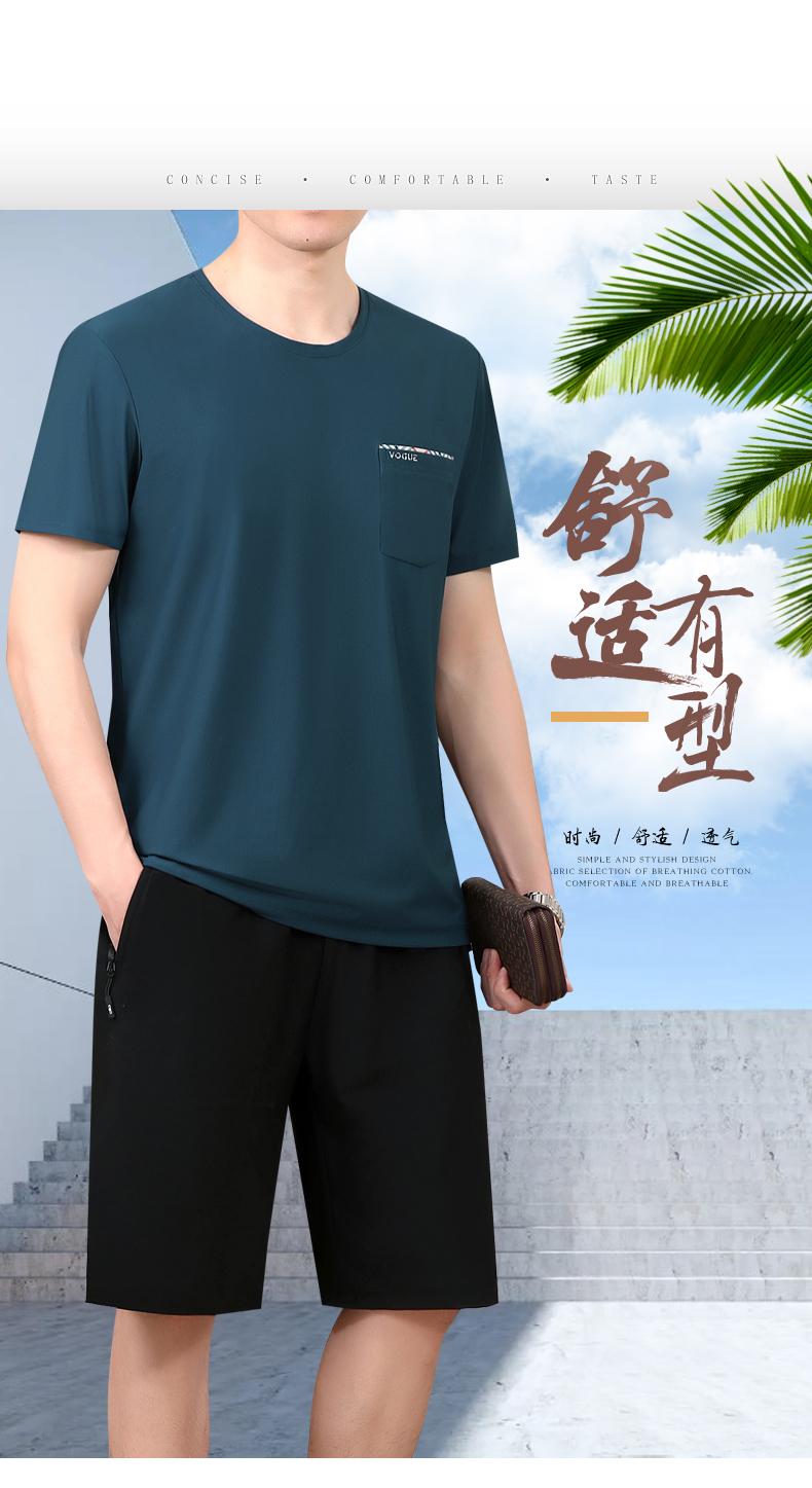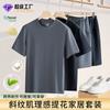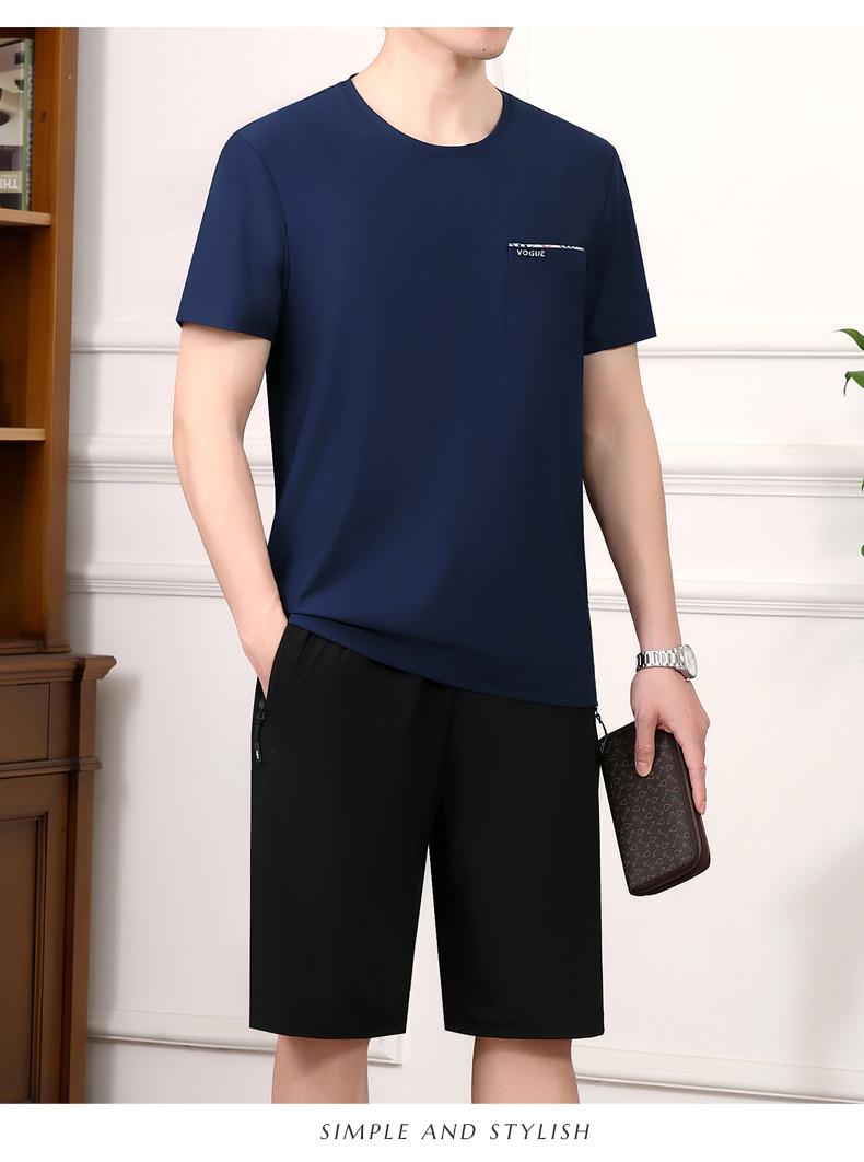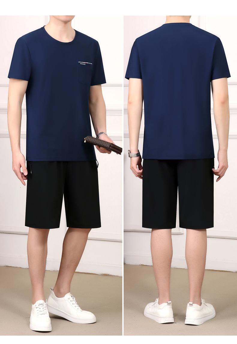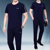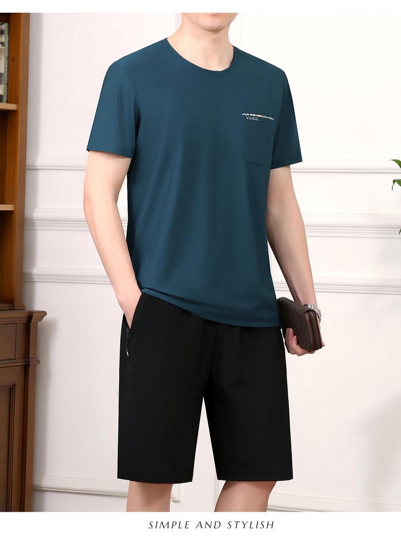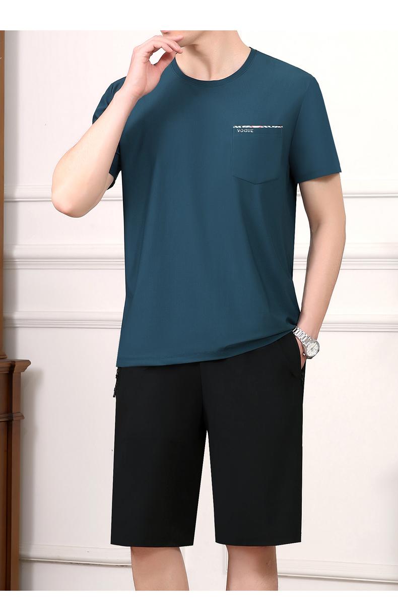 Conjunto de ropa deportiva para hombres de mediana edad, camiseta de manga corta de seda de hielo con cuello redondo para hombre, ropa casual de verano para papá, delgada