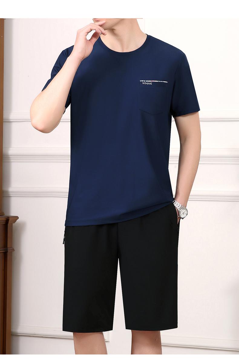 Traje de Ropa Deportiva para Hombres de Mediana Edad Camiseta de Manga Corta de Cuello Redondo de Seda Helada para Verano para Hombre Ropa Casual Fina para Ancianos