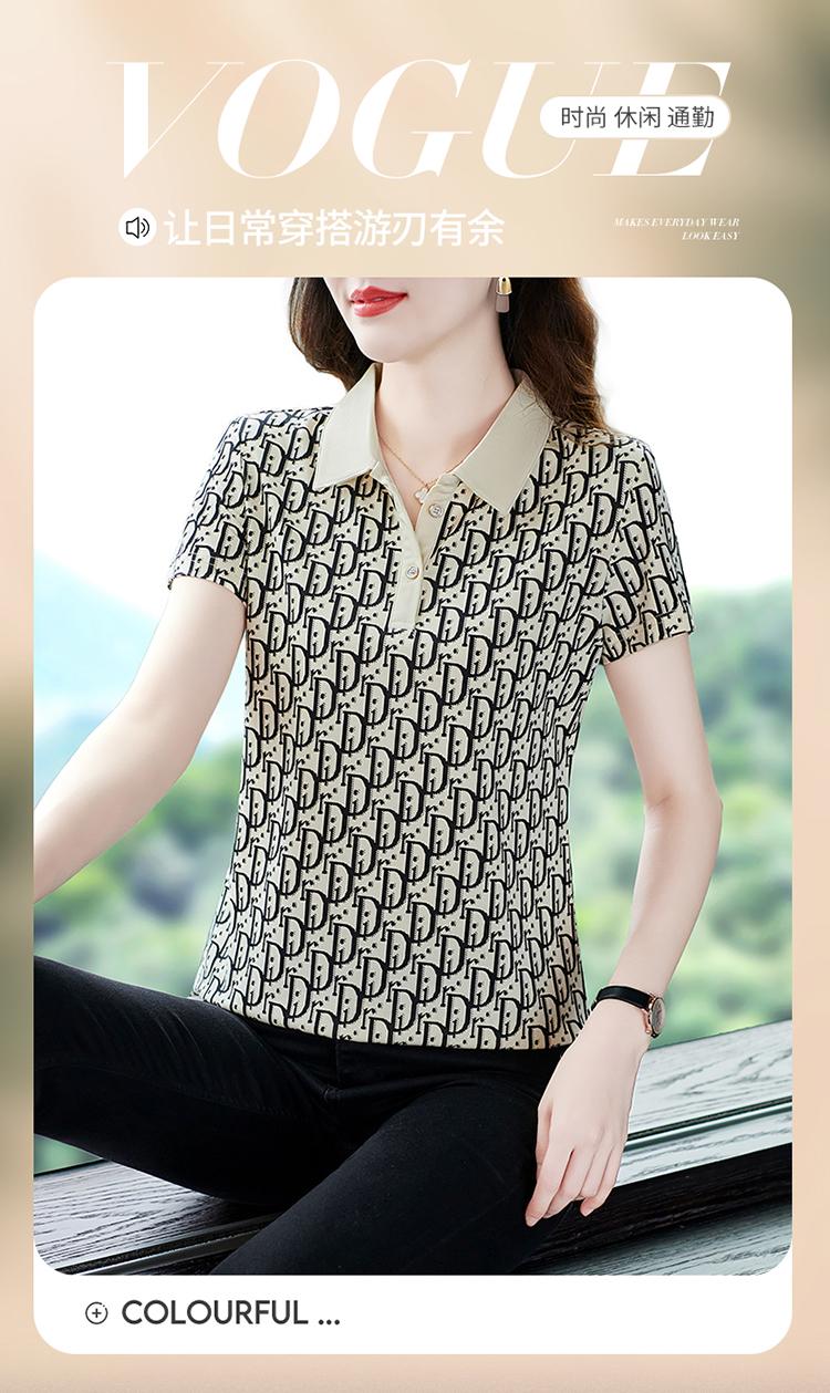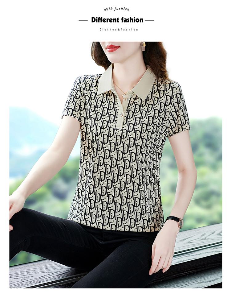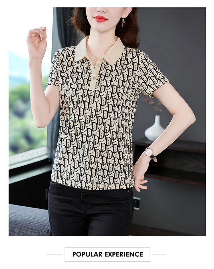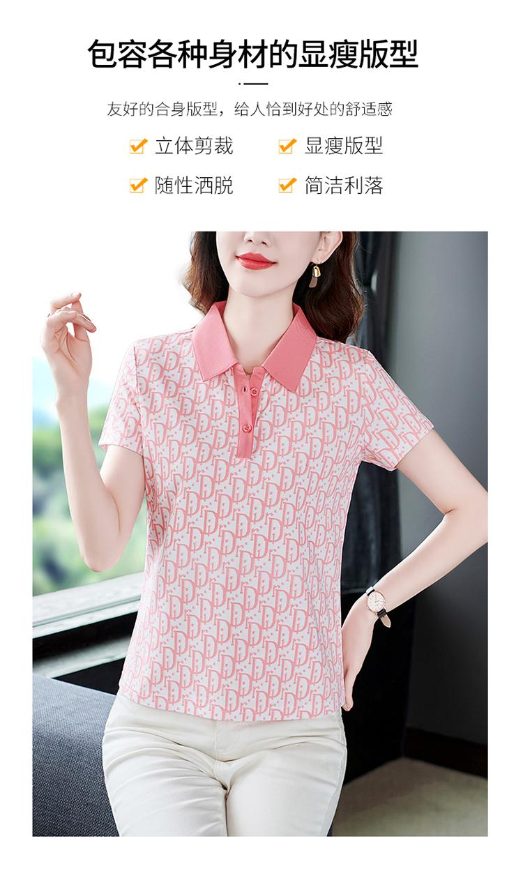 Playera Deportiva de Solapa y Manga Corta para Mujer Verano 2023 Nuevo Estilo Mamá de Mediana Edad Top Versátil Camiseta para Dama Camisa Polo T
