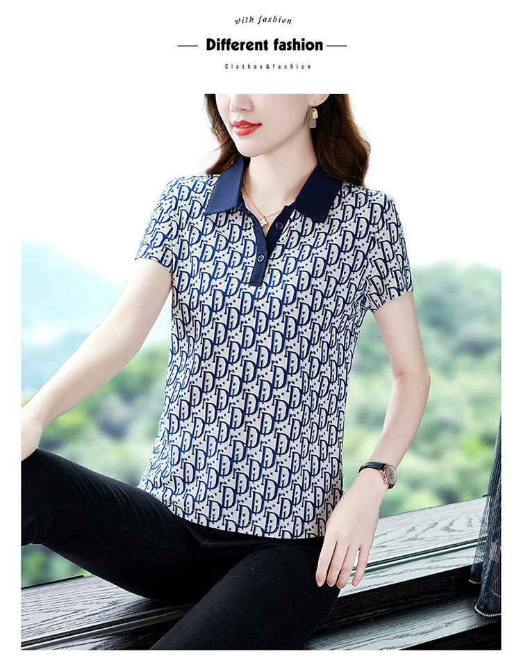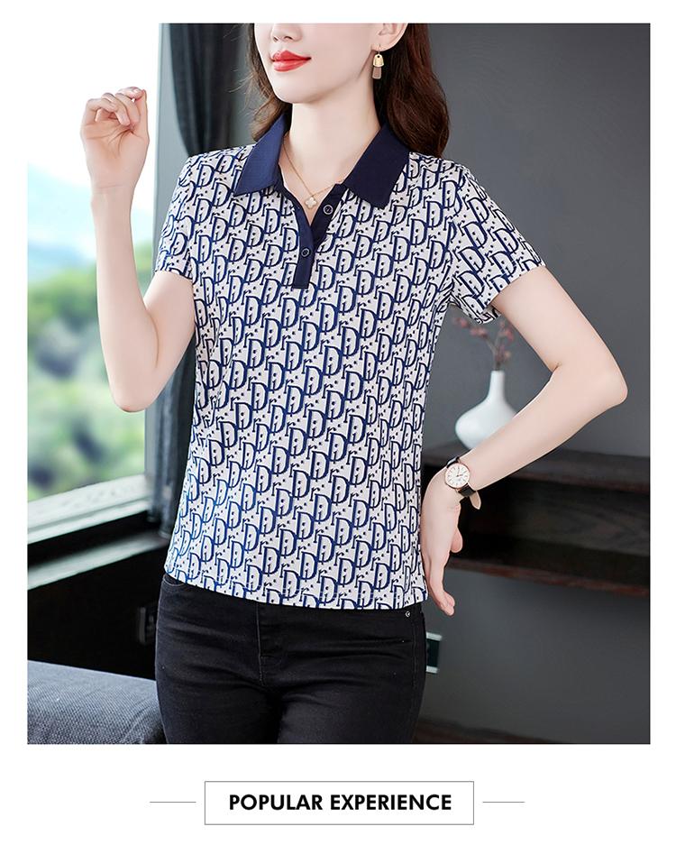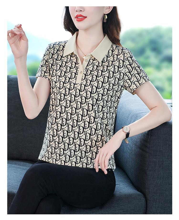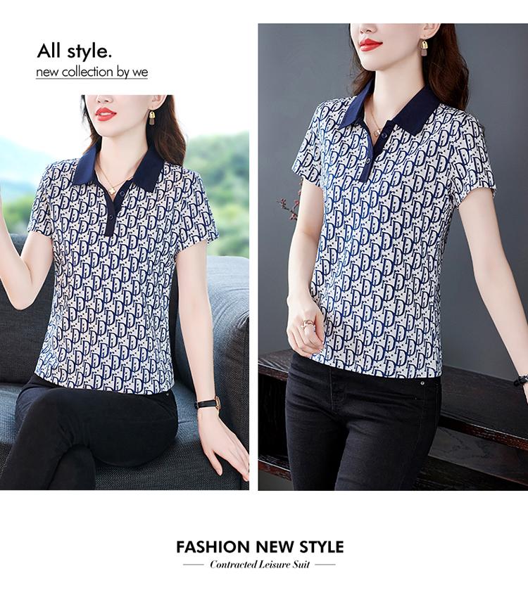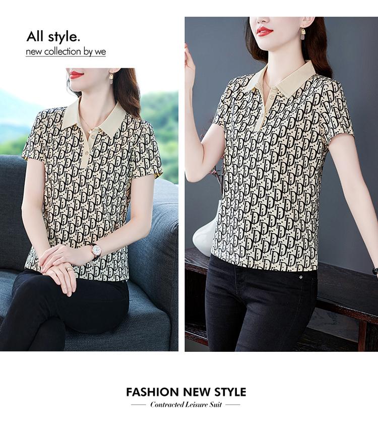 Playera Deportiva de Solapa y Manga Corta para Mujer Verano 2023 Nuevo Estilo Mamá de Mediana Edad Top Versátil Camiseta para Dama Camisa Polo T