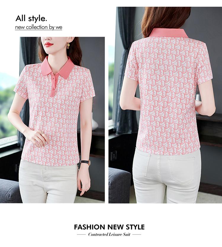 Playera Polo de Solapa de Manga Corta Deportiva para Mujer Verano 2023 Nueva Llegada Top Combinable para Madre de Mediana Edad Camiseta de Mujer Camiseta Polo