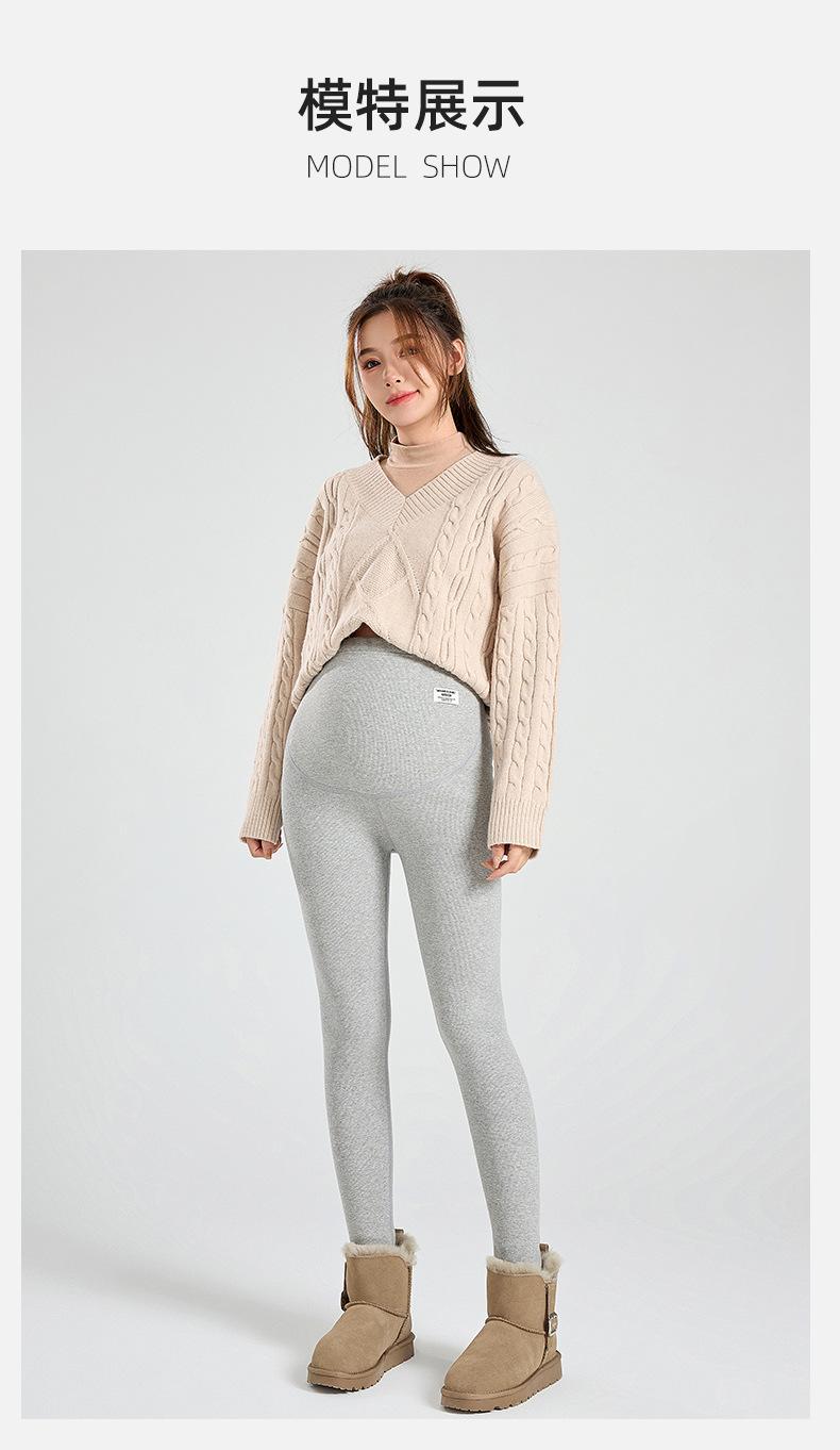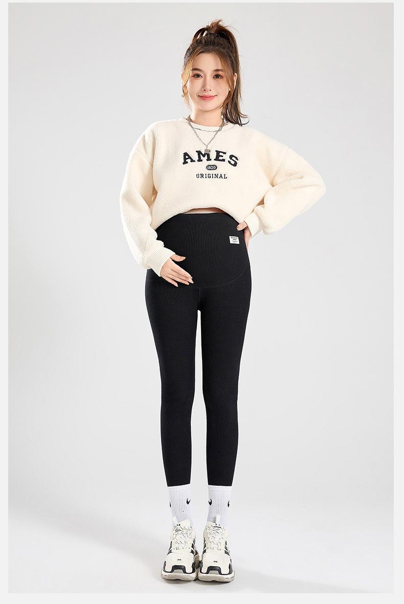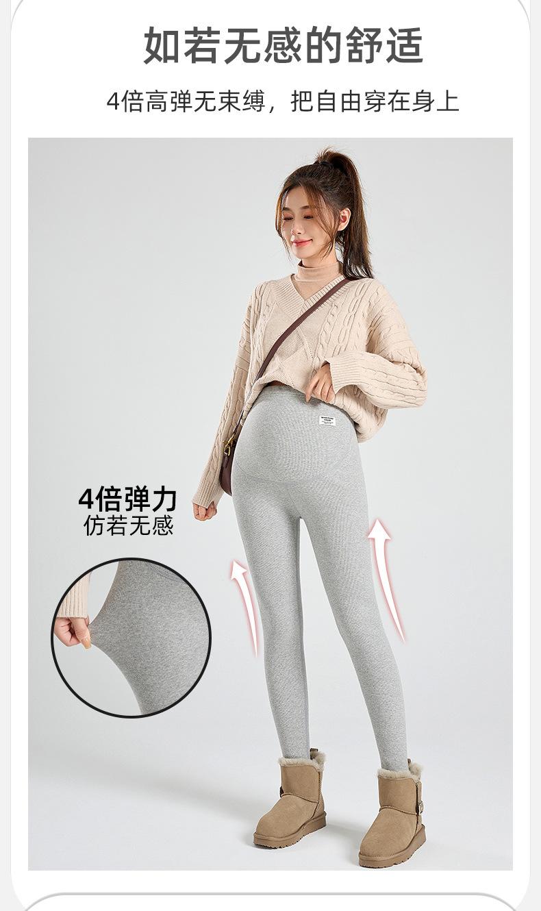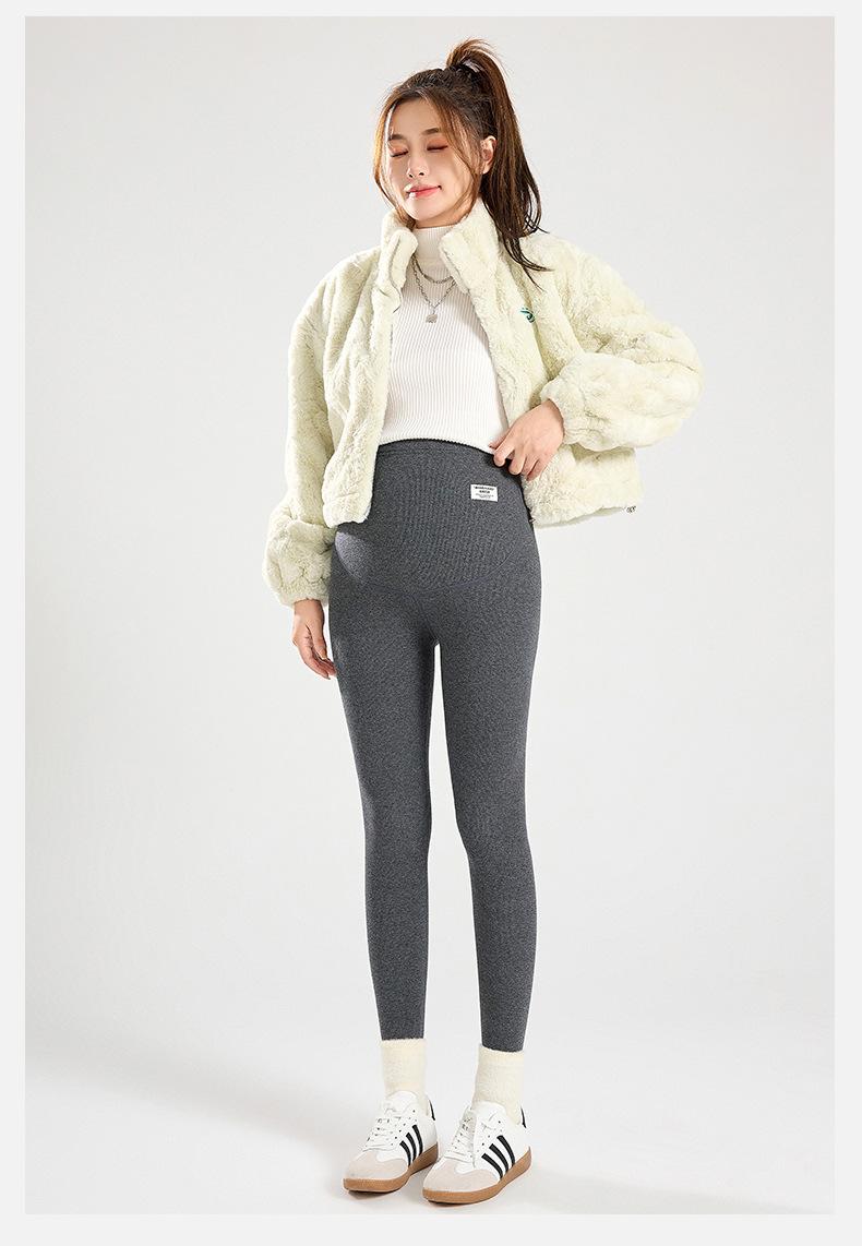 Leggings para embarazadas 2024 otoño e invierno nuevos pantalones gruesos forrados de felpa casual Joker primavera y otoño mujeres embarazadas pantalones abdominales de cintura alta