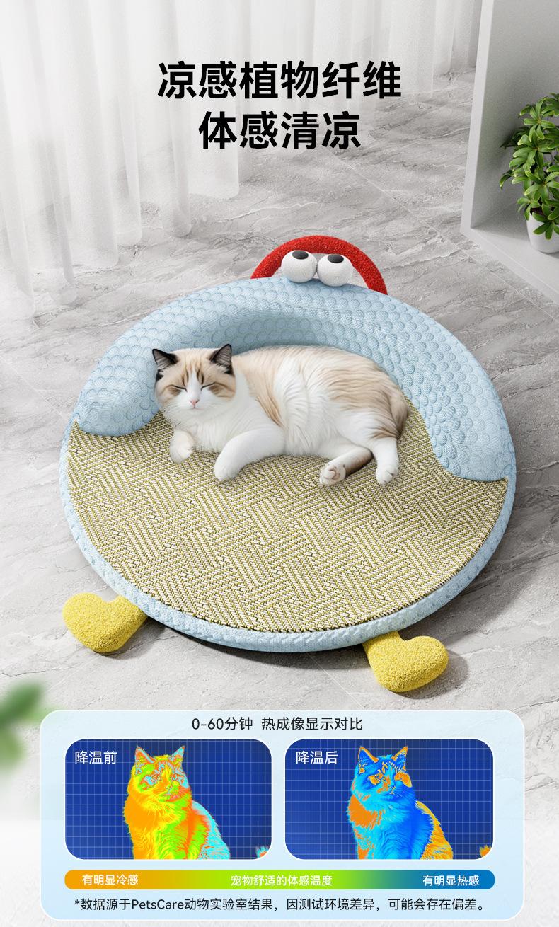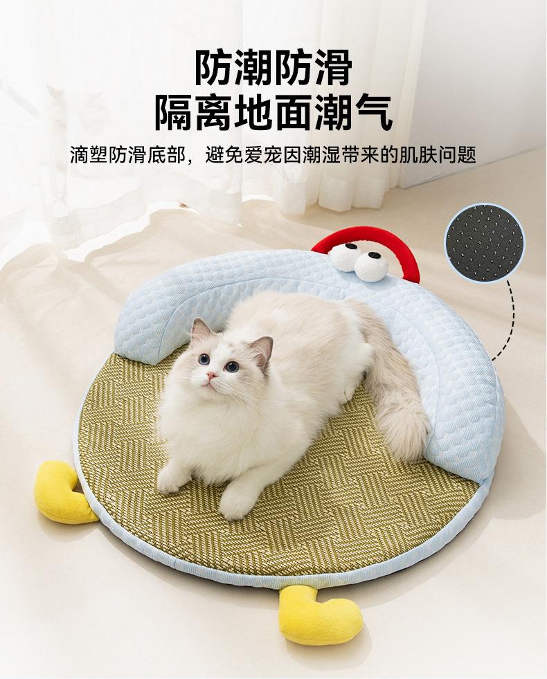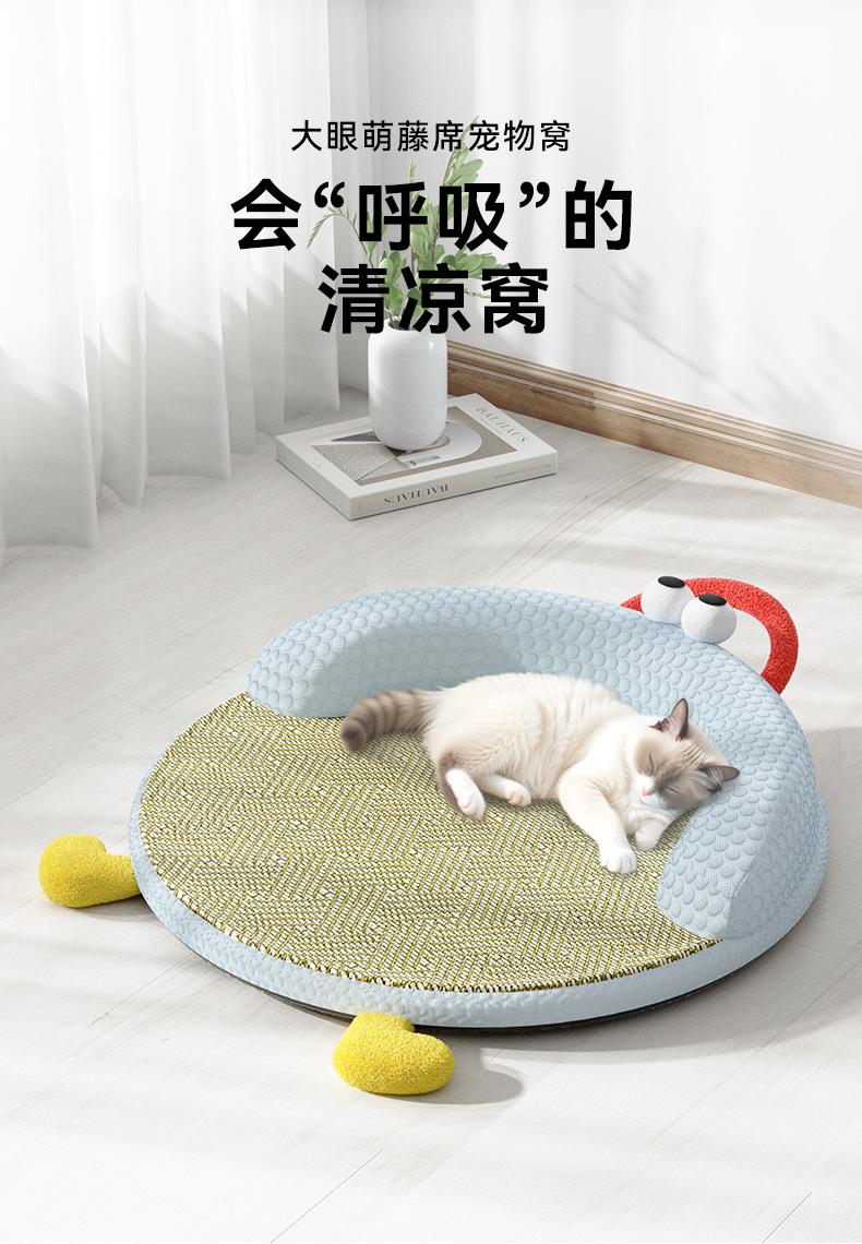 Gatos de Verano Durmiendo Alfombra de Ratán Fresca Nido Redondo Alfombra Removible y Lavable Nido para Dormir Alfombra para Gatos y Perros Nido para Mascotas