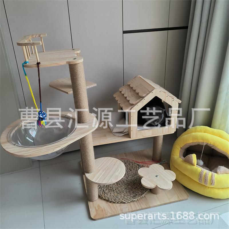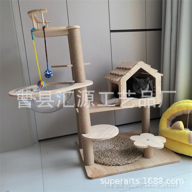 Plataforma para Saltar para Gatos de Madera de Pino Personalizada por el Fabricante, Escalada de Tres Pisos con Cápsula Espacial, Árbol para Gatos con Cuerda de Cáñamo para Afilar las Uñas, Poste Rascador para Gatos, Habitación para Gatos