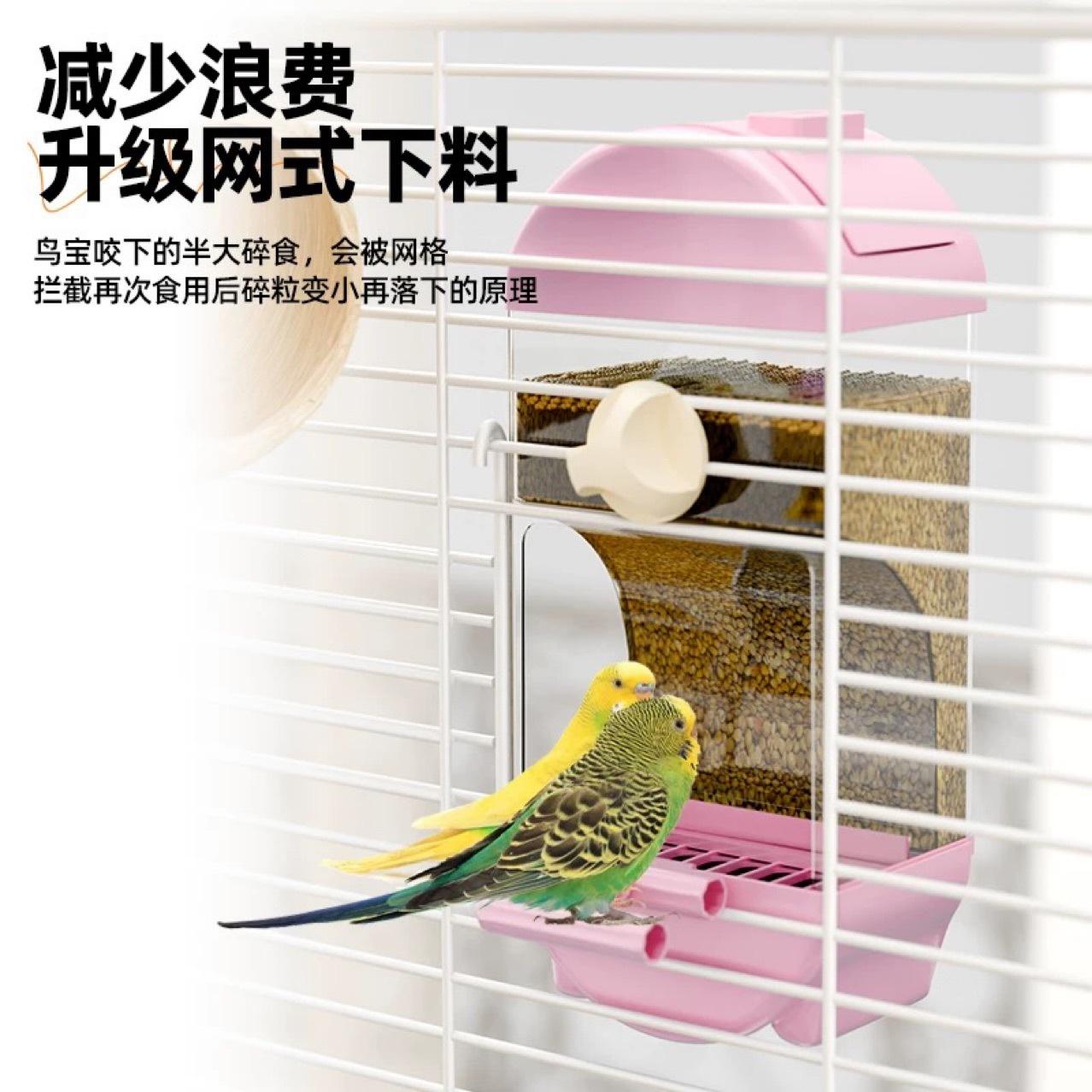 Caja de Comida para Aves Alimentador Automático para Loros Jaula para Pájaros Antisalpicaduras Separación de Cáscaras de Granos Estornino Cacatúa Alimentador Colgante Especial