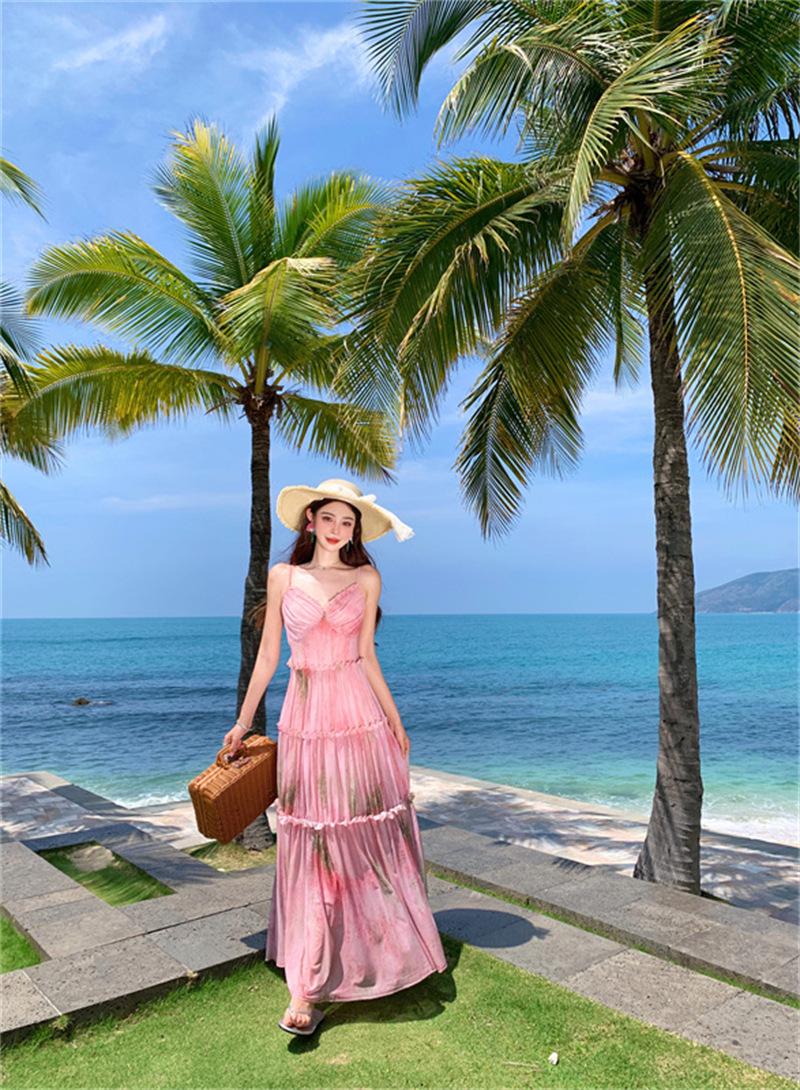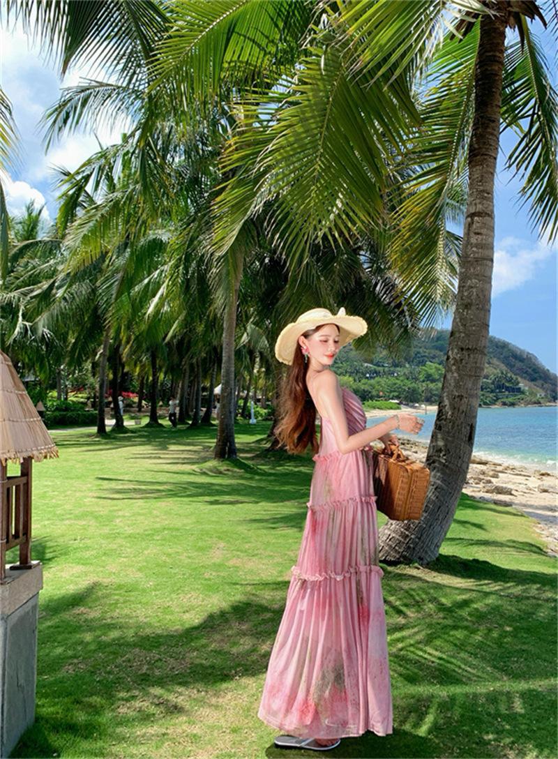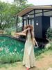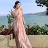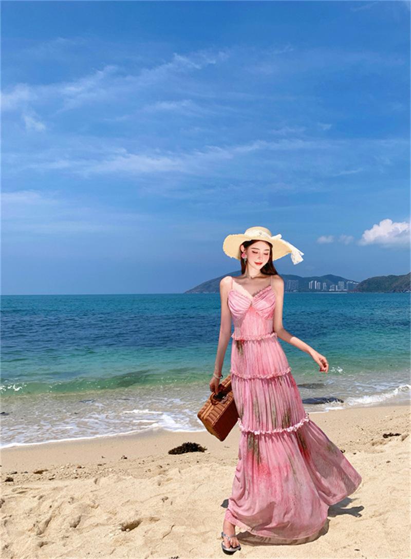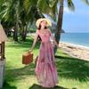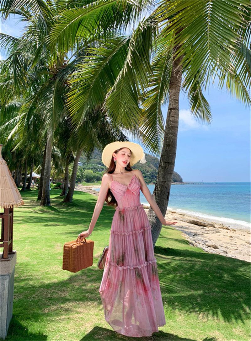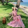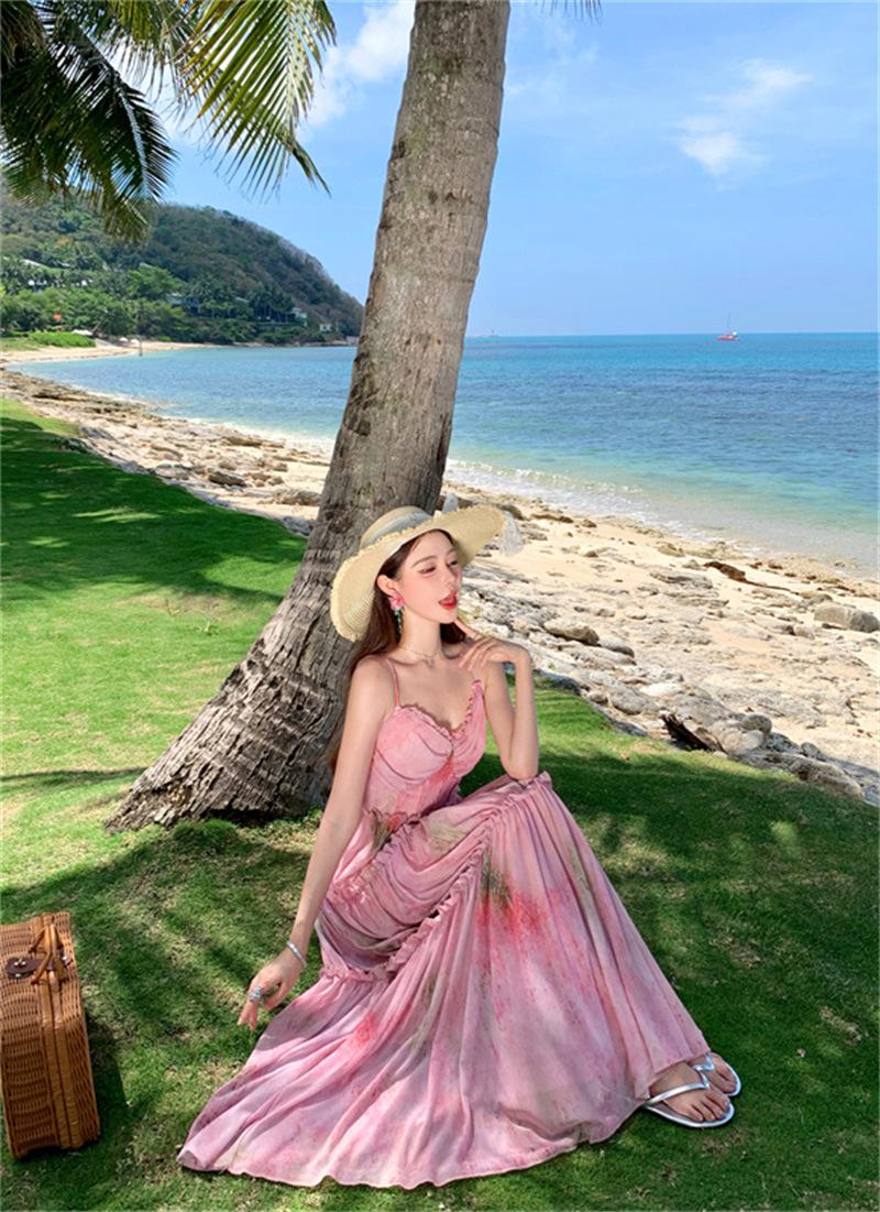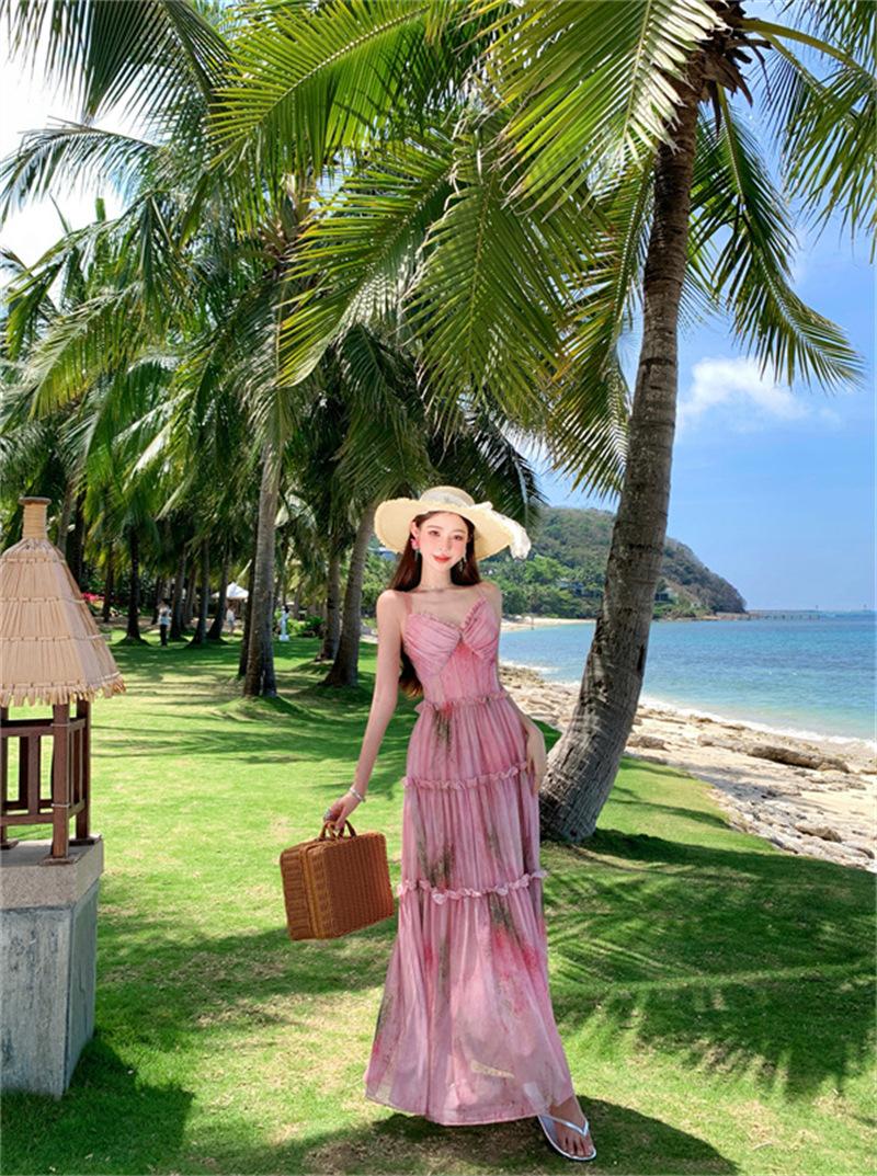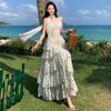 Vestido con tirantes florales estilo balneario francés para mujer, falda larga con cintura pastel y temperamento sexy de verano