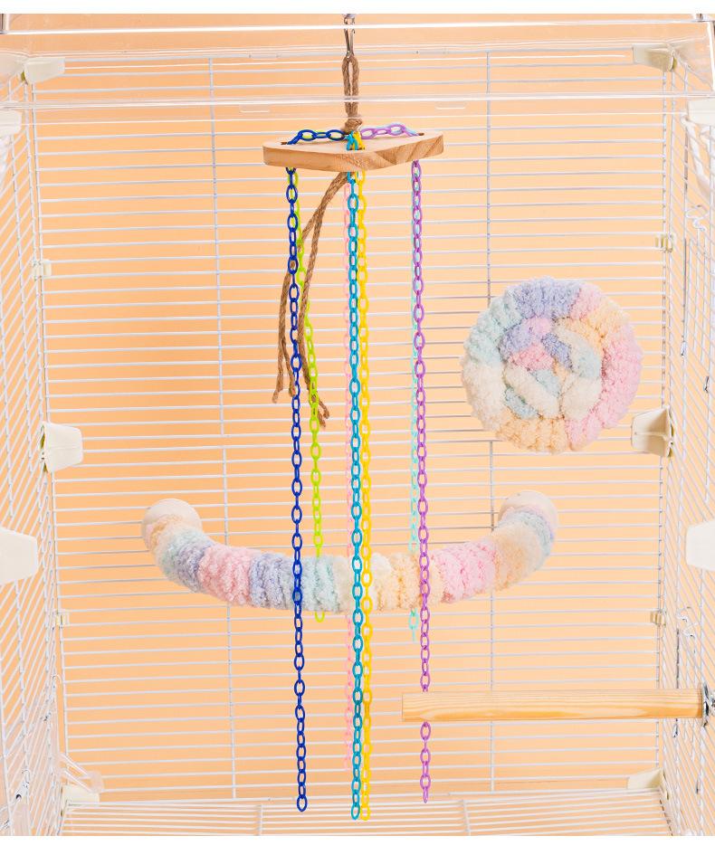 Juguete para pájaros, accesorio para jaula de pájaros, columpio, escalera, bola de ratán, campana, cuerda, juguete para mascotas con borde cruzado, juguete para loros.
