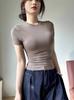 Camiseta básica de manga corta con cintura ajustable, color liso, cuello redondo pequeño, elástico en el hombro derecho, nueva colección de verano 2025.
