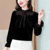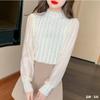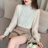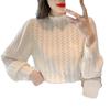 2023 Otoño e Invierno Nueva Blusa Base de Encaje de Gasa de Manga Larga Elegante Versátil Mujeres Buena Calidad