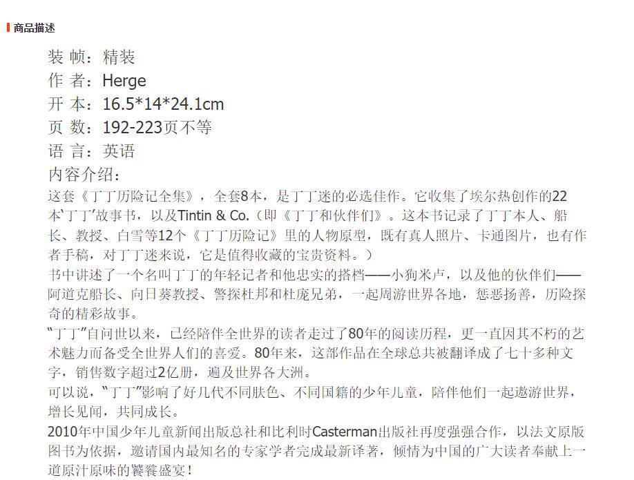 Las Aventuras de Tintín La Colección Tintín 1-8 Libro Tapa Dura Caja de Regalo