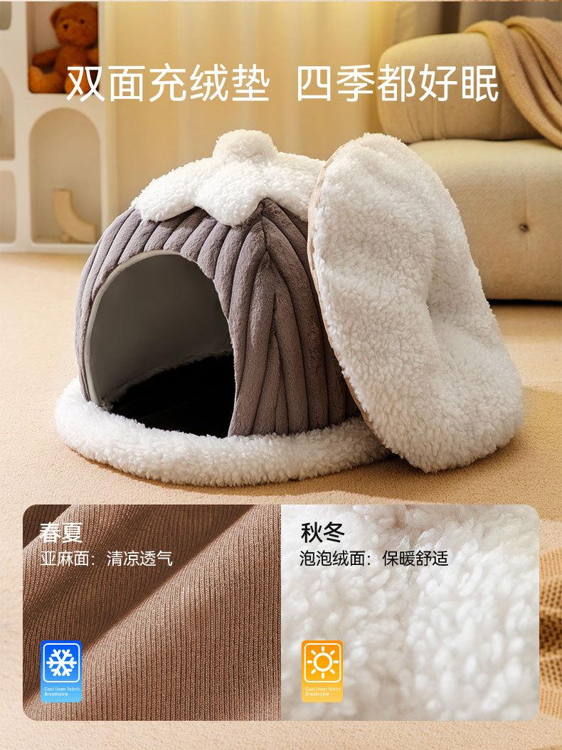 | |  | | Gorro para perrera de mascota, de terciopelo, súper suave, con cerramiento de ganso, con esponja envolvente que sostiene la columna vertebral, un sueño profundo y una cálida almohadilla para mascotas | | 18,50 ¥Compre ya | | |