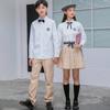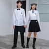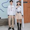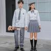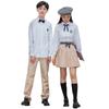 Men's white shirt + gray trousers, Women's white shirt + gray pleated skirt, Men's white shirt + khaki trouser...
