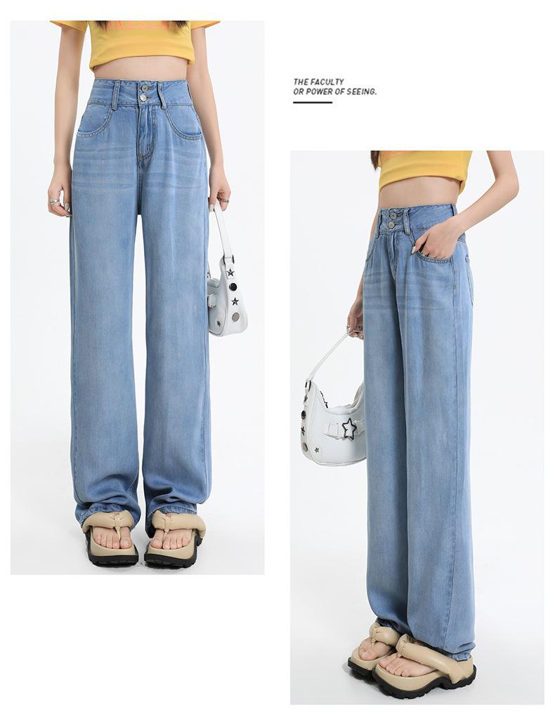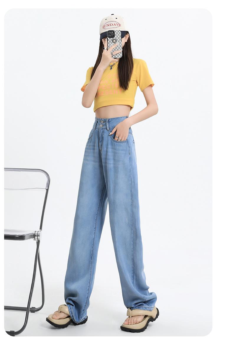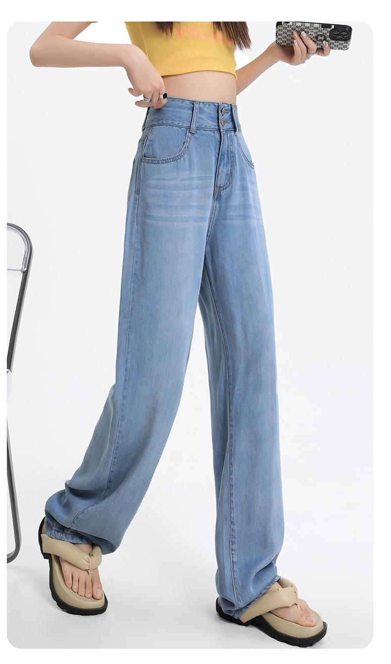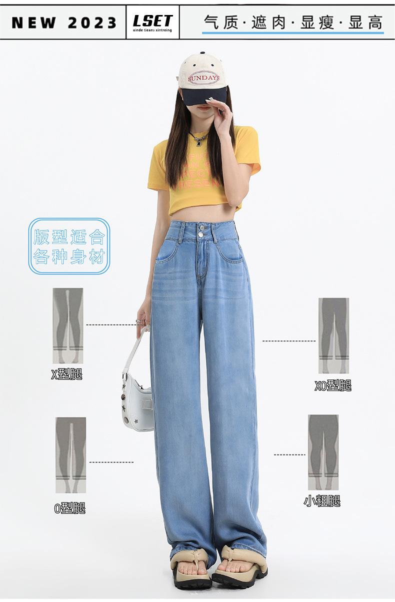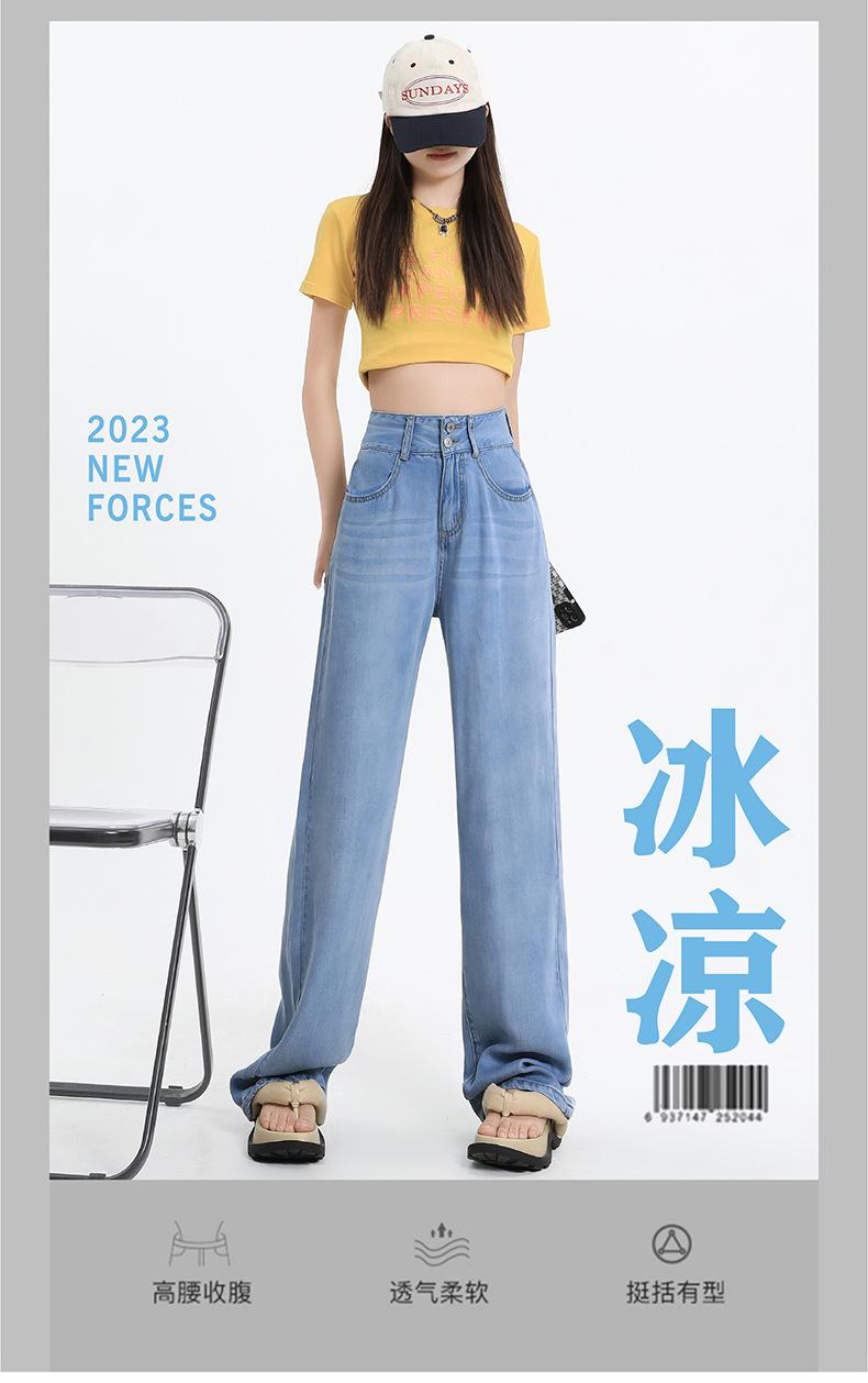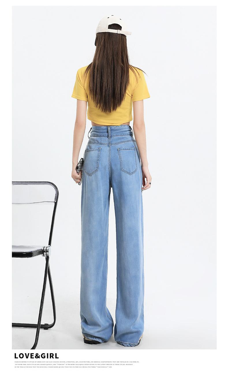 Jeans Tencel de Color Claro de Pierna Ancha para Mujer Verano 2023 Delgados de Cintura Alta con Aspecto Adelgazante Drapeados de Seda Helada Pantalones Largos Rectos Modernos