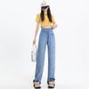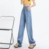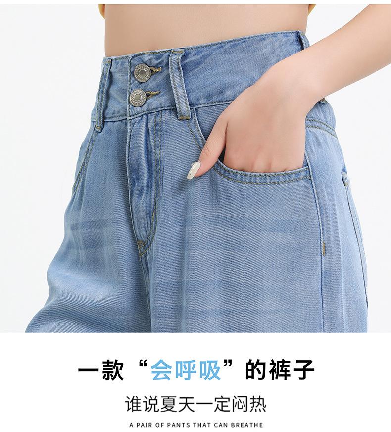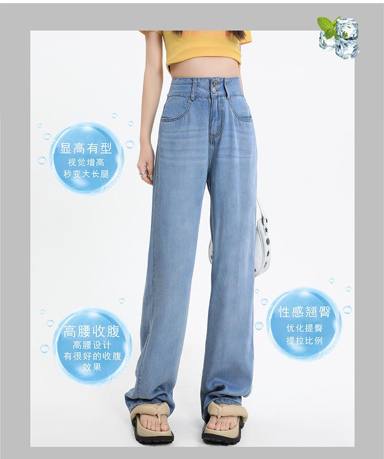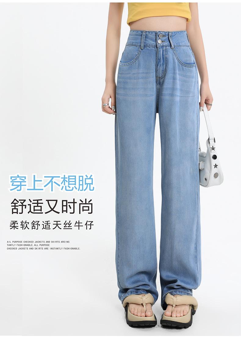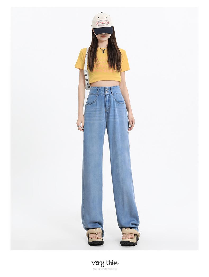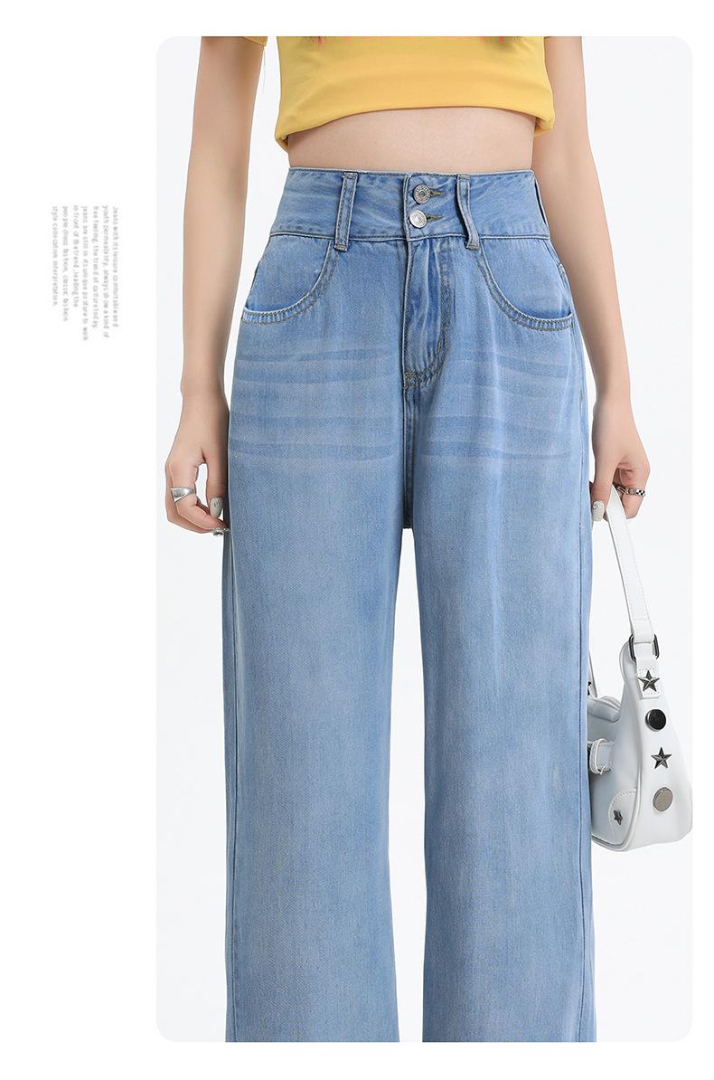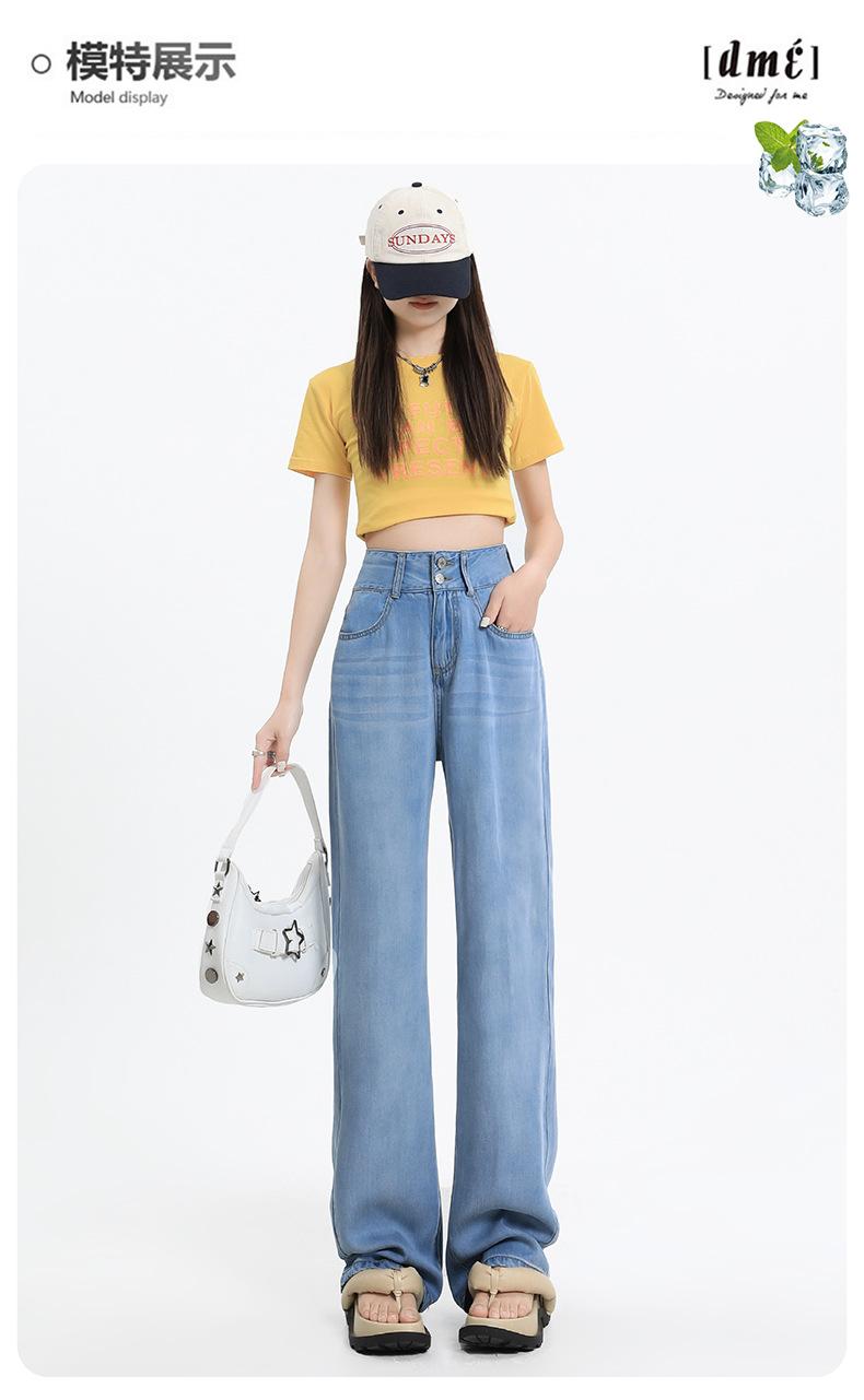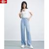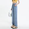 Jeans Tencel de Color Claro de Pierna Ancha para Mujer Verano 2023 Delgados de Cintura Alta con Aspecto Adelgazante Drapeados de Seda Helada Pantalones Largos Rectos Modernos