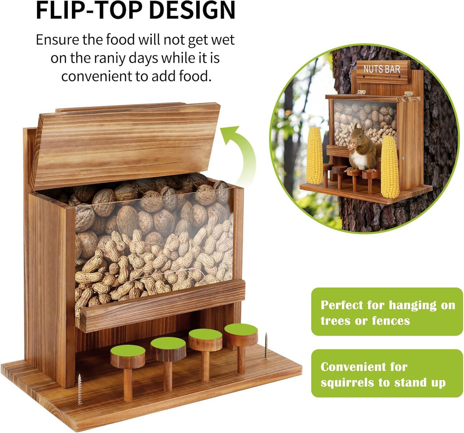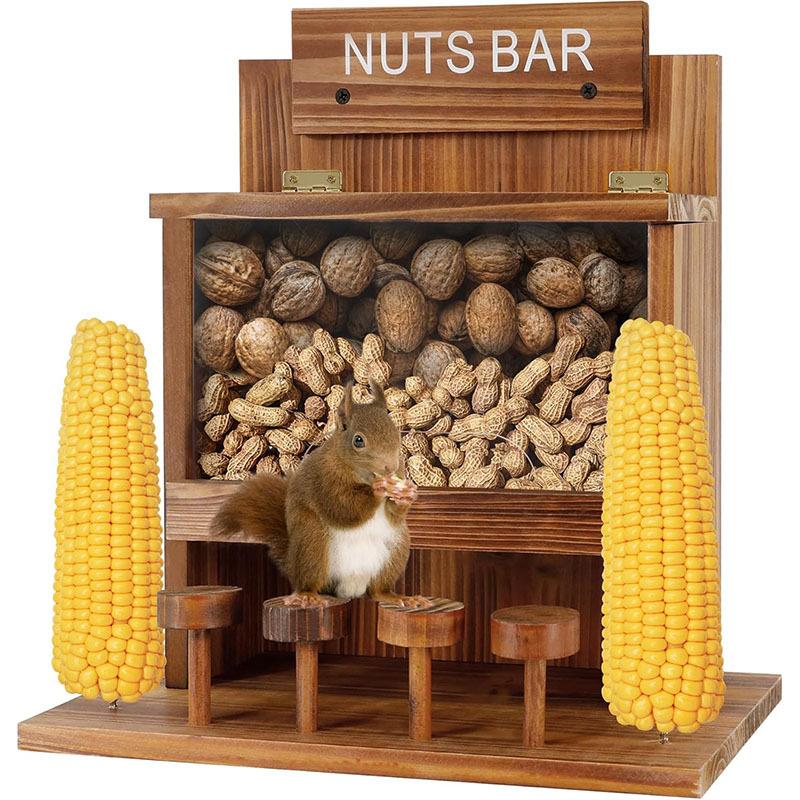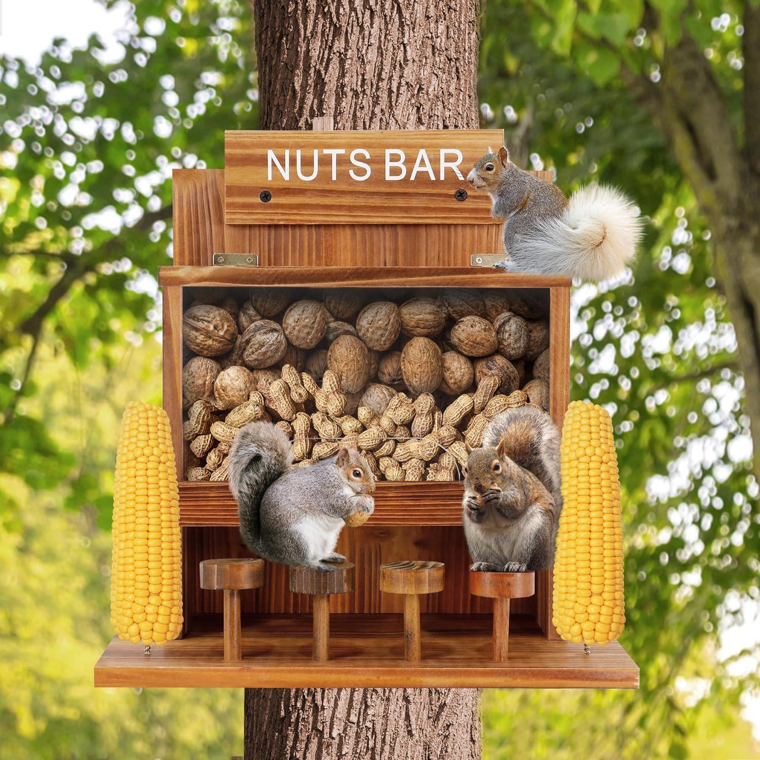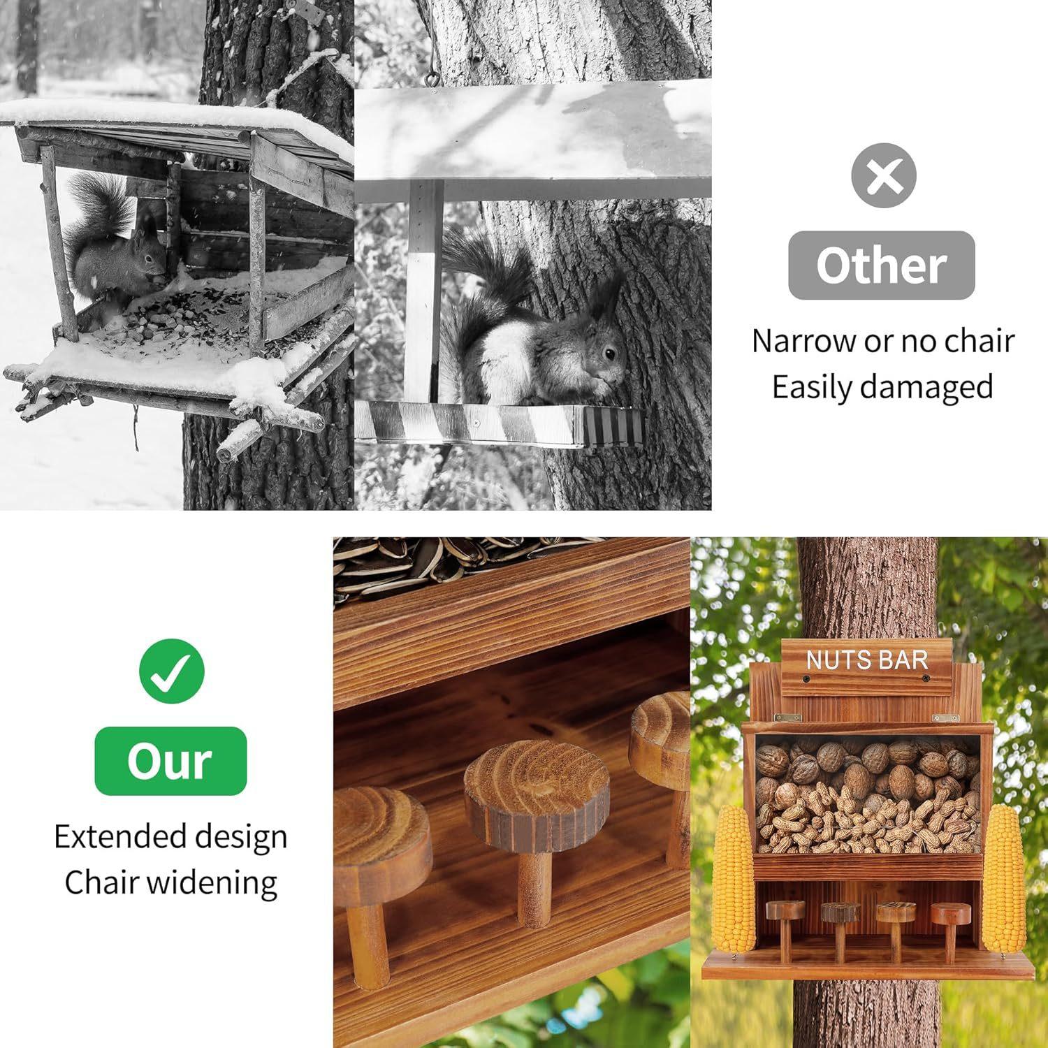 Comedero de Madera para Ardillas Exterior Jardín Mesa de Picnic Colgante para Mascotas Madera Mesa Comedor para Ardillas
