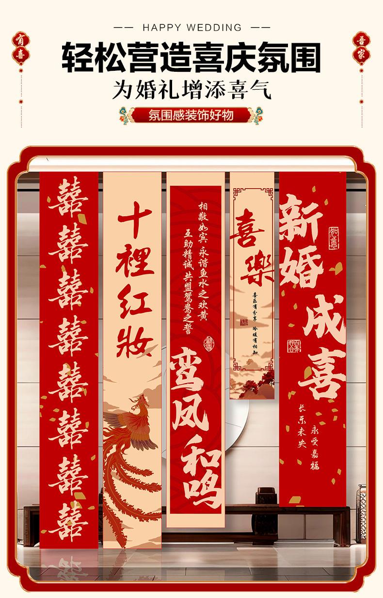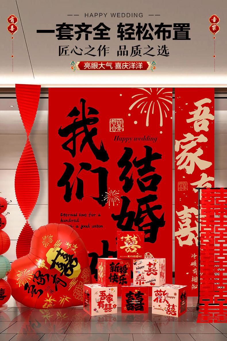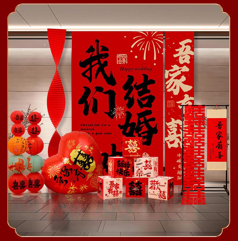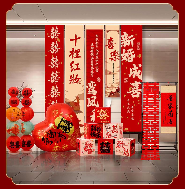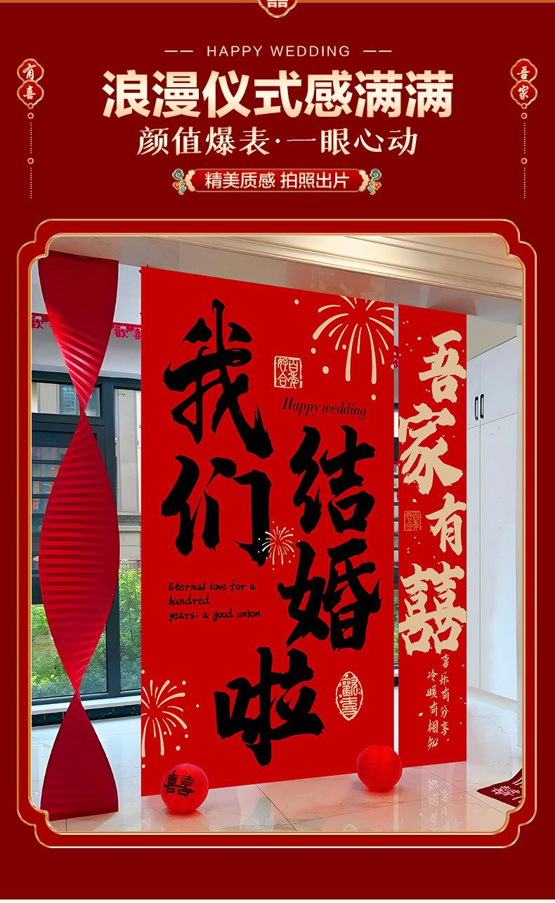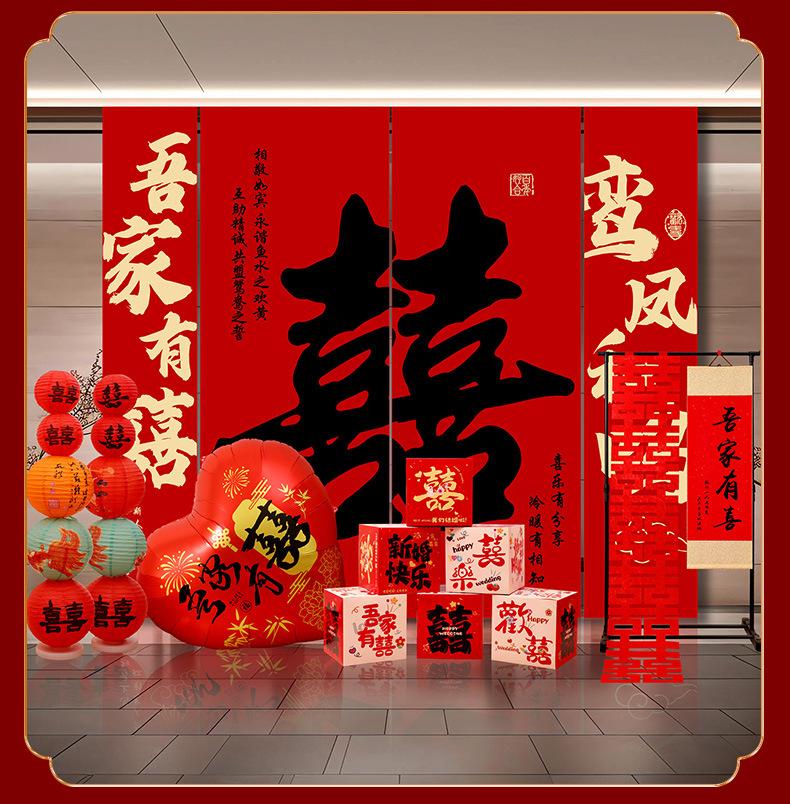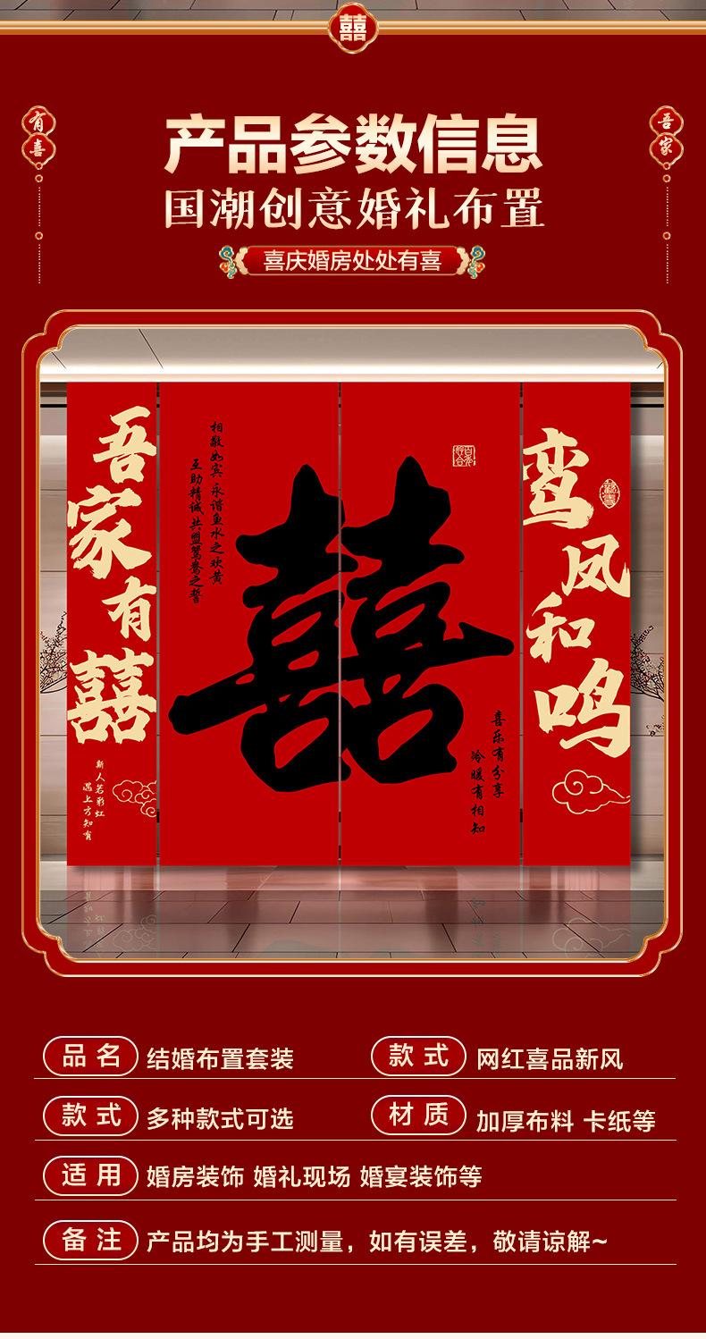 Guochao new wedding decoration oversized banner [calligraphy double happiness] package a