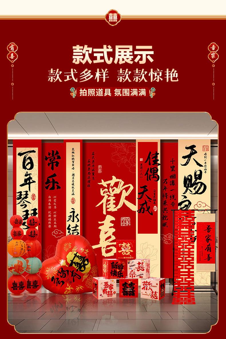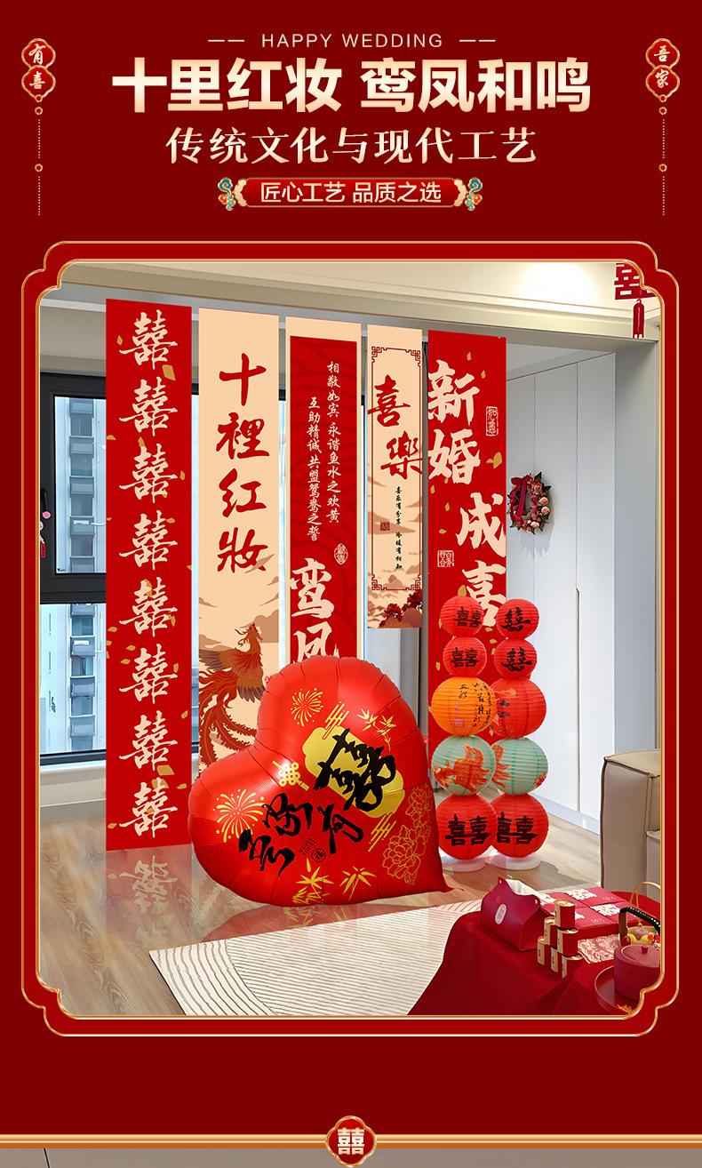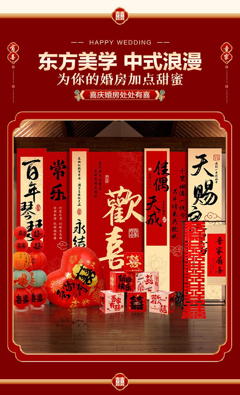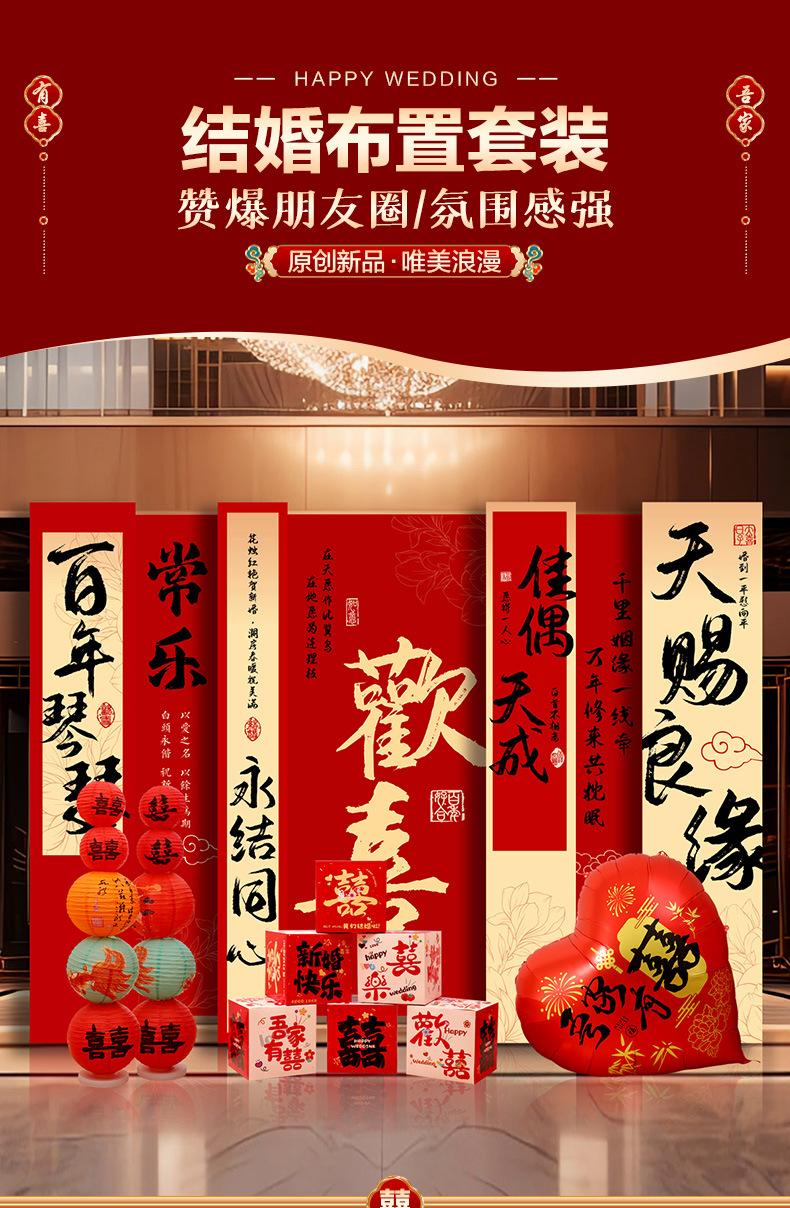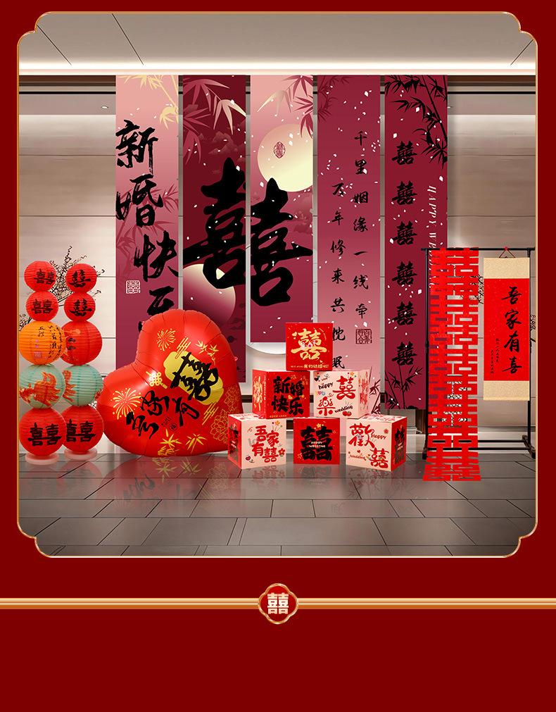 Guochao new wedding decoration oversized banner [calligraphy double happiness] package b