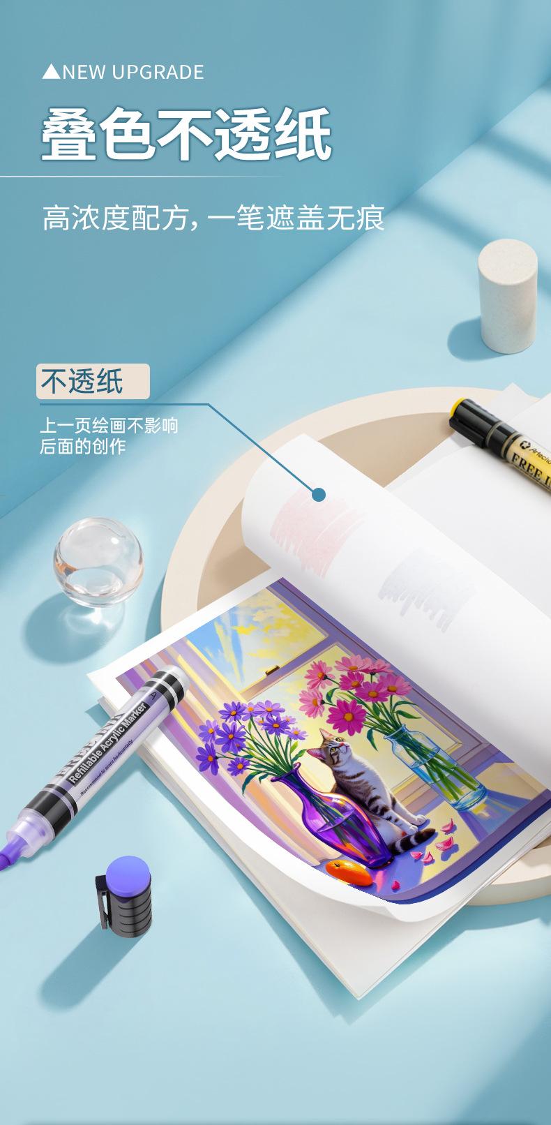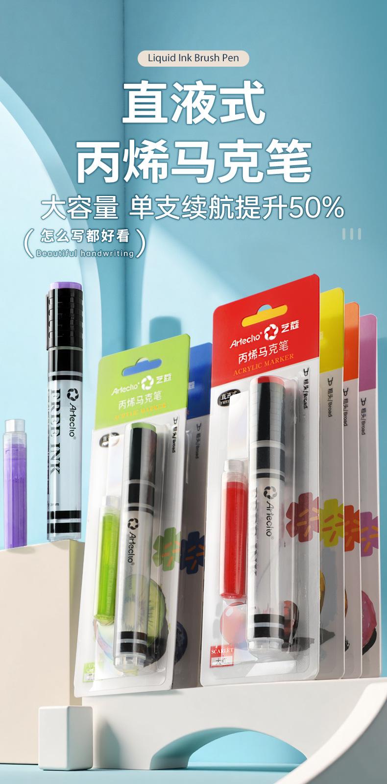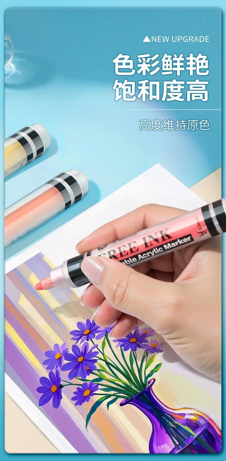 Marcador acrílico líquido directo para estudiantes de arte, color opaco, apilable, pluma de acuarela para estudiantes de primaria, caja de 24 colores