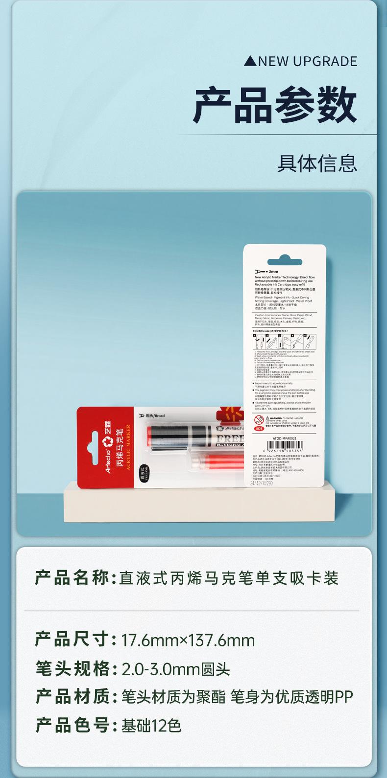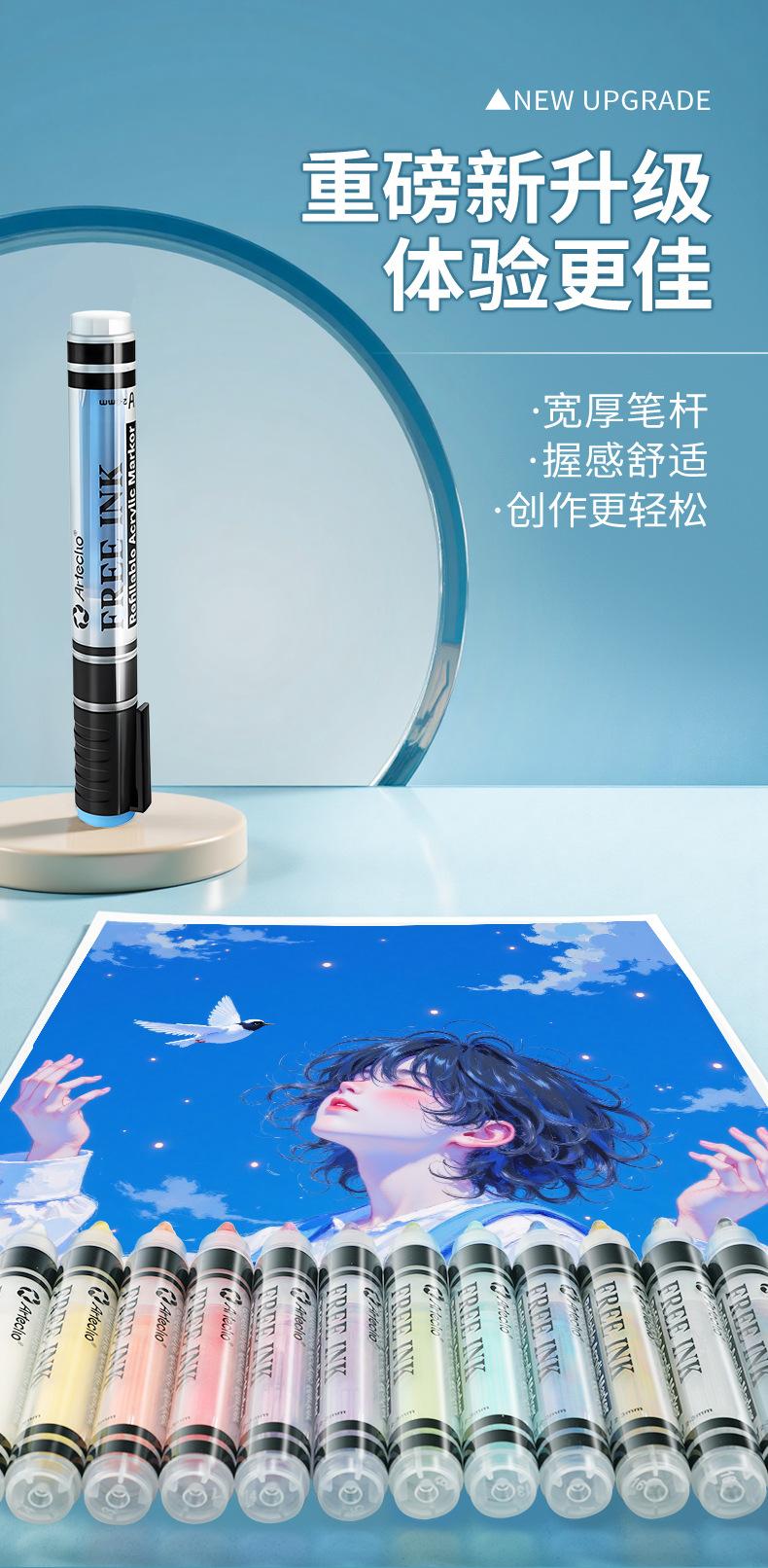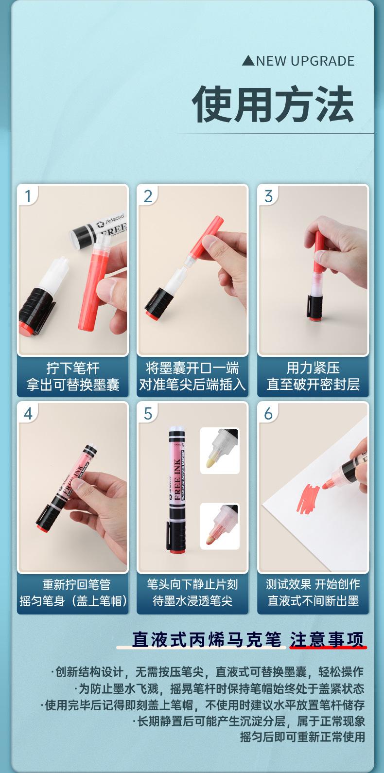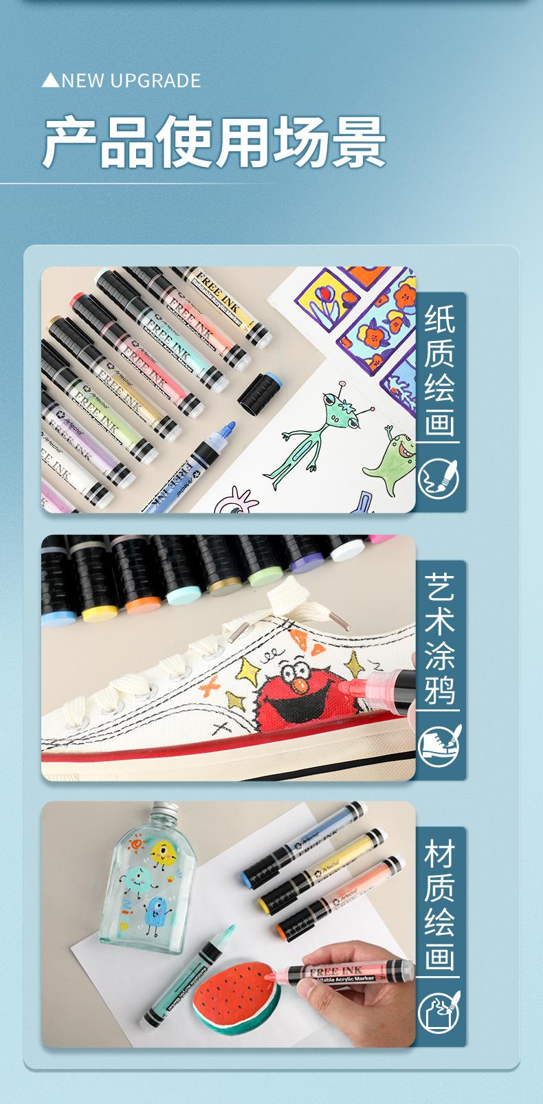 Marcador acrílico líquido directo para estudiantes de arte, color opaco, apilable, pluma de acuarela para estudiantes de primaria, caja de 24 colores
