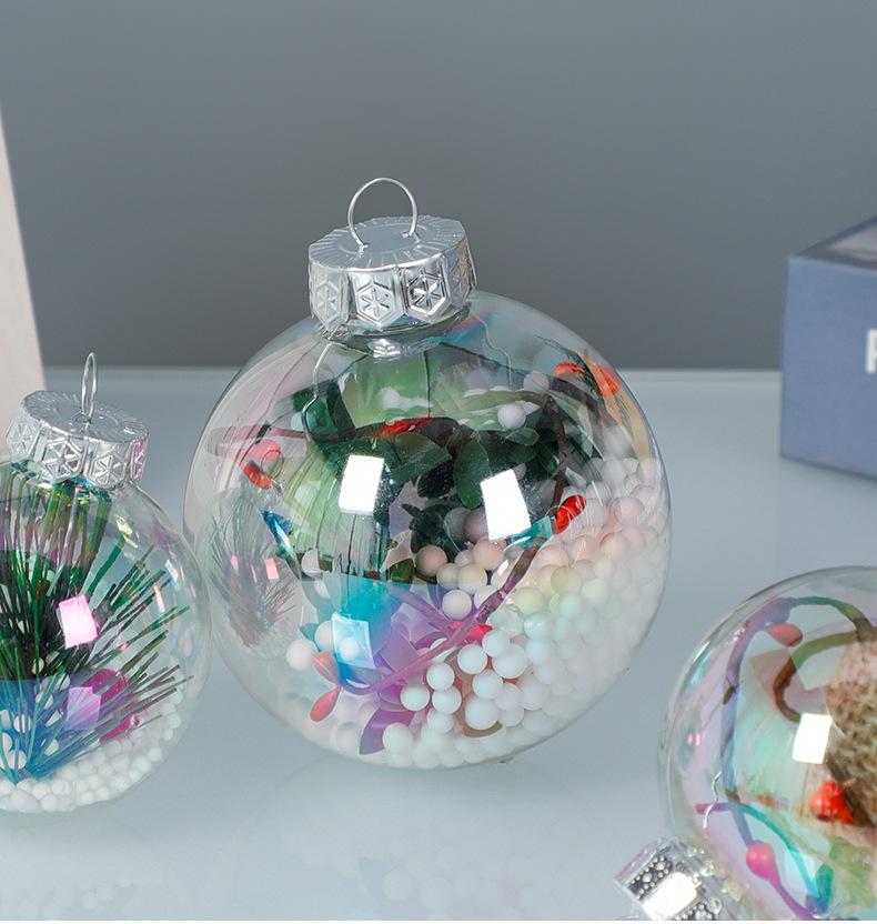Plástico PET bola de Navidad colorida bola de decoración de festival bola transparente colorida adornos fábrica de decoración navideña venta al por mayor