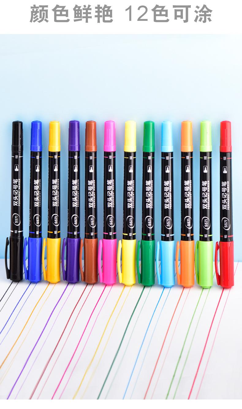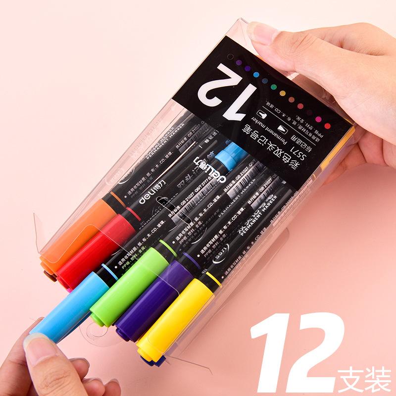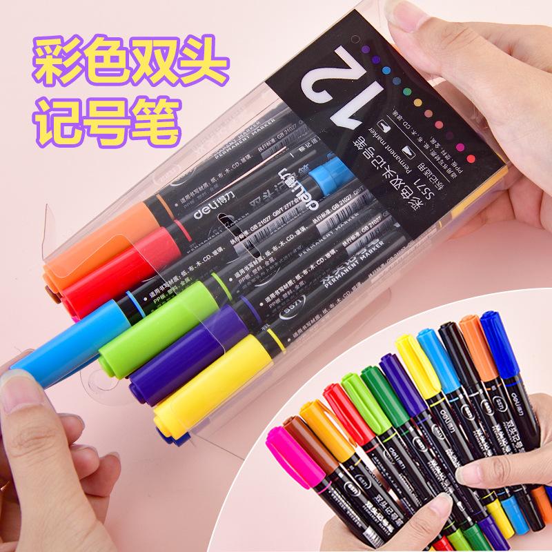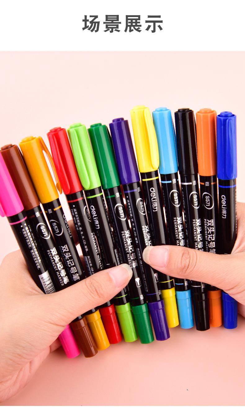 Marcador de aceite de doble punta Deli color Marcador Marcador Pluma de gancho pintura infantil dibujo negro borde arte pluma creativa