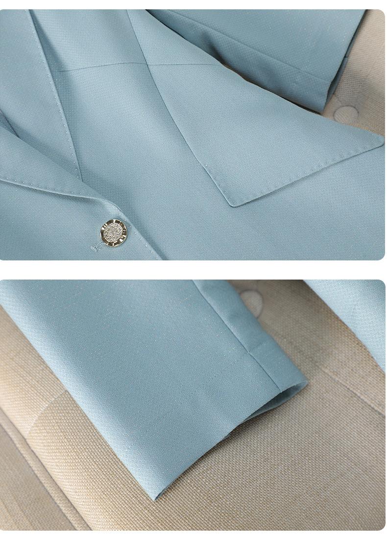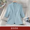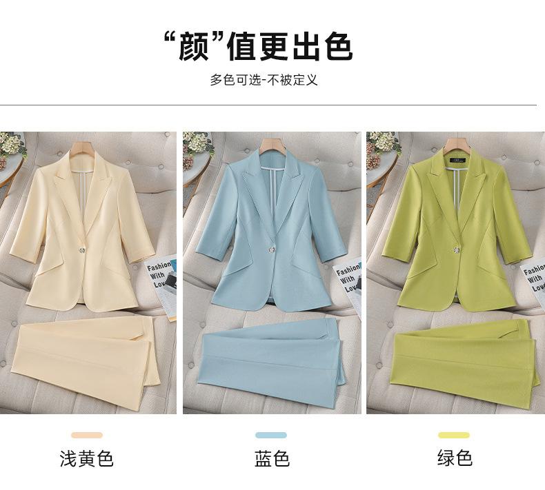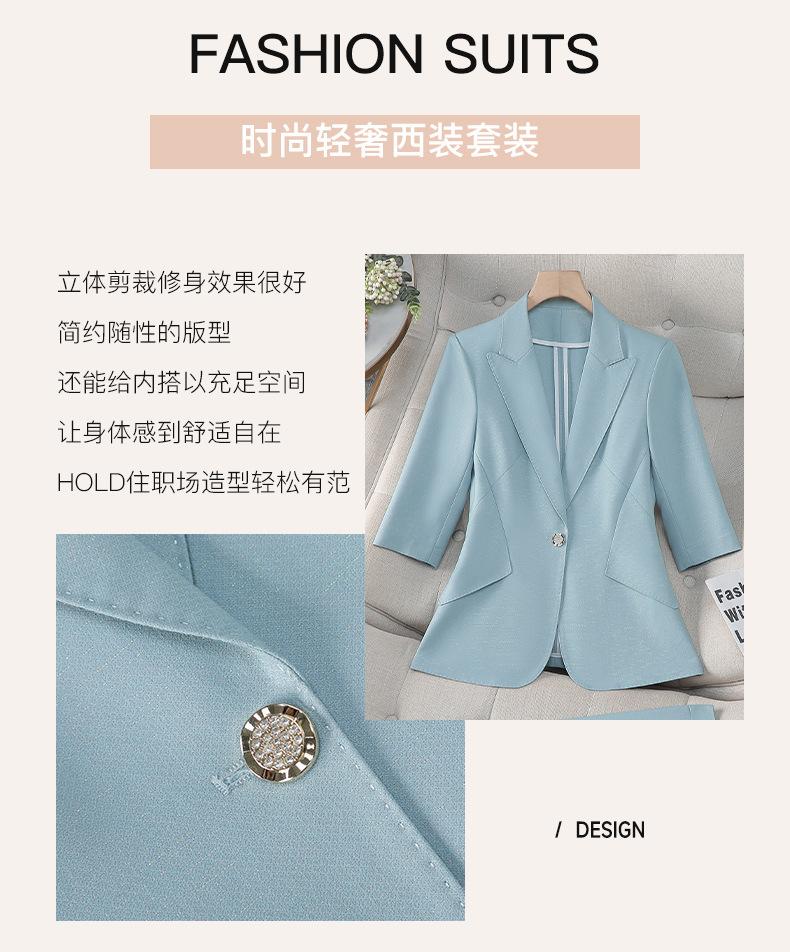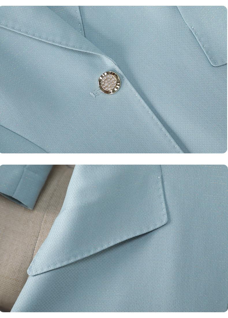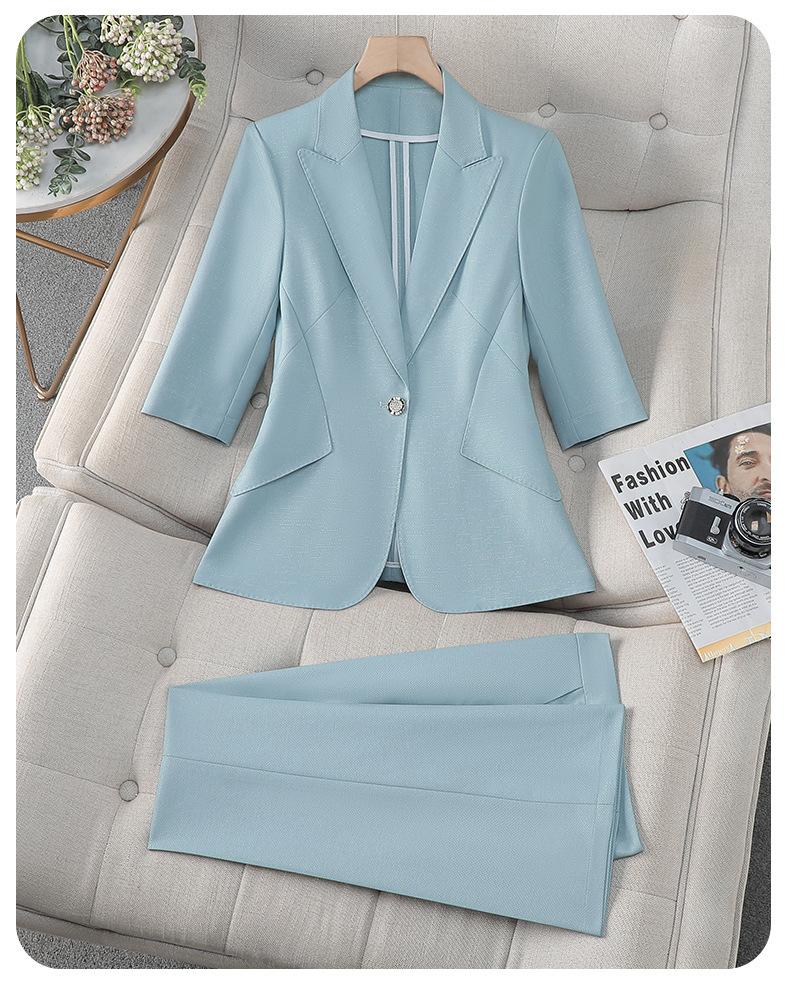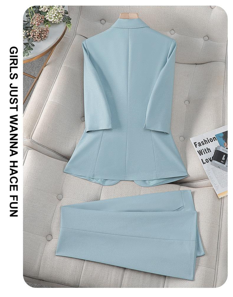 Chaqueta Azul de Manga Media de Siete Puntos con Cuello de Traje Pequeño para Mujer, Pantalones, Ropa de Negocios, Traje de Dos Piezas de Moda para Viajeras de Primavera, Verano y Otoño