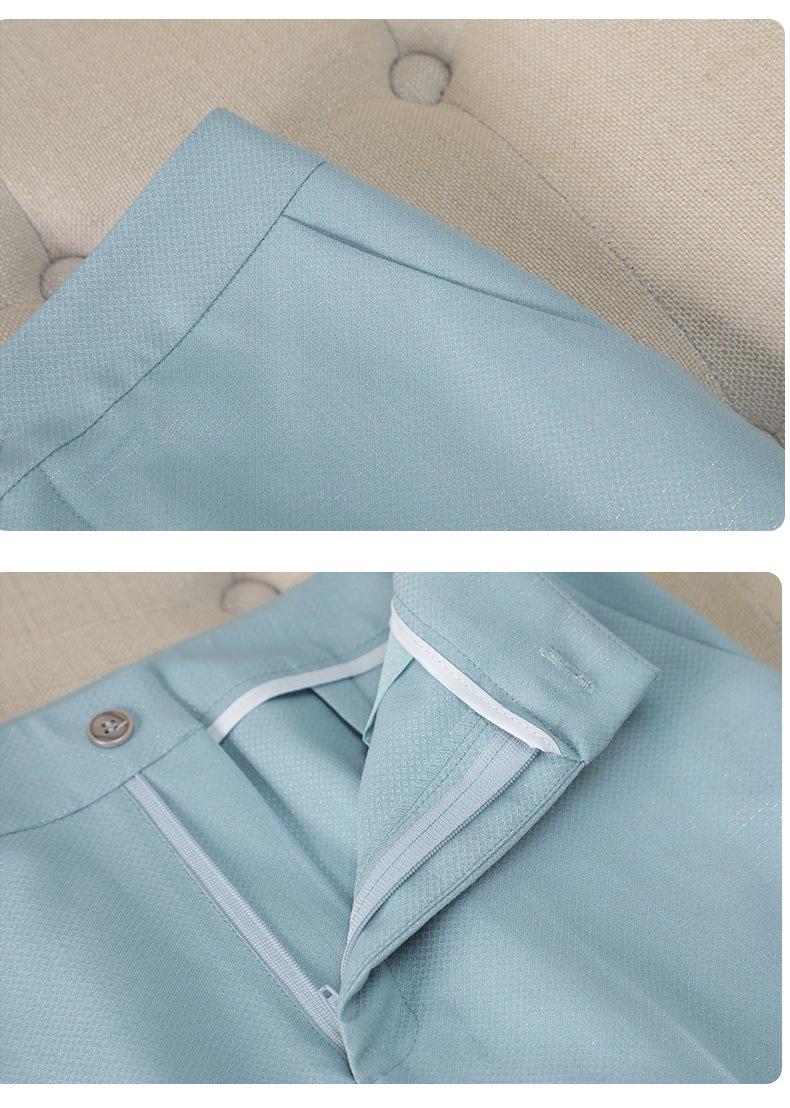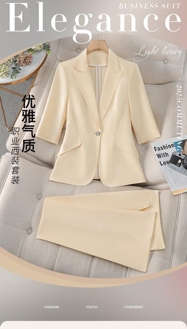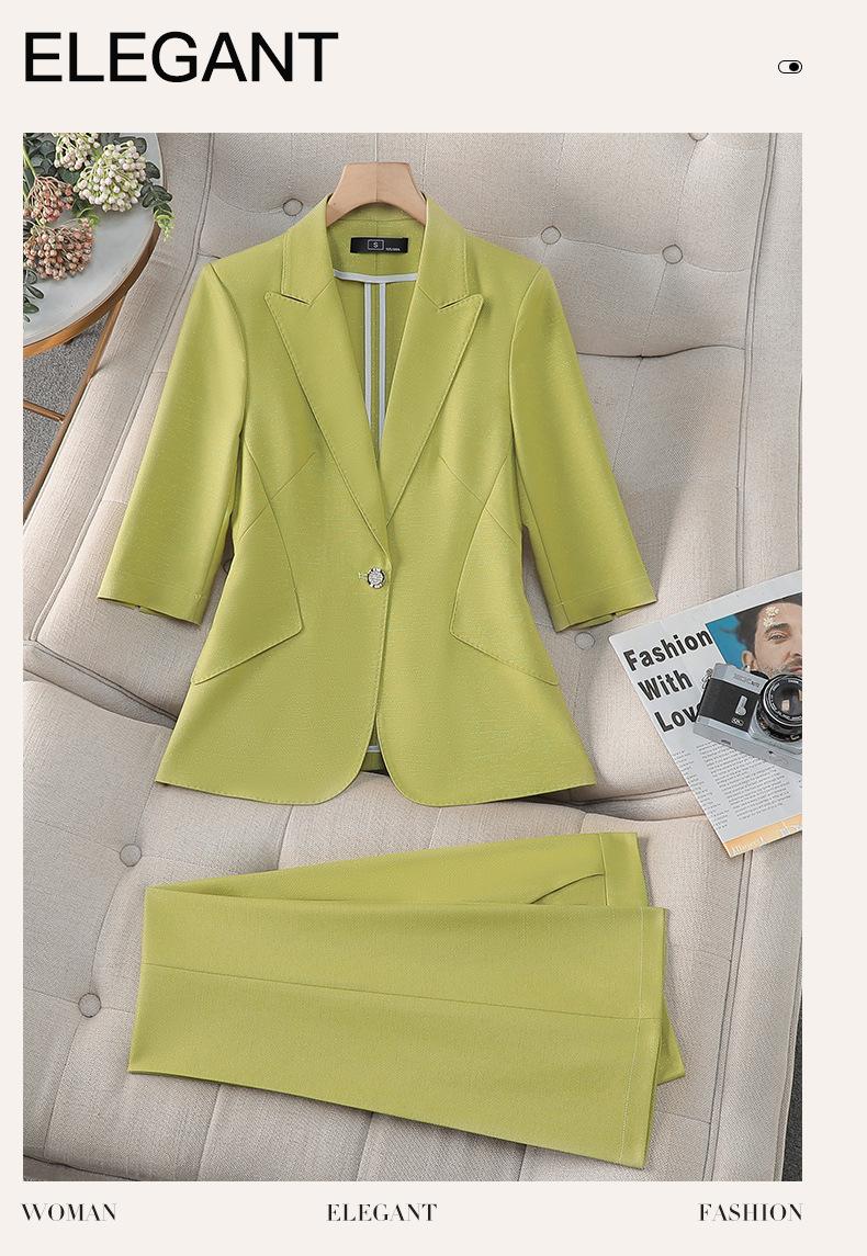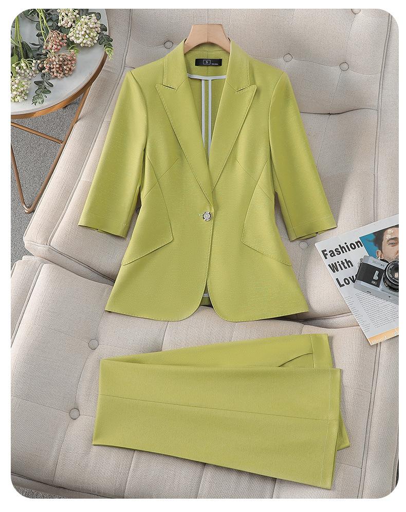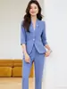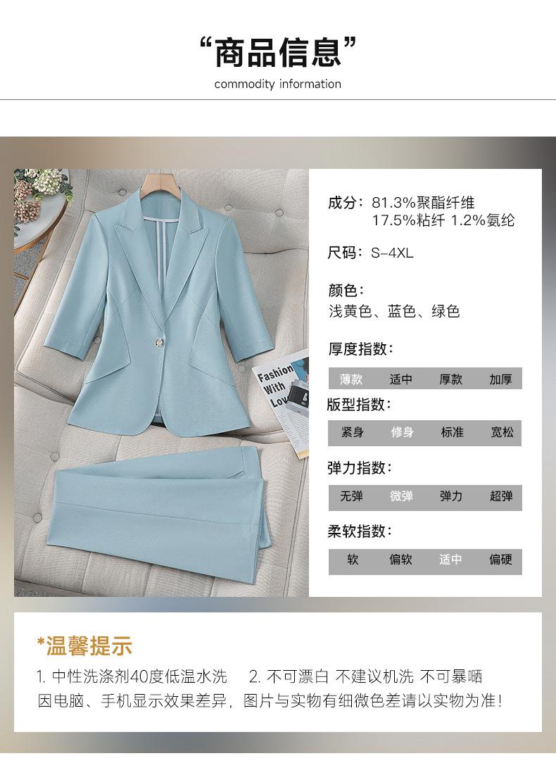 Chaqueta Azul de Manga Media de Siete Puntos con Cuello de Traje Pequeño para Mujer, Pantalones, Ropa de Negocios, Traje de Dos Piezas de Moda para Viajeras de Primavera, Verano y Otoño