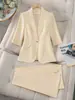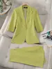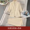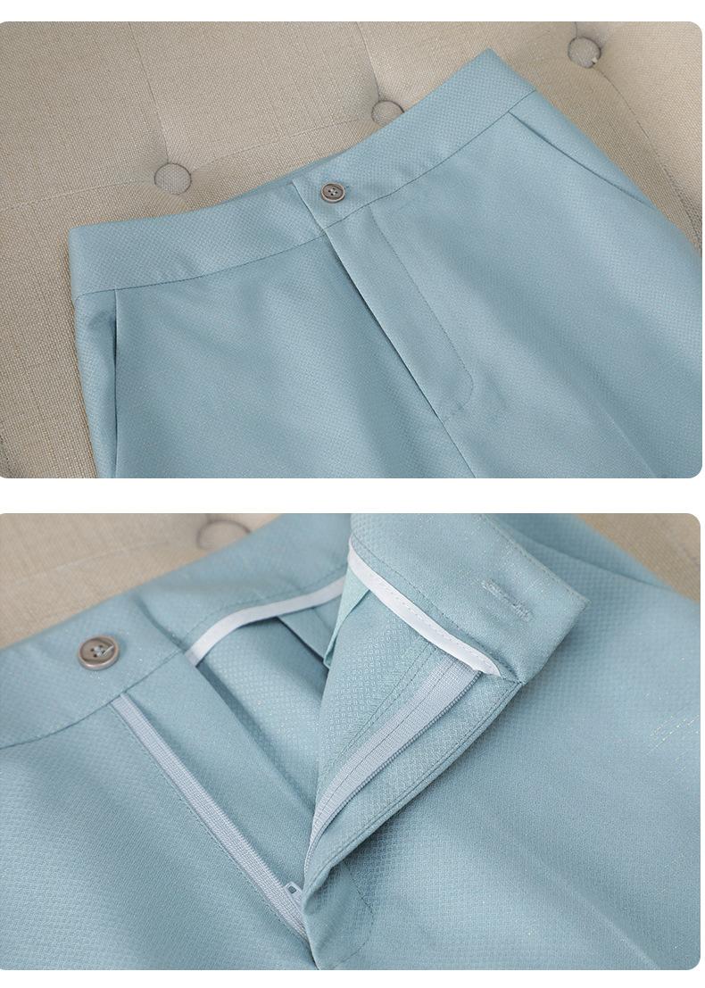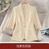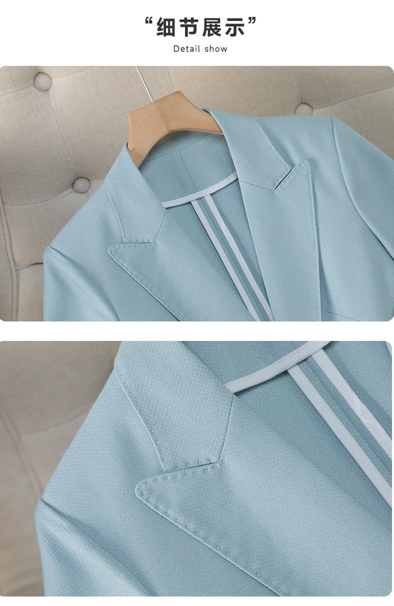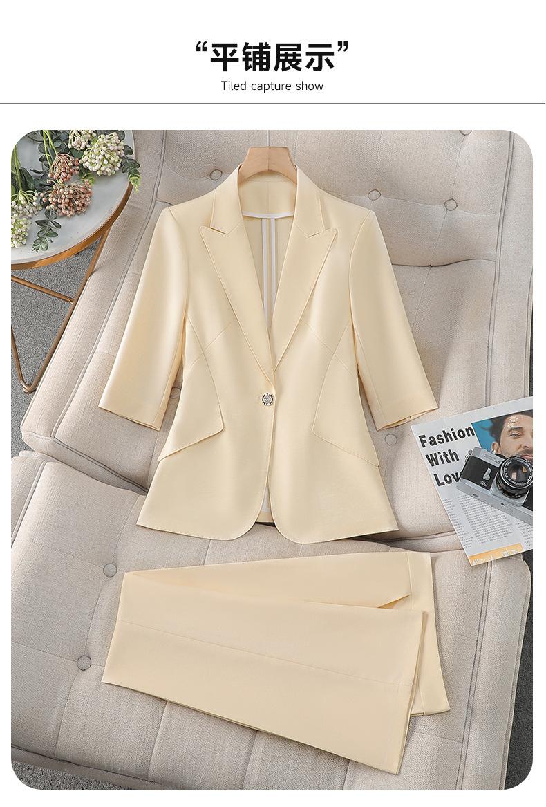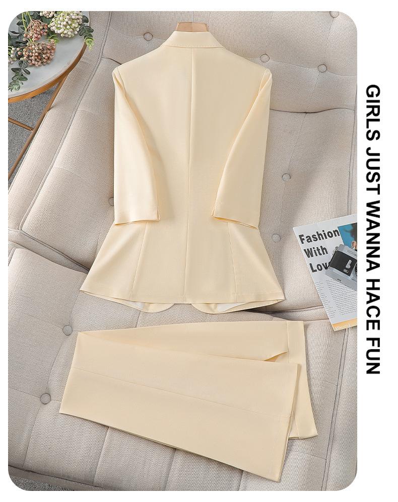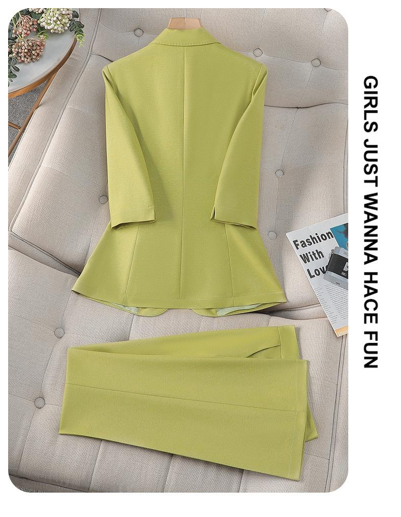 Chaqueta Azul de Manga Media de Siete Puntos con Cuello de Traje Pequeño para Mujer, Pantalones, Ropa de Negocios, Traje de Dos Piezas de Moda para Viajeras de Primavera, Verano y Otoño